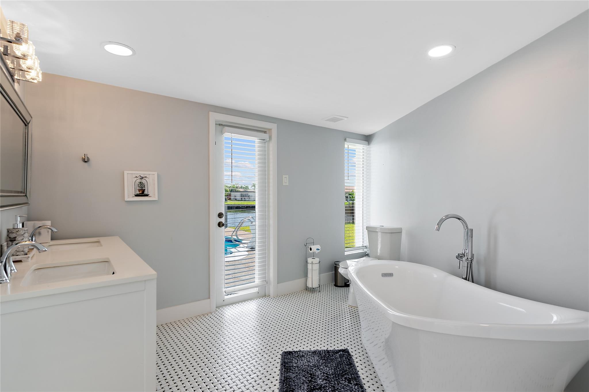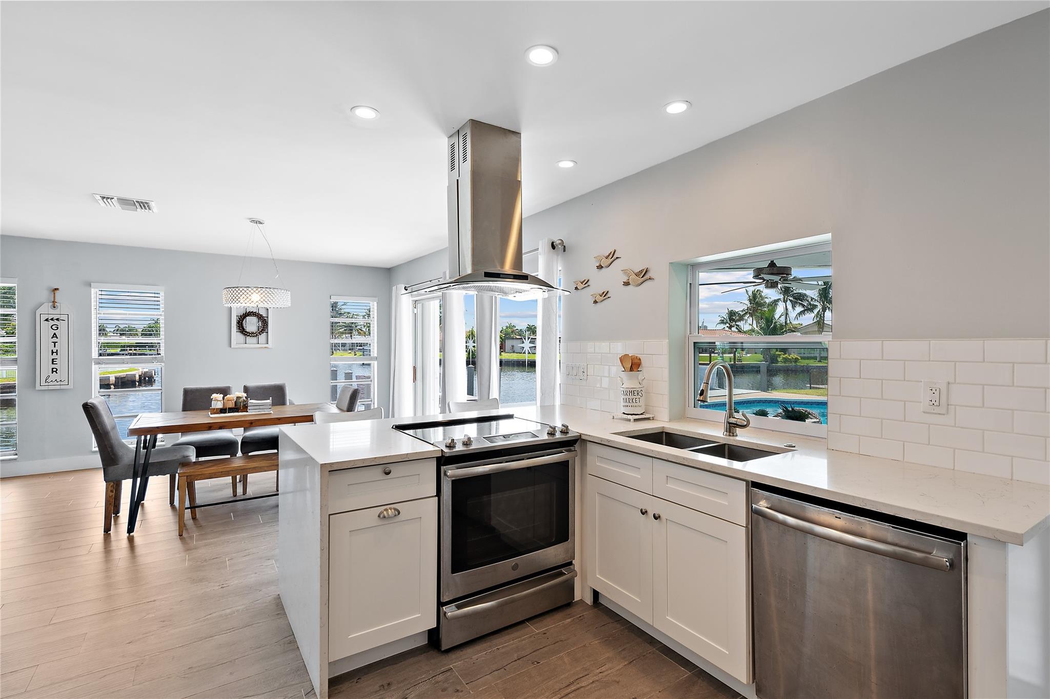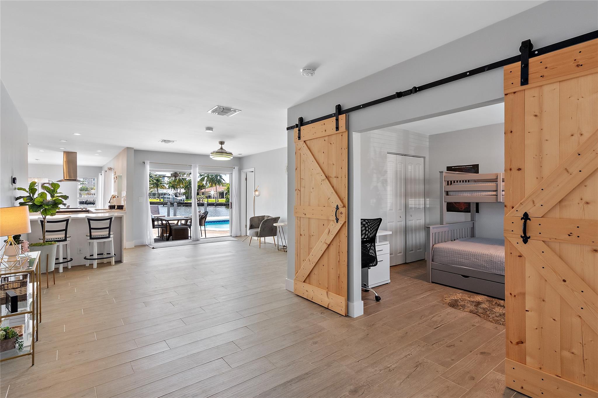 Beautifully updated 3 bedroom, 3 full bathroom waterfront pool home with a 2 car garage located on a wide canal in Cypress Lake Estates. Enjoy 110 feet of waterfrontage with a serene wide water view. This home features an open modern kitchen with quartz countertops, white cabinets, and stainless steel appliances. Roof was replaced in 2020. Electrical, plumbing and AC have all been updated. Newer tile flooring thoughout, bathrooms have been updated with new tile, vanities, lighting and fixtures. Spacious backyard with plenty of green space around the pool area, perfect for entertaining. This home is located on a cul de sac. One fixed bridge at Federal Highway.