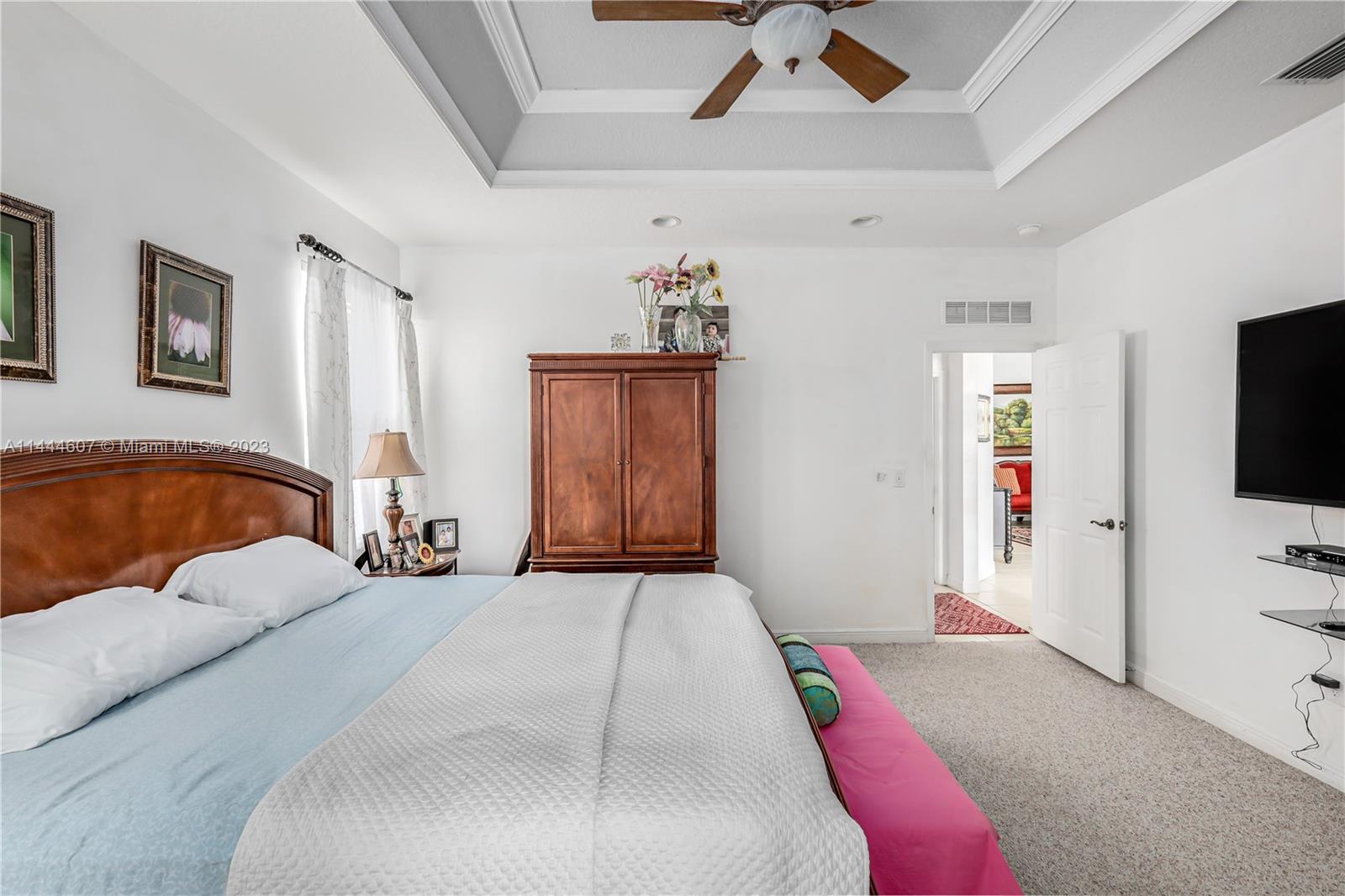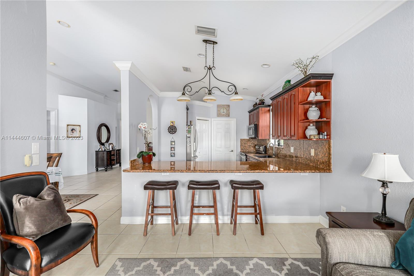 Discover this treasure in Vizcaya a spacious, lakefront retreat offering stunning lake views and abundant space. Vaulted ceilings infuse a bright, open ambiance into this 3-bed, 3-bath haven. Plus, a den/office with elegant glass French doors awaits your personal touch. The kitchen, adorned with stainless steel appliances and granite countertops, seamlessly connects to the family room, making it a hub for gatherings. A 2-car garage and the pie-shaped backyard is perfect for a pool and outdoor entertainment, all with a serene lake backdrop. Enjoy Vizcaya's amenities, including a clubhouse and pool, and nearby Vizcaya Park with basketball courts, picnic pavilion, a covered playground, and a splash pad. A-rated schools are close by, and you're minutes from shops, dining, and the Turnpike.