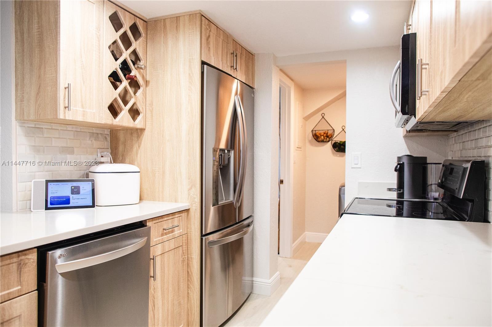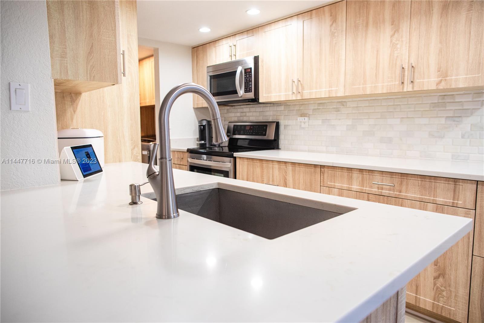 Stunning corner townhome with top-notch $50k+ in upgrades. Enjoy a spacious 2BR/2.5 BA + Den. Recently replaced A/C and upgraded copper plumbing, Screened patio. Luxurious commercial-grade waterproof vinyl floors. Crown molding, wifi-enabled recessed lighting, modern kitchen with quartz counters & stainless steel appliances. Fully renovated bath w/quartz & state-of-the-art fixtures, California closets and European style closet inside master bedroom & custom Murphy bed in the second room. Converted garage to den with storage space. Community pool, basketball & racquetball courts, gym, and a park for kids. Fully remodeled move-in ready home. Don’t miss it! Easy to show and sell. Located in the heart of Pembroke Pines next to top hospitals, restaurants, shopping, entertainment & schools.