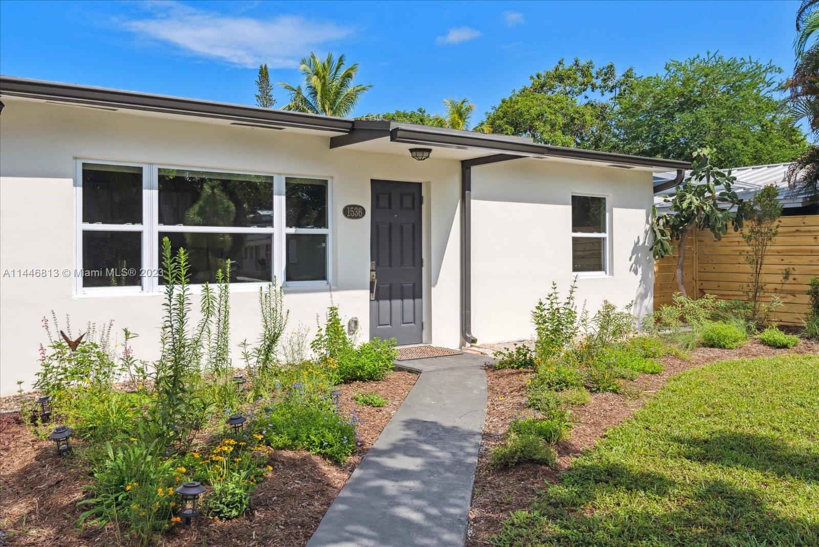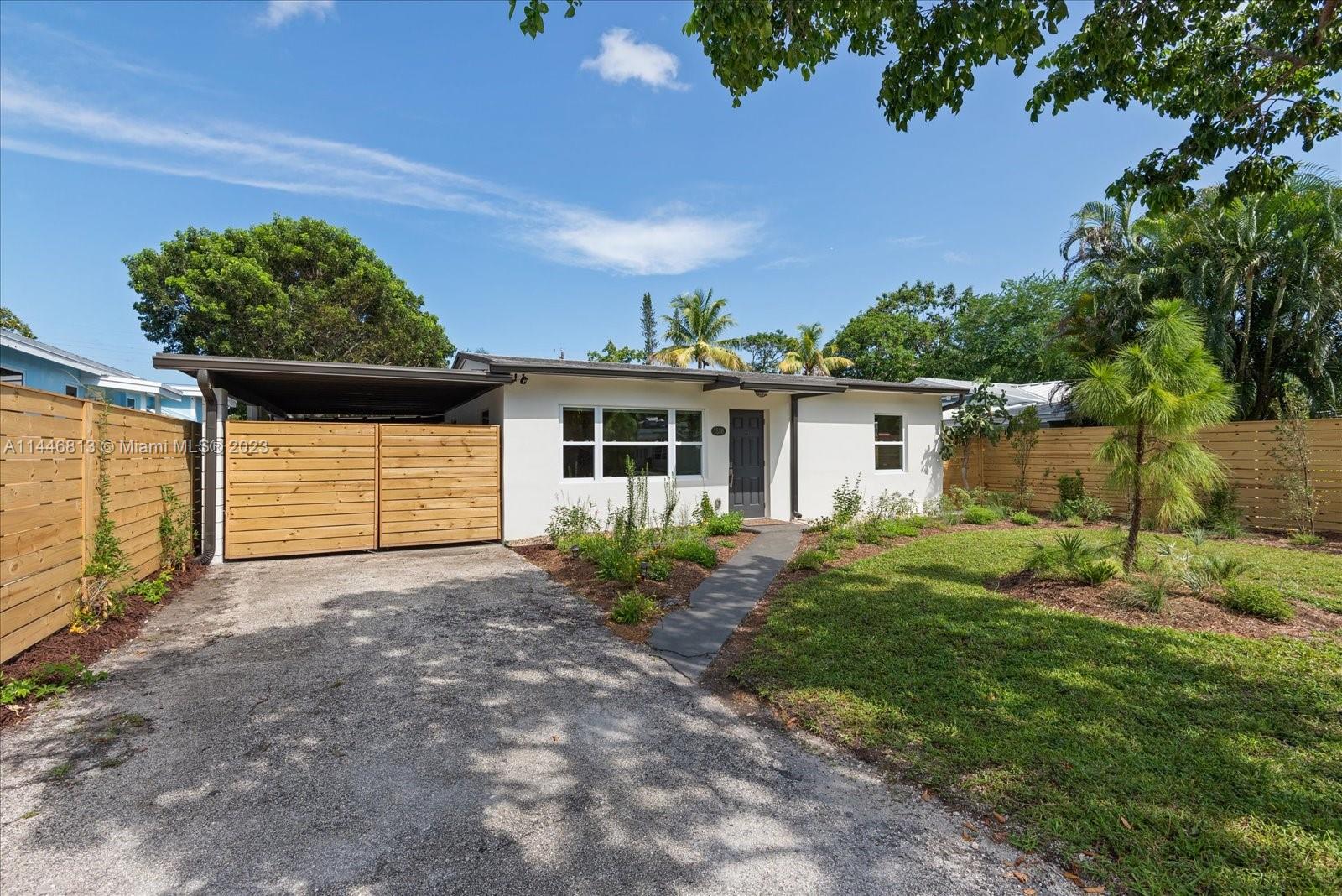 Welcome to this updated mid-century gem in the heart of Ft. Lauderdale! This 3 bed/1 bath home is a rare find with its iconic terrazzo floors, updated kitchen (2018) & bath (2020) and oversized lot with room for a pool. This home also boasts a newer AC (2016) & roof (2016), along with hurricane impact windows & doors (2019) and new exterior paint & stucco (2021), providing peace of mind and energy efficiency. Create your own oasis with the new environmentally friendly, biodiverse landscaping. Location couldn't be better in sought after South Middle River – you're just minutes away from "The Drive" in Wilton Manors and Flagler Village. Other features include a carport, shed, fully fenced yard with custom built meat smoker. Enjoy worry free living with an included one year home warranty!