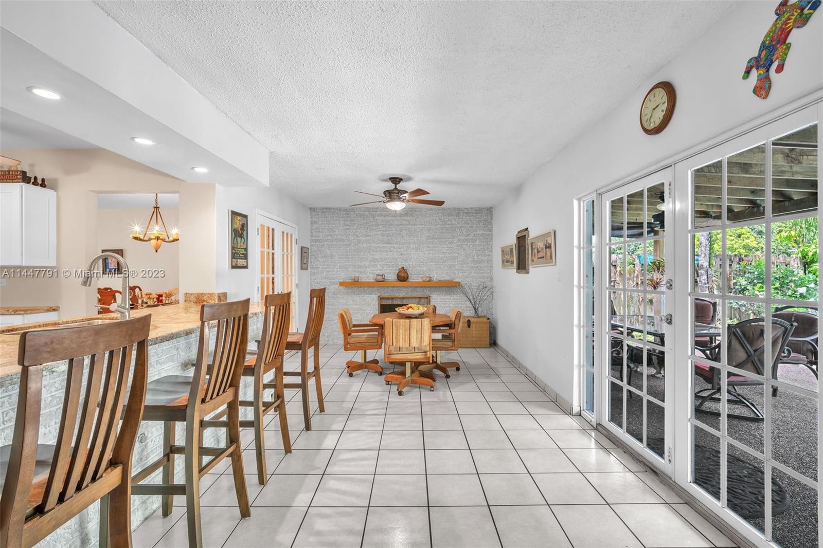 This gorgeous home is located in the desirable Hollywood Hills, offering three bedrooms, two bathrooms, a family room, NEW CENTRAL AIR (2024), and a spacious 328 SQFT great room with a working fireplace. The kitchen has been recently updated with beautiful white cabinets, granite countertops, and stainless steel appliances, providing a modern and sleek look. Additional features include a laundry-utility room, over 250 SQFT of covered patio, privacy fence, and two-car garage. The home has impact windows and a tile roof, making it storm-ready. The location is very convenient, within walking distance of schools, shops, and restaurants. You will be just minutes away from the beach and Hard Rock Hotel. This home is perfect for a buyer who appreciates spaciousness, comfort, and modern amenities.