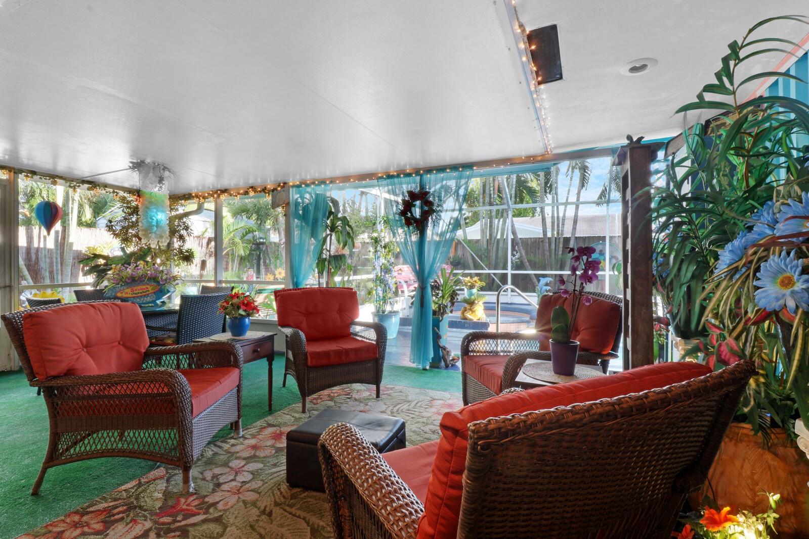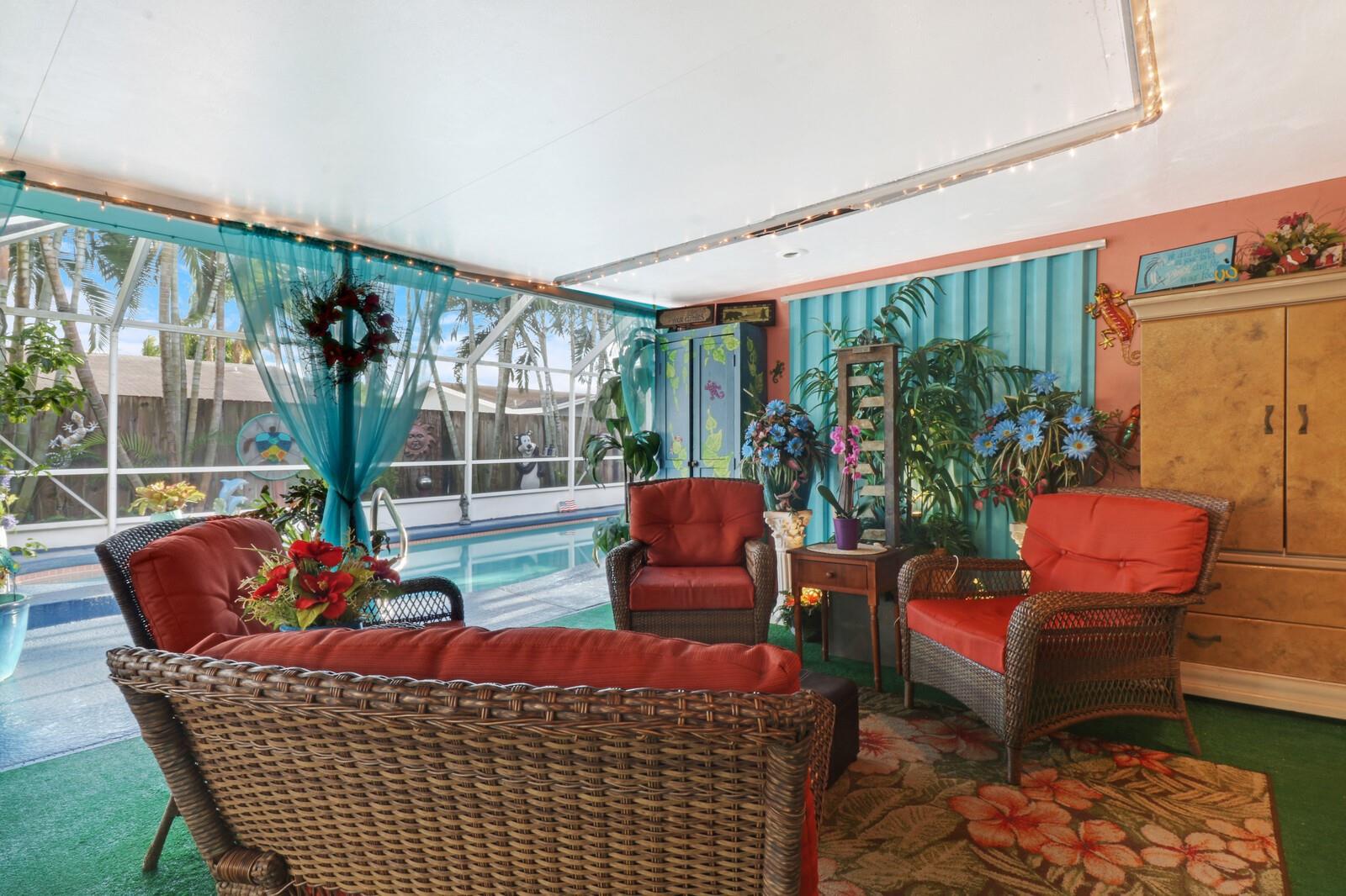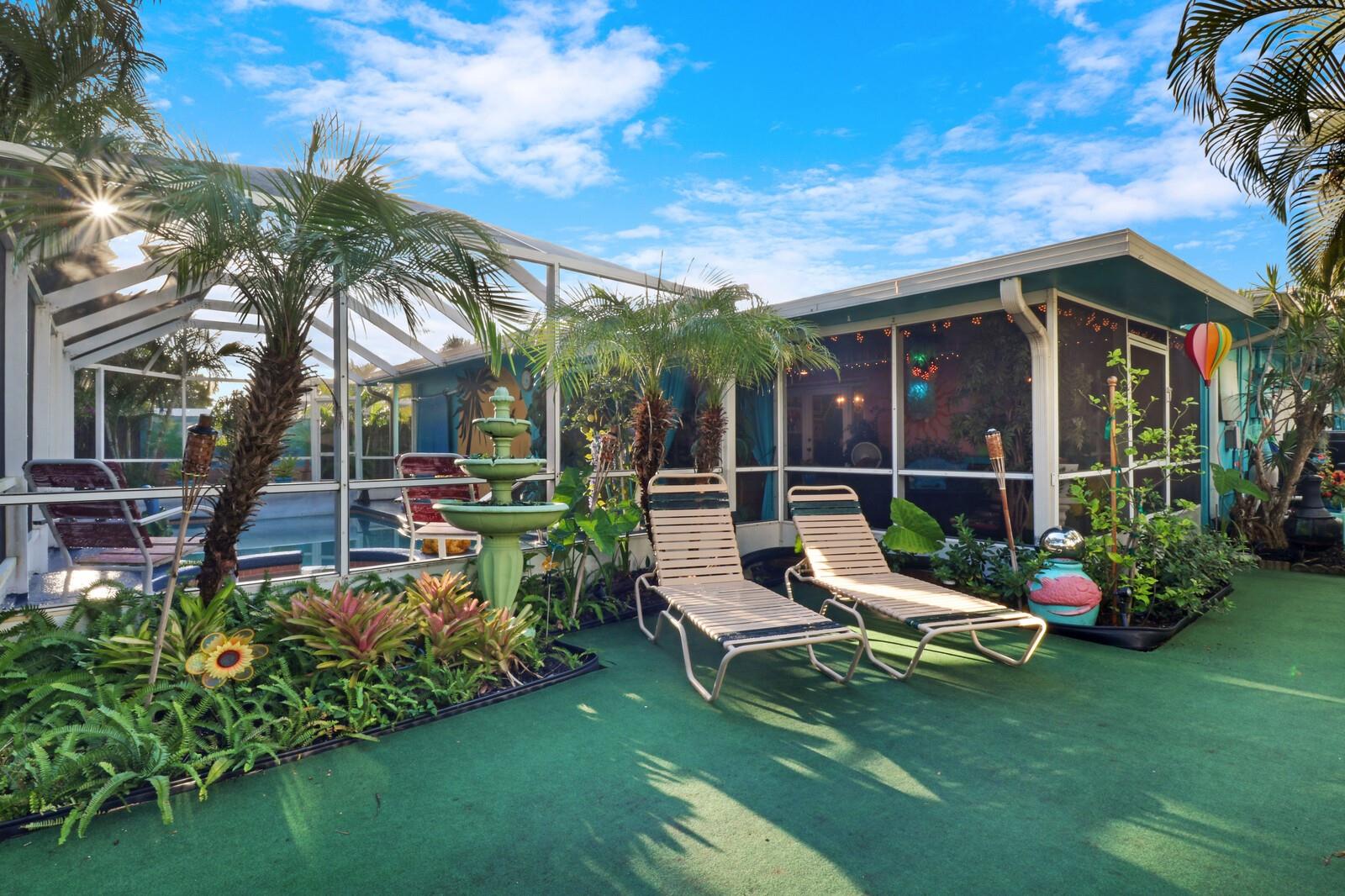 A True Key West Artist's Retreat Vibe with a casual elegance awaits you in the Palm Aire Village Home. Beach house feel without the beach price. From top to bottom recent renovations have completed making this a desirable home. Roof in '18. Sewer Lining '17, Newer Kitchen, Newer Solar Water Heater, A/C 5 years old, and that's just the beginning. Split bedroom plan with your Primary suite in the rear adjacent to the screened in heated salt water pool and spa. Designer kitchen with movable island, complete pull outs for ease of storage and soft close drawers. One car garage with built in storage as well as additional storage shed outside. Beautiful tropical landscape takes you on a metal break from the city to relaxing in the keys. Close to major roads and the city's largest employers.