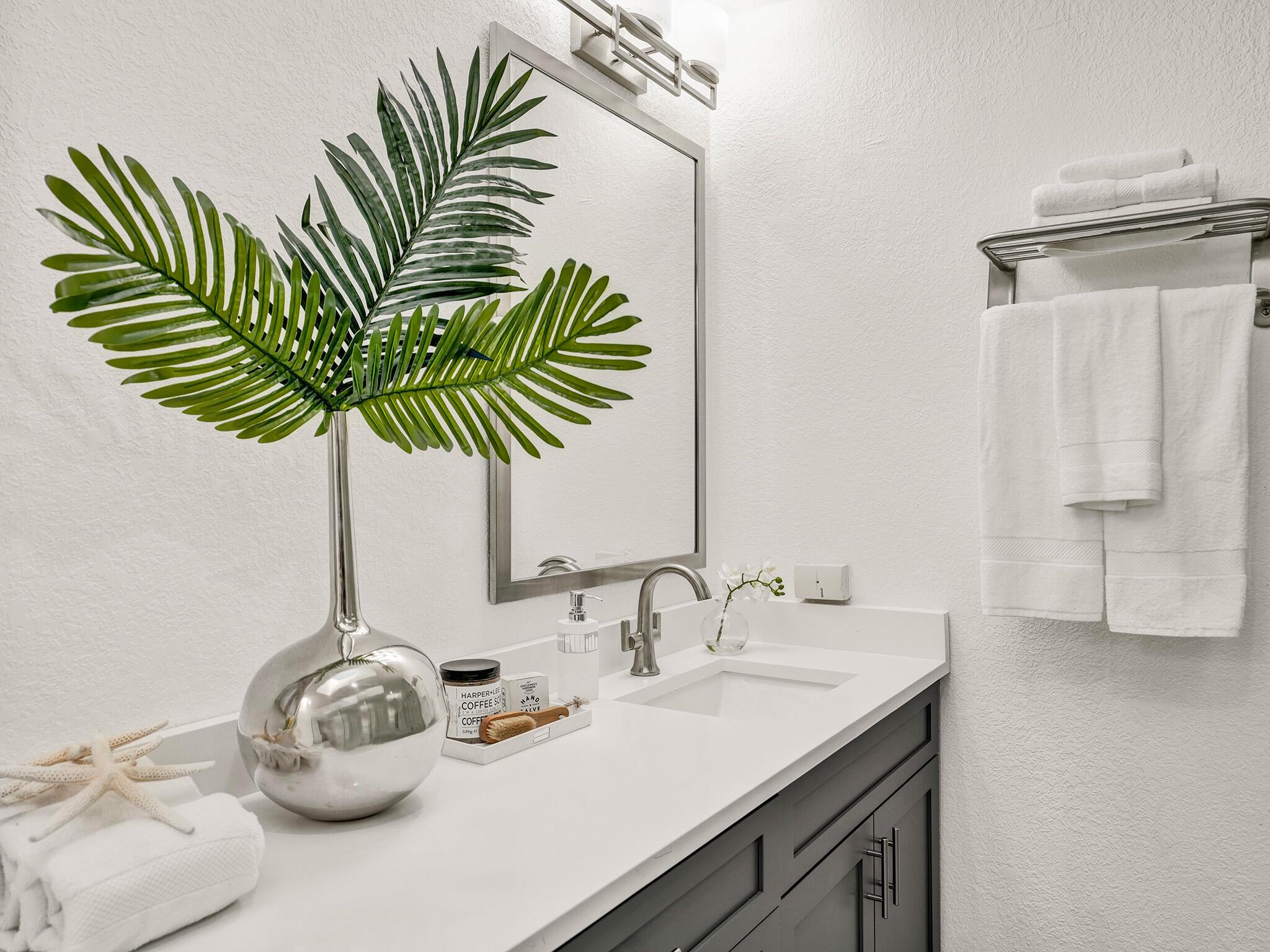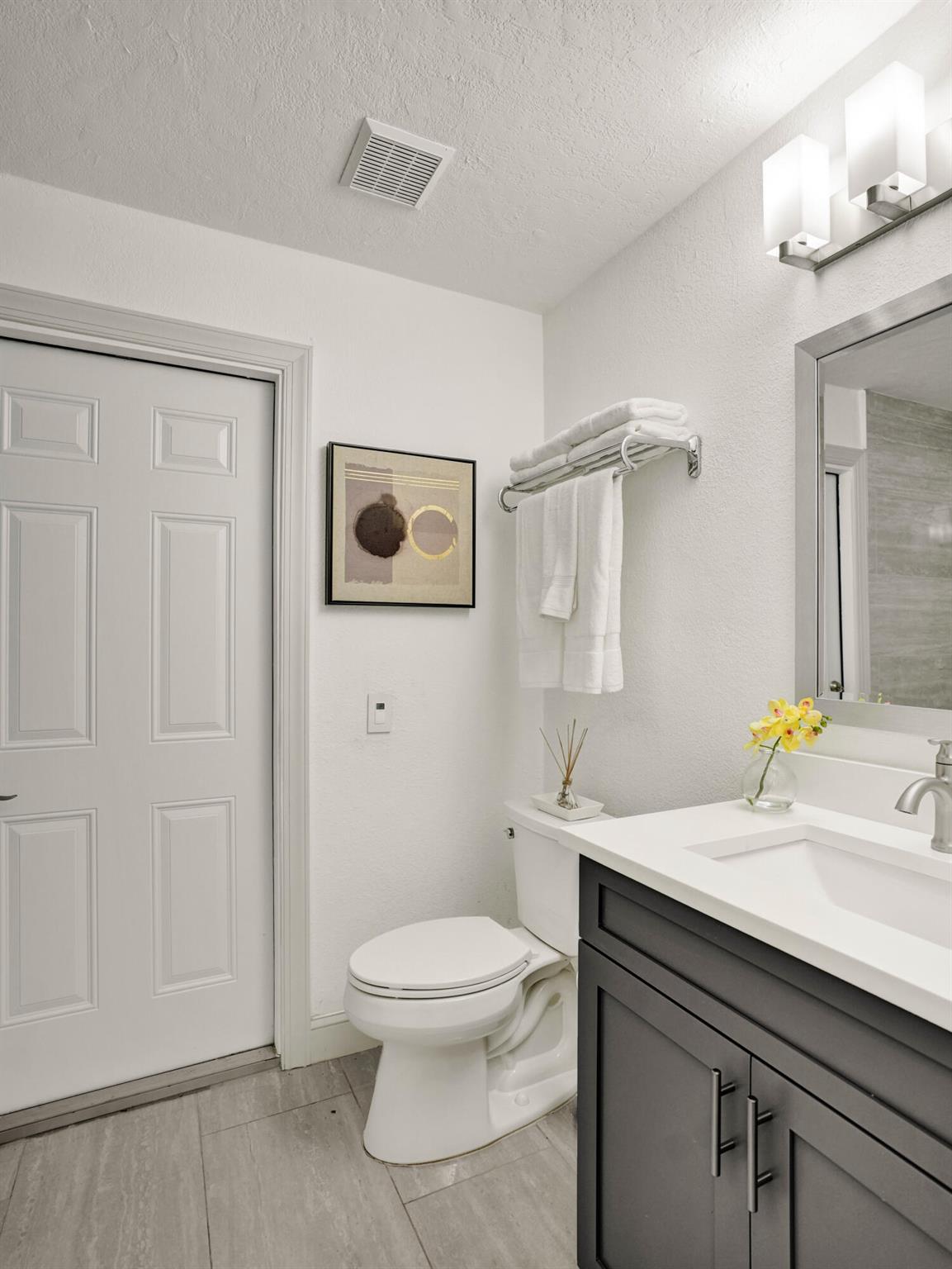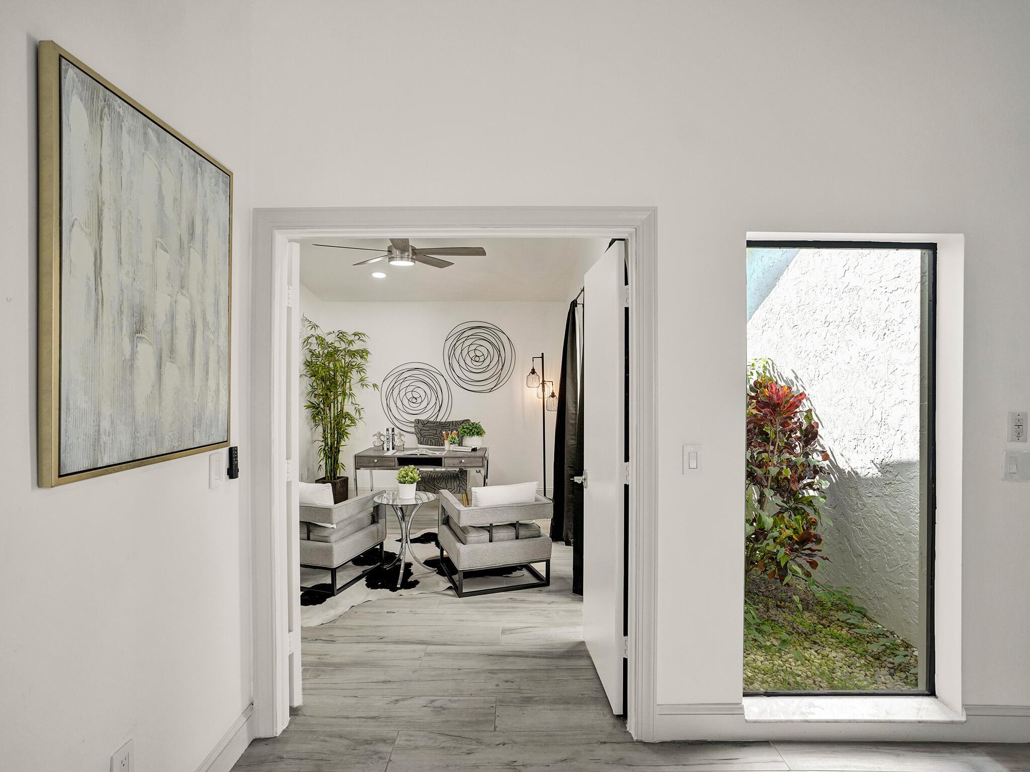 Stunning 2 bedroom PLUS den with golf view in prestigious Boca Woods Country Club. Elegantly remodeled with sleek and bright finishes. 11.5' ceilings in the great room and atrium. Natural light is abundant. Gourmet kitchen features stainless steel appliances, gorgeous white cabinets with gray quartz countertops, a large 9' x 3' island with enough seating for 4 at the bar plus a breakfast area. Master suite with a view of the pool has 2 completely outfitted walk-in closets and a luxury bath with skylight, large shower and vanity. Enjoy the view of your pool and the lush green golf course from your living room, kitchen, breakfast area and dining room. Seller is offering a $25,000 credit towards Boca Woods Golf Membership to enjoy the stunning newly renovated clubhouse and tennis courts.