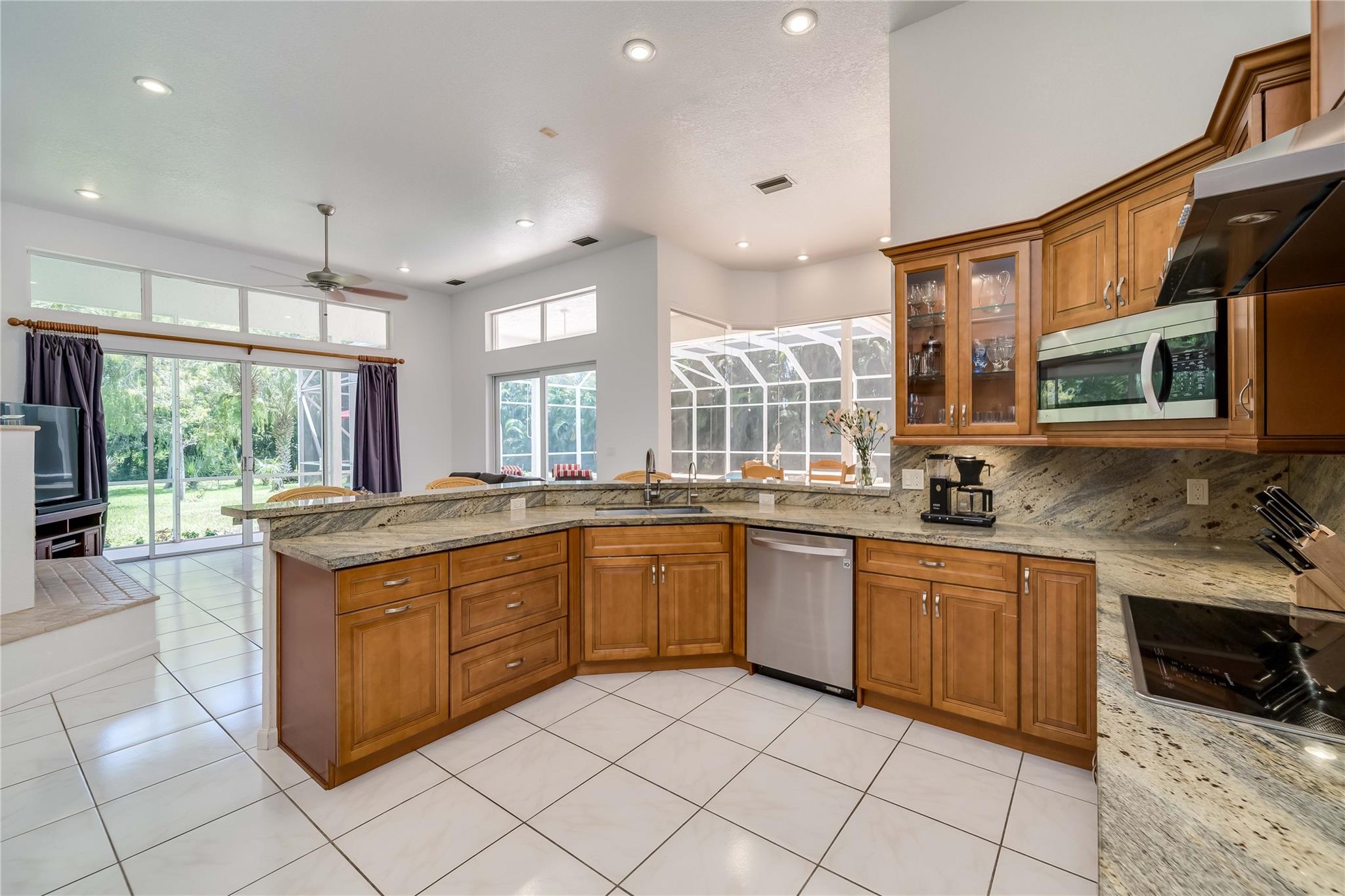MUST SEE 4/3 POOL HOME W/A 3 CAR GARAGE LOCATED ON MORE THAN AN ACRE! THIS FRESHLY PAINTED & UPDATED HOME HAS ALL THE BELLS & WHISTLES AS FOLLOWS: 2017 BARREL TILED ROOF!UPDATED MAPLE KITCHEN W/ BEAUTIFUL GRANITE COUNTER TOPS & BACKSPLASH!G.E. PROFILE STAINLESS STEEL APPLIANCES/DOUBLE OVEN/INDUCTION VENTED RANGE!WIDE PLANK WOOD FLOORING IN THE BEDROOMS W/ THE MAIN BEDROOM HAVING A DARK MAHOGANY LOOK!UPDATED BATHROOMS W/THE MAIN FEATURING ALL HIGH END RICH WOOD CABINETS & GRANITE W/SLATE LIKE INLAID TILES IN THE STEP IN SHOWER!ADDED CABINETRY & GRANITE IN THE ENCLOSED WATER CLOSET AREA!BUBBLE BATH TUB!JOHN LOUIS CLOSET ORGANIZERS W/EXTRA STORAGE FOR LUGGAGE LAUNDRY ROOM HAS ALL NEW CABINETRY!YOU'LL LOVE THIS ENLARGED HURRICANE SCREENED IN POOL WITH AN OVERSIZED 2200 SQ. FT POOL & PATIO.