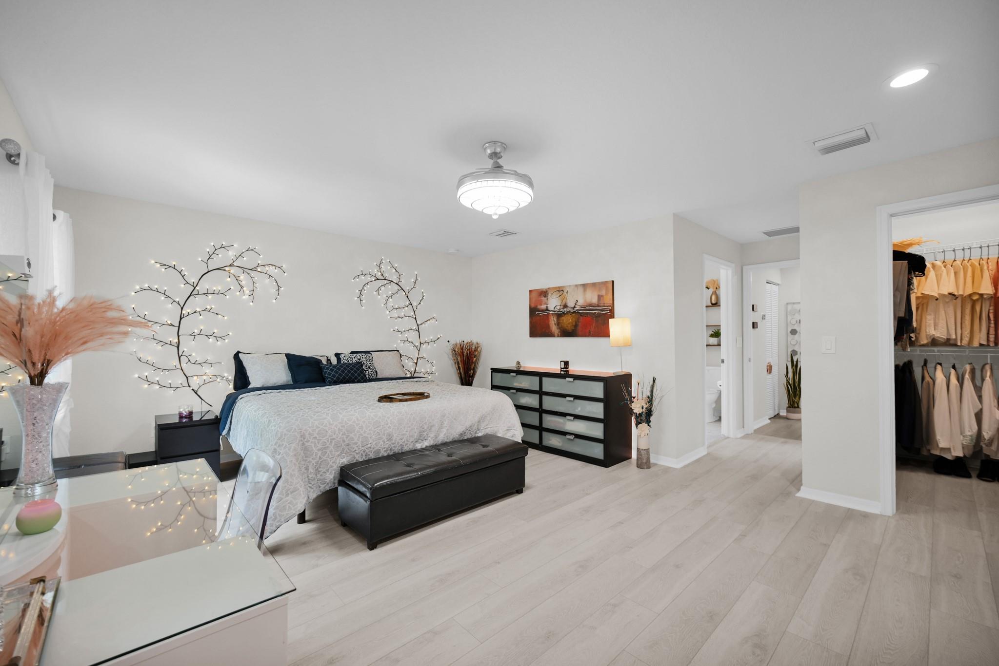 Just Reduced! Step into this meticulously maintained & Vacation Rental friendly 2018-built two-story townhome, boasting 1940/SF of contemporary and well designed living space with NO HOA fee. With three bedrooms, two-and-half-baths, and a two-car garage, it's a canvas to create your memories. Inside, the home creates a cozy and welcoming ambiance. The spacious kitchen is a chef's paradise. Upstairs, the primary suite is your personal retreat, complete with a walk-in closet, en-suite bathroom, and a balcony overlooking the backyard. Two additional bedrooms share a generously-sized bathroom. The backyard is a sanctuary, with multiple seating areas and a majestic banyan tree—an ideal setting for outdoor dining or cherished moments. This townhome seamlessly combines serenity with convenience.