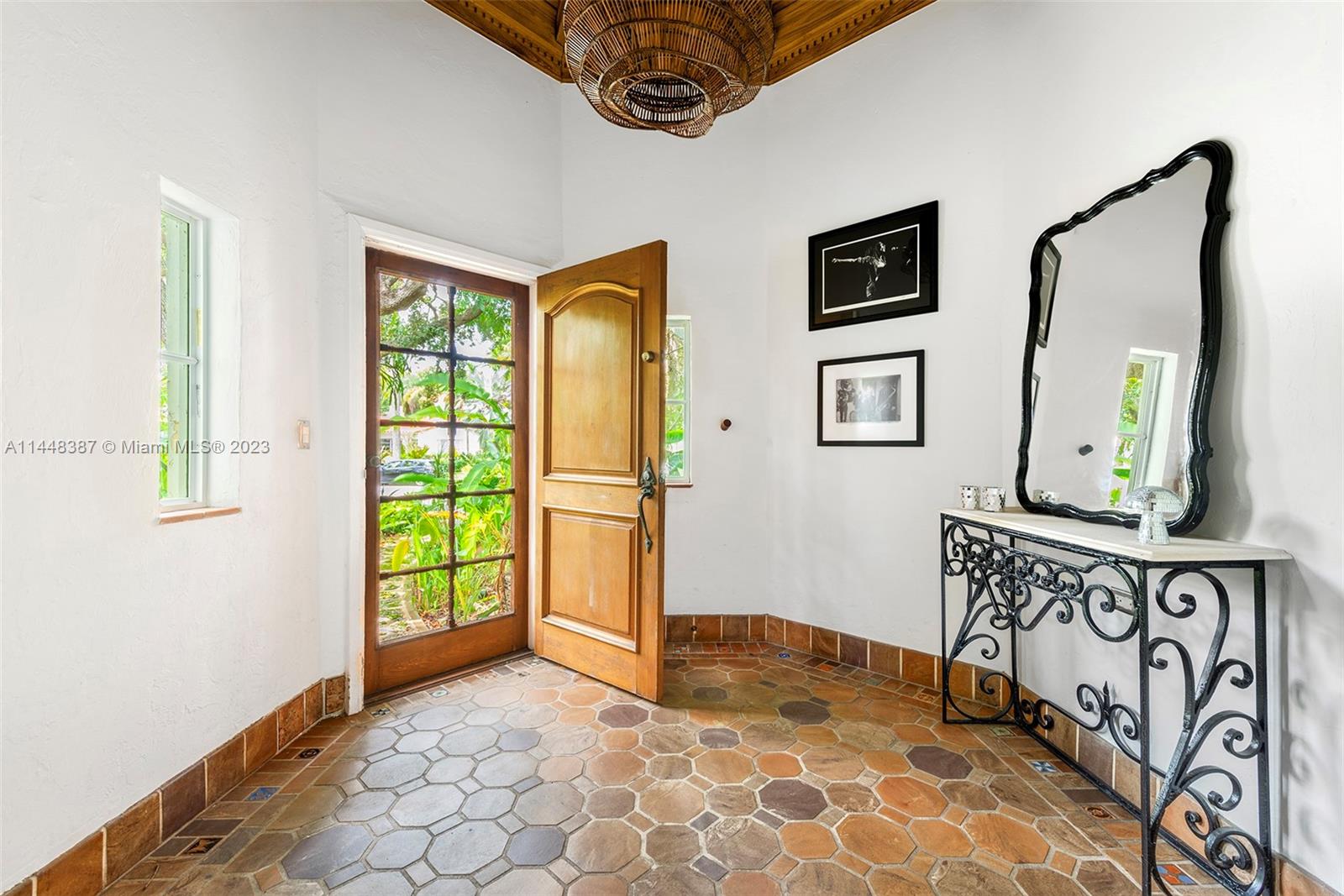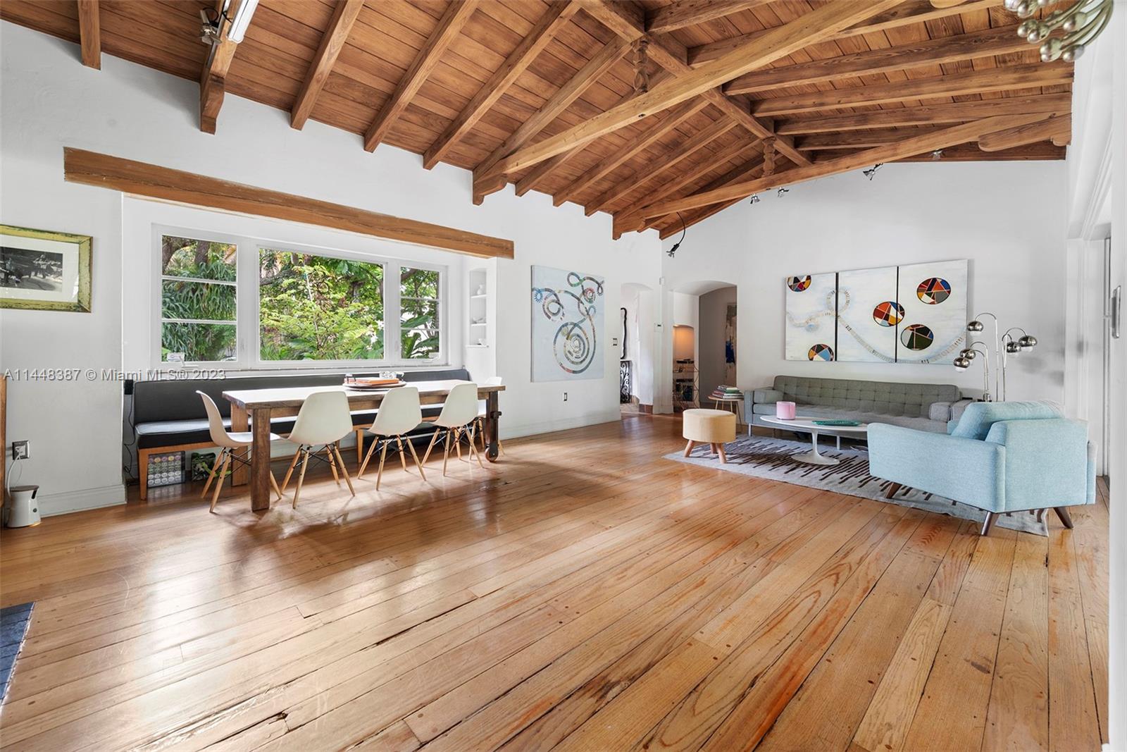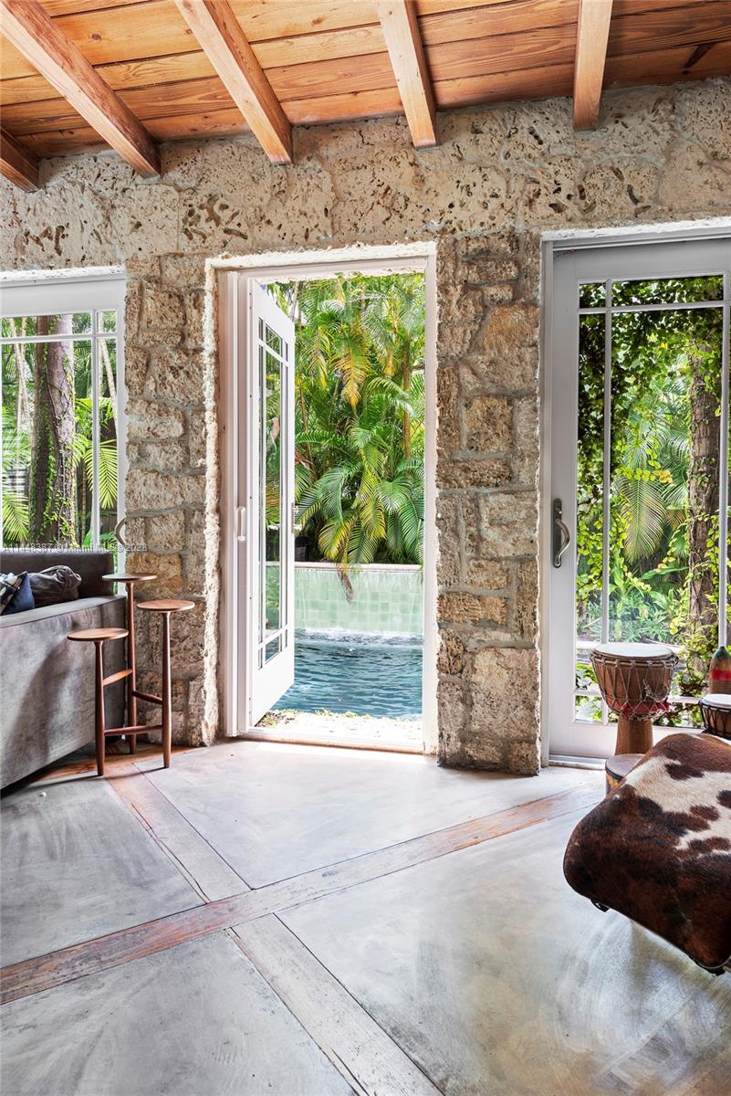 Nestled on idyllic 57th Street in historic Morningside, just one block from Biscayne Bay and two blocks from Morningside Park, 644 NE 57th Street is a magical 1938 Deco Mediterranean home. Canopied in lush landscaping on an extremely private 9,450 square foot lot, this 4-bed, 4-bath home spans approximately 2,600 square feet. Defining features include 11 '4'' vaulted pine ceilings, coral rock walls, pine flooring, impact doors/windows and a heated saltwater pool. Notable upgrades include a 7 year old roof, backup generator, newly updated central a/c unit, new pool pump, brand new pool heater, outdoor solar garden lighting and a recently resurfaced pool. Residents enjoy access to Morningside Park which has a playground, basketball & tennis courts, a boat ramp and paddleboard rentals.