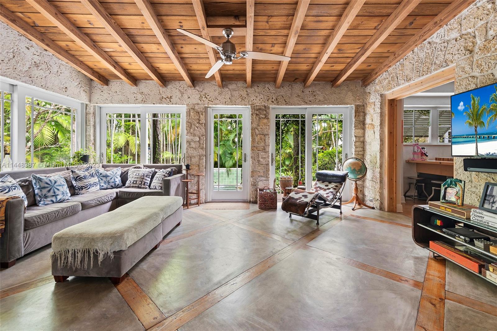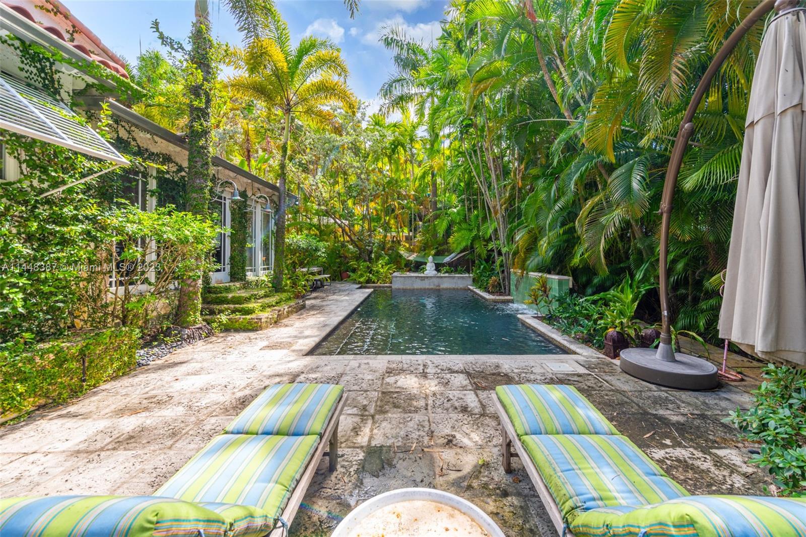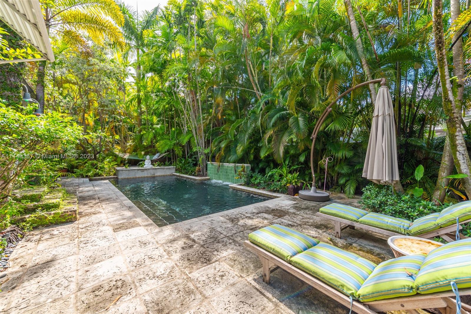 Nestled on idyllic 57th Street in historic Morningside, just one block from Biscayne Bay and two blocks from Morningside Park, 644 NE 57th Street is a magical 1938 Deco Mediterranean home. Canopied in lush landscaping on an extremely private 9,450 square foot lot, this 4-bed, 4-bath home spans approximately 2,600 square feet. Defining features include 11 '4'' vaulted pine ceilings, coral rock walls, pine flooring, impact doors/windows and a heated saltwater pool. Notable upgrades include a 7 year old roof, backup generator, newly updated central a/c unit, new pool pump, brand new pool heater, outdoor solar garden lighting and a recently resurfaced pool. Residents enjoy access to Morningside Park which has a playground, basketball & tennis courts, a boat ramp and paddleboard rentals.