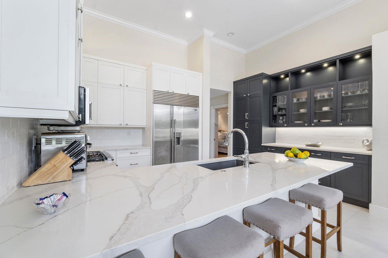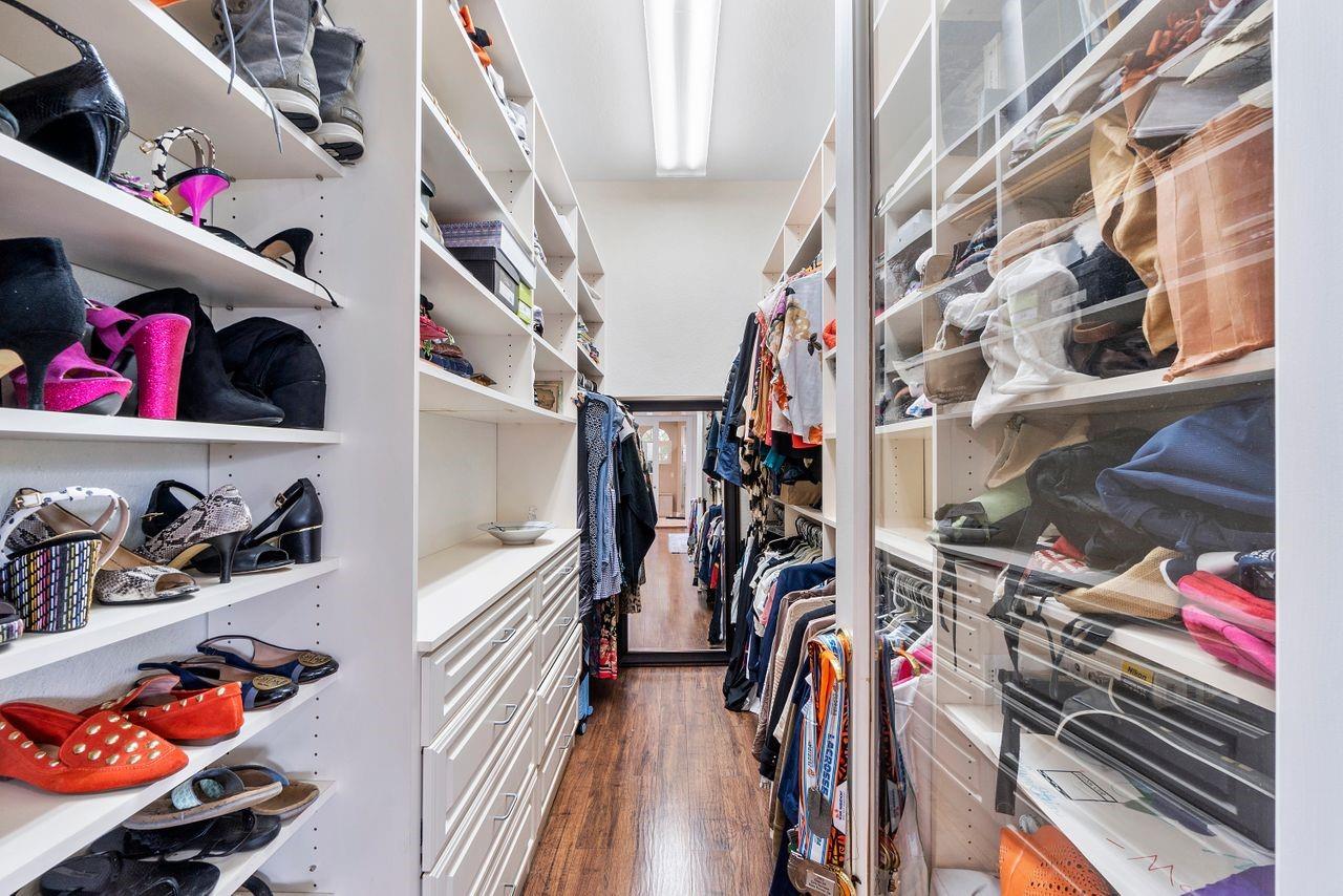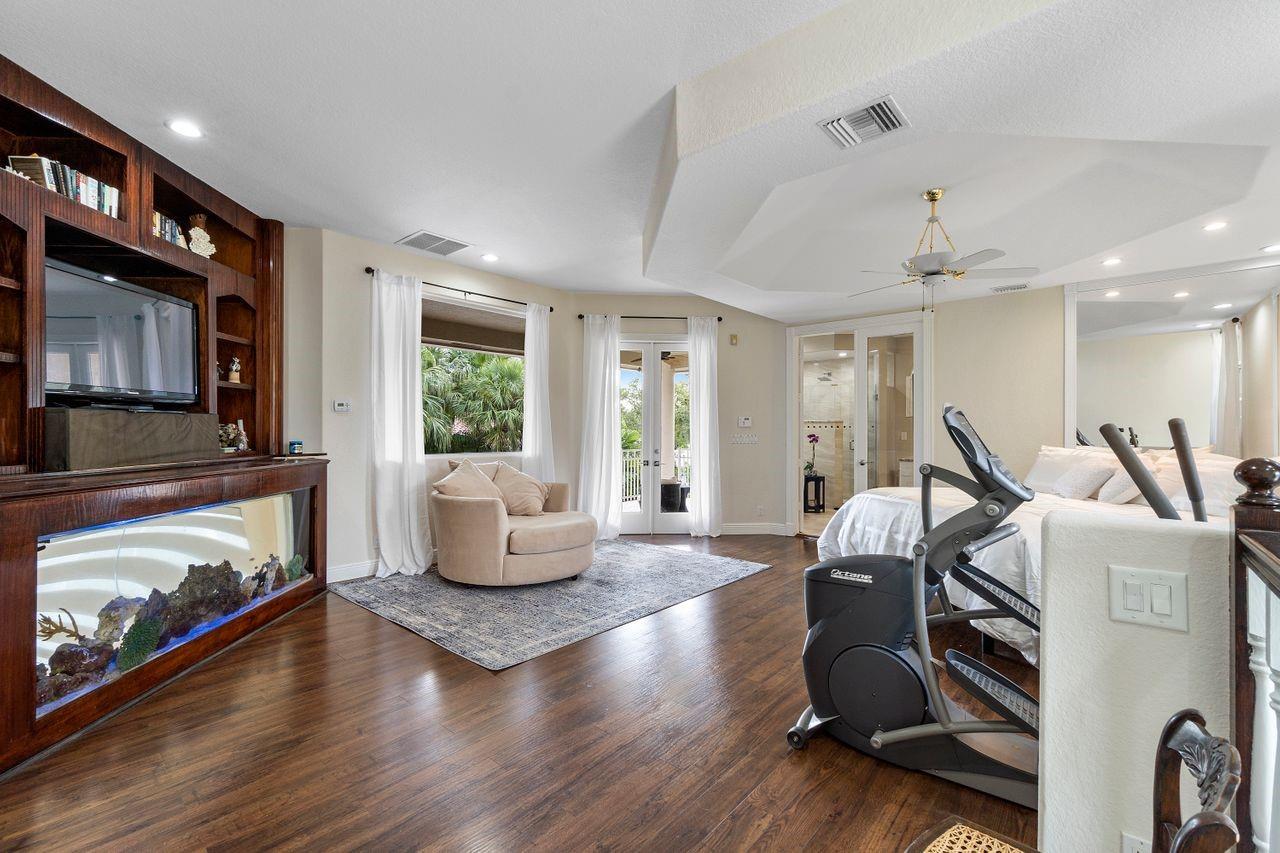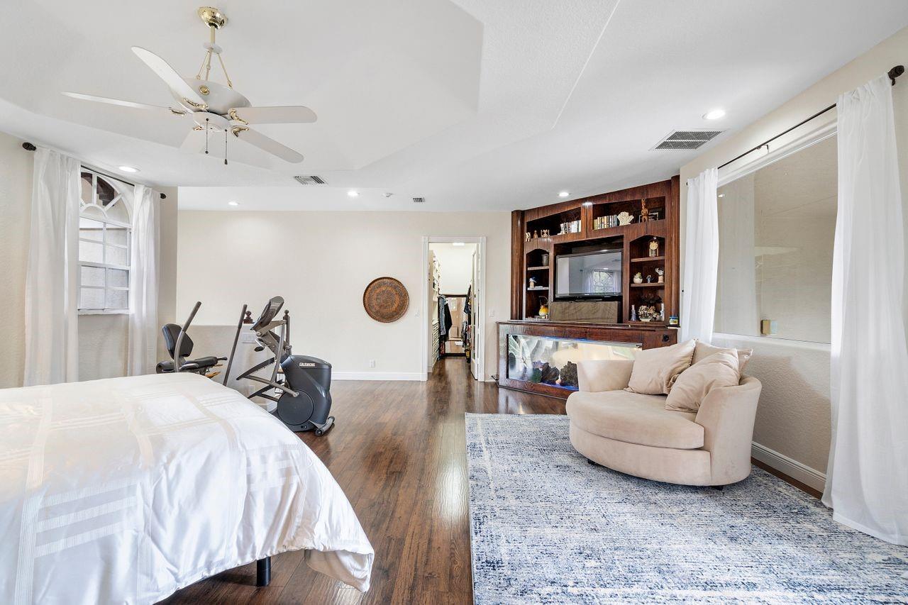 Unique Custom Home sits on half-acre, private cul-de-sac lot. This builder’s home is a fabulous family or multi- generational home. Volume ceilings throughout. Updated eat- in kitchen w/Calcutta quartz countertops, gas cooktop, S/S appliances, double oven, under counter lighting and great storage. Entertain in the formal dinning area/ sitting room or gather in the open kitchen/ family room. Extra- large BONUS room- perfect for full-sized pool table or movie night. 5 bedrooms have large built-out closets & updated bathrooms. Huge primary suite upstairs has it’s own balcony, soaking tub and amazing double sided fish tank. Large private backyard with lush landscaping, pool & outdoor kitchen. Fully fenced yard. Walk to amenity island with tennis/pickle ball, basketball and playground.