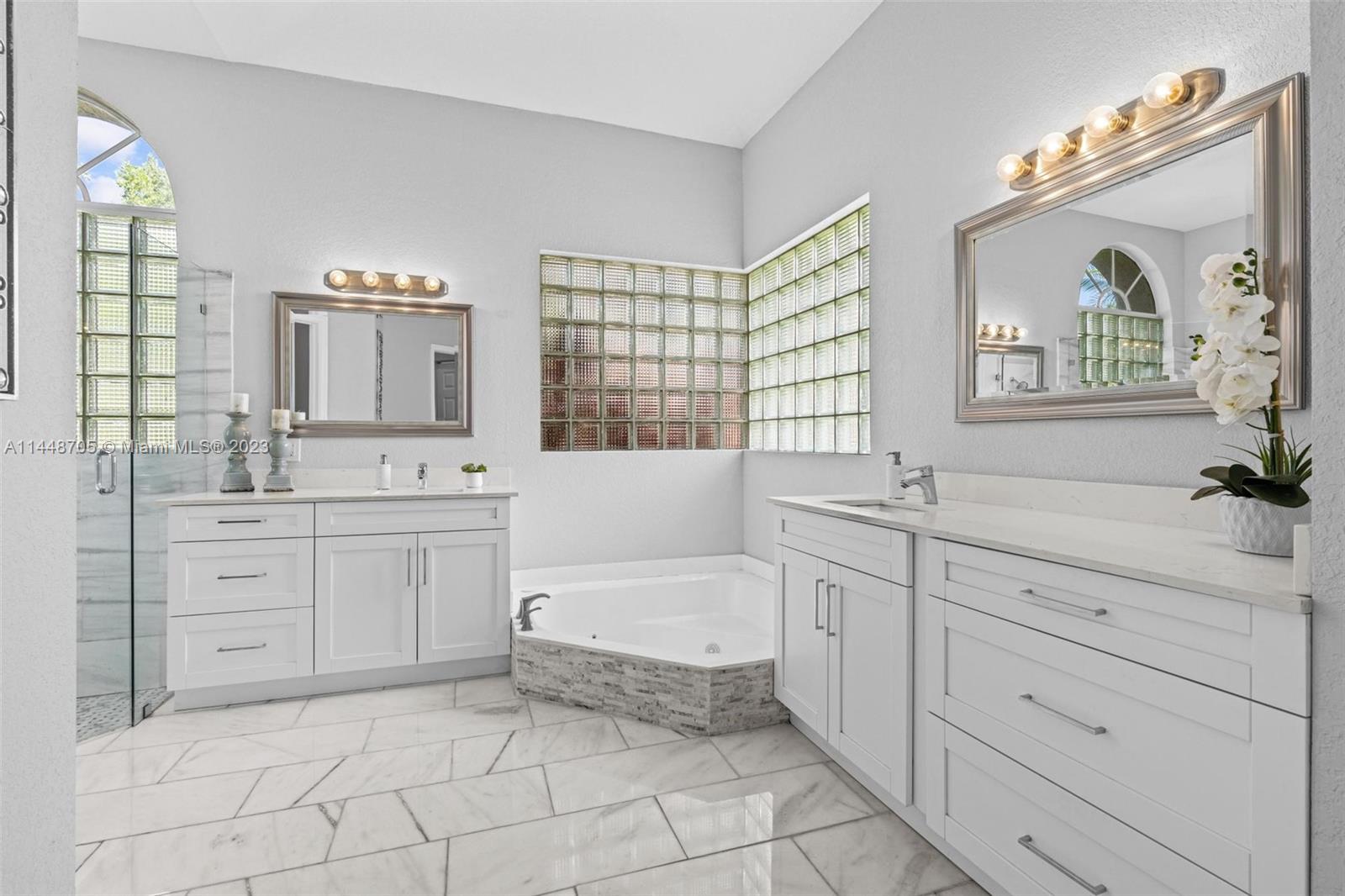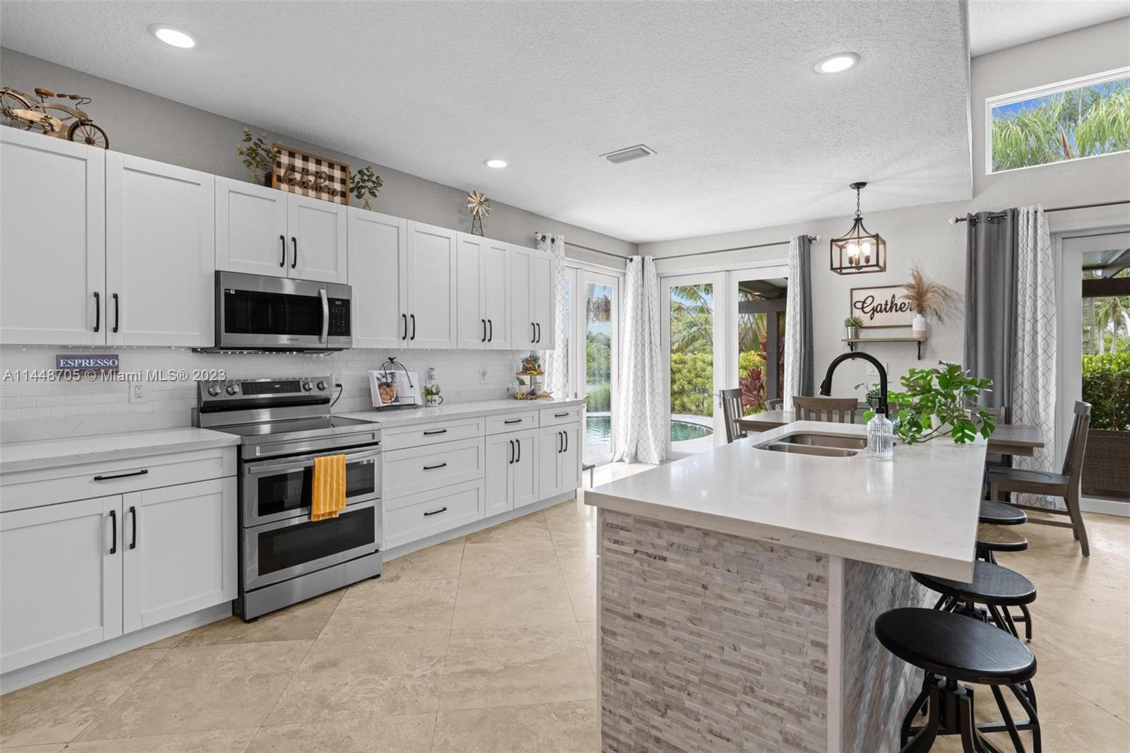 The search is over! Welcome to this exquisitely renovated 2 story dream house! Situated on a private prime lot cul-de-sac w/a beautiful lake! NEW ROOF! IMPACT WINDOWS + DOORS! NEW A/C! Enjoy South Fl living at its finest w/ new resurfaced salt water pool, serene lake views + NEW PERGOLA W/ LIGHTING! Prepare to be greeted by panoramic water views, natural lighting + high ceilings upon entry! Primary suite is on 1st floor and features his/her walk in closets, a fireplace & newly renovated bathroom! The open kitchen is also newly designed & upgraded! Complete w/ quartz countertops, SS appliances and brand new modern farmhouse cabinetry. 3 bedrooms are upstairs, along with another impressively upgraded bath! NEW ELECTRICAL PANEL + GENERATOR READY! Custom window treatments! GATED COMMUNITY!