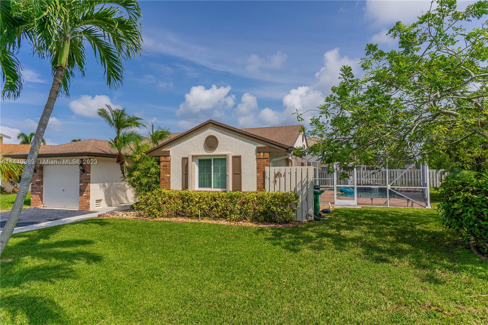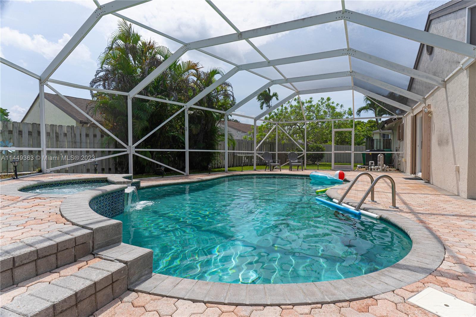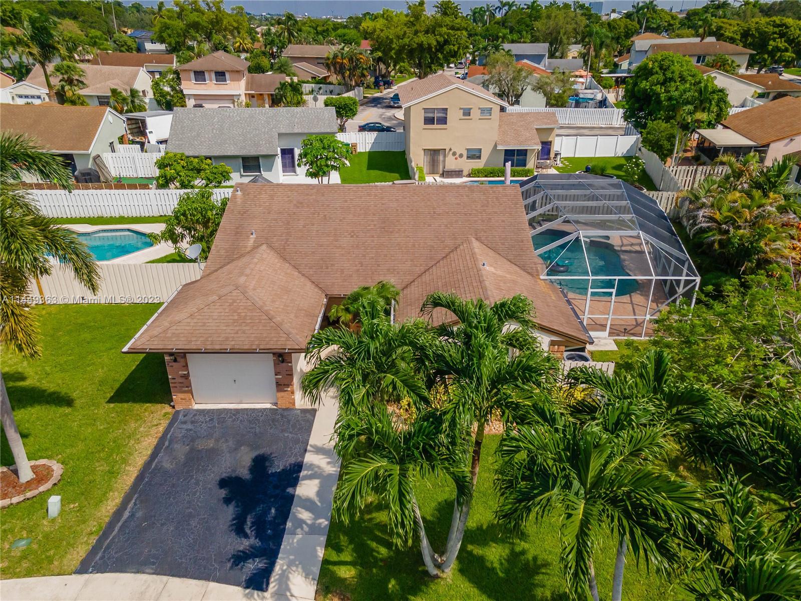 Your dream home in Davie! Located in a Cul-De-Sac, consisting of 3 bedrooms (Split floorplan) and 2 bathrooms. Beautiful screen enclosed, pavered backyard perfect for entertaining, enjoying the pool w/heated jacuzzi or relaxing at the lanai. Vaulted ceilings, upgraded kitchen, marble countertops and stainless steel appliances, Impact windows + Accordion shutters, lots of natural light. The garage has been partially converted. Low HOA. Less than five minutes from I-595, community park, shopping centers and entertainment. Less than 30 min from both MIA and FLL airports. This sale is subject to Probate. Don’t miss your chance!