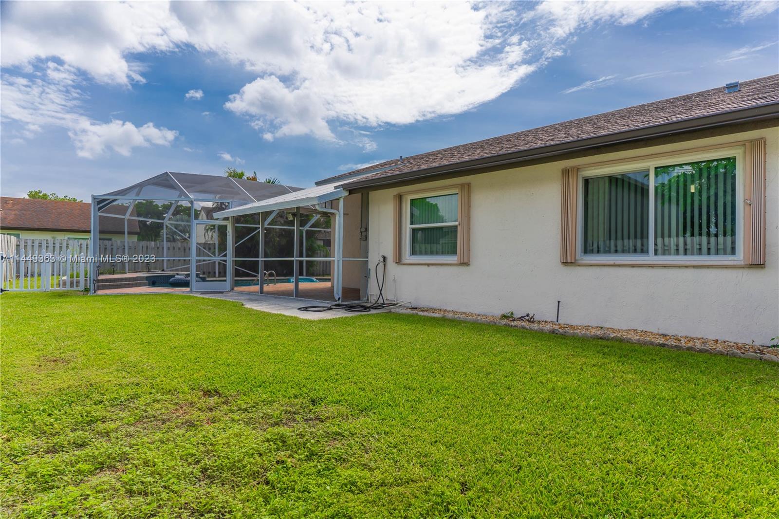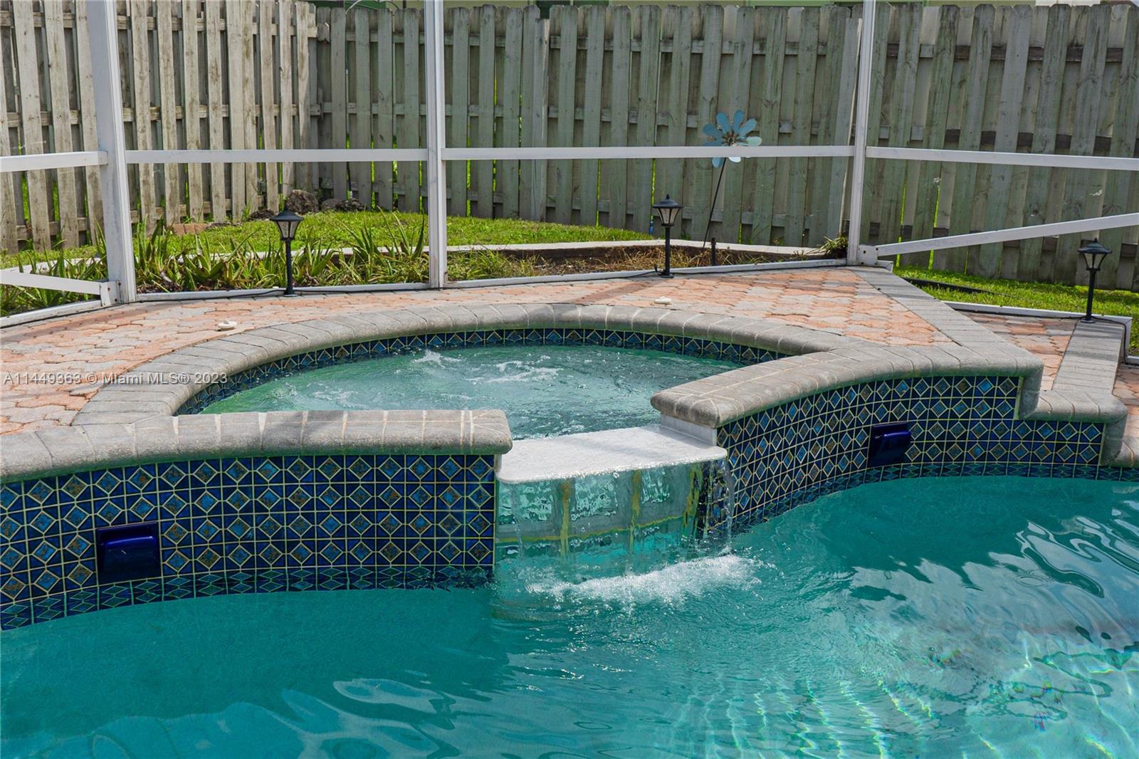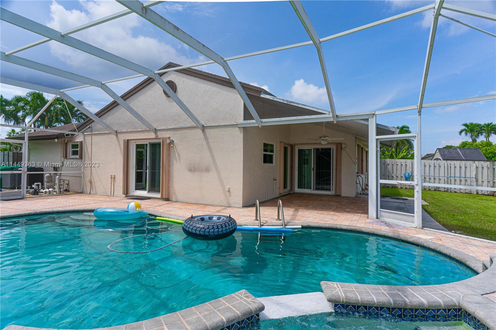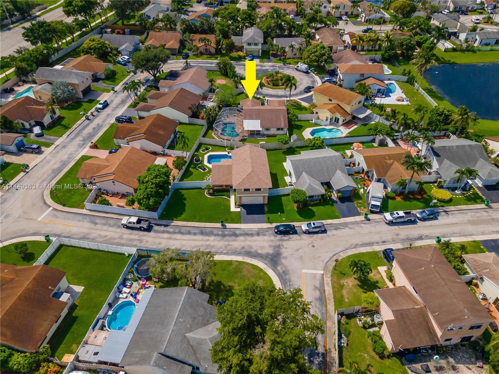 Your dream home in Davie! Located in a Cul-De-Sac, consisting of 3 bedrooms (Split floorplan) and 2 bathrooms. Beautiful screen enclosed, pavered backyard perfect for entertaining, enjoying the pool w/heated jacuzzi or relaxing at the lanai. Vaulted ceilings, upgraded kitchen, marble countertops and stainless steel appliances, Impact windows + Accordion shutters, lots of natural light. The garage has been partially converted. Low HOA. Less than five minutes from I-595, community park, shopping centers and entertainment. Less than 30 min from both MIA and FLL airports. This sale is subject to Probate. Don’t miss your chance!