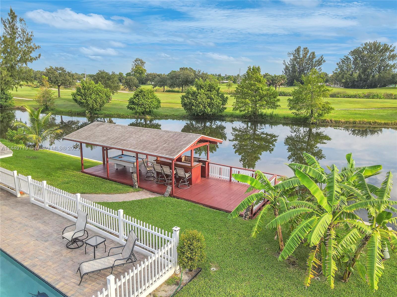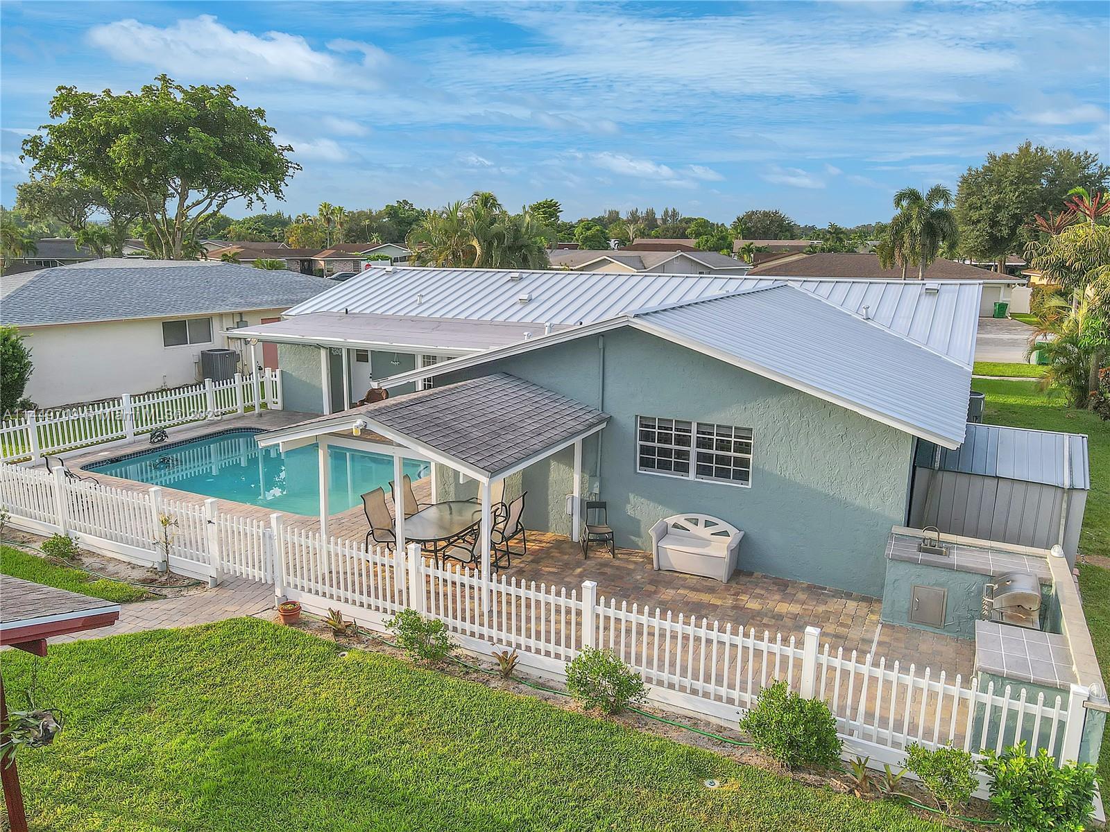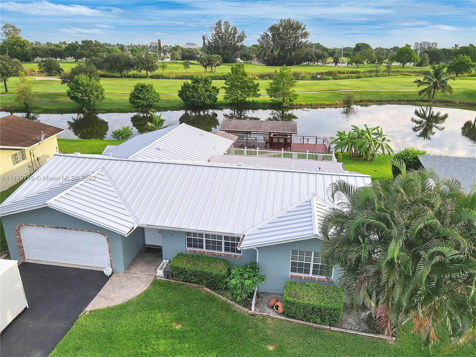 THESE VIEWS!! Enjoy your morning coffee or gather for Happy Hour with your favorite people at your private Sports Bar with a pool table. This 3 bedroom, 2 cabana bathroom pool home is overlooking the Davie Golf Club. Situated in the Arrowhead community with NO HOA and assigned A-rated schools. Walk in to an OPEN and SPLIT floor plan with a recently REMODELED KITCHEN and NEWER SS APPLIANCES and COOKING ISLAND. New 32" ceramic tile floor throughout the main areas and vinyl in the master bedroom. This home features a BRAND NEW METAL ROOF and GUTTERS. All windows are IMPACT and the Seawall redone. 4-point/WindMit reports from 6/23 available for your convenience. AC 2021, electric panel 2022, Perfect location close to Shopping, Universities, Highways and Parks. Boat parking allowed on property.