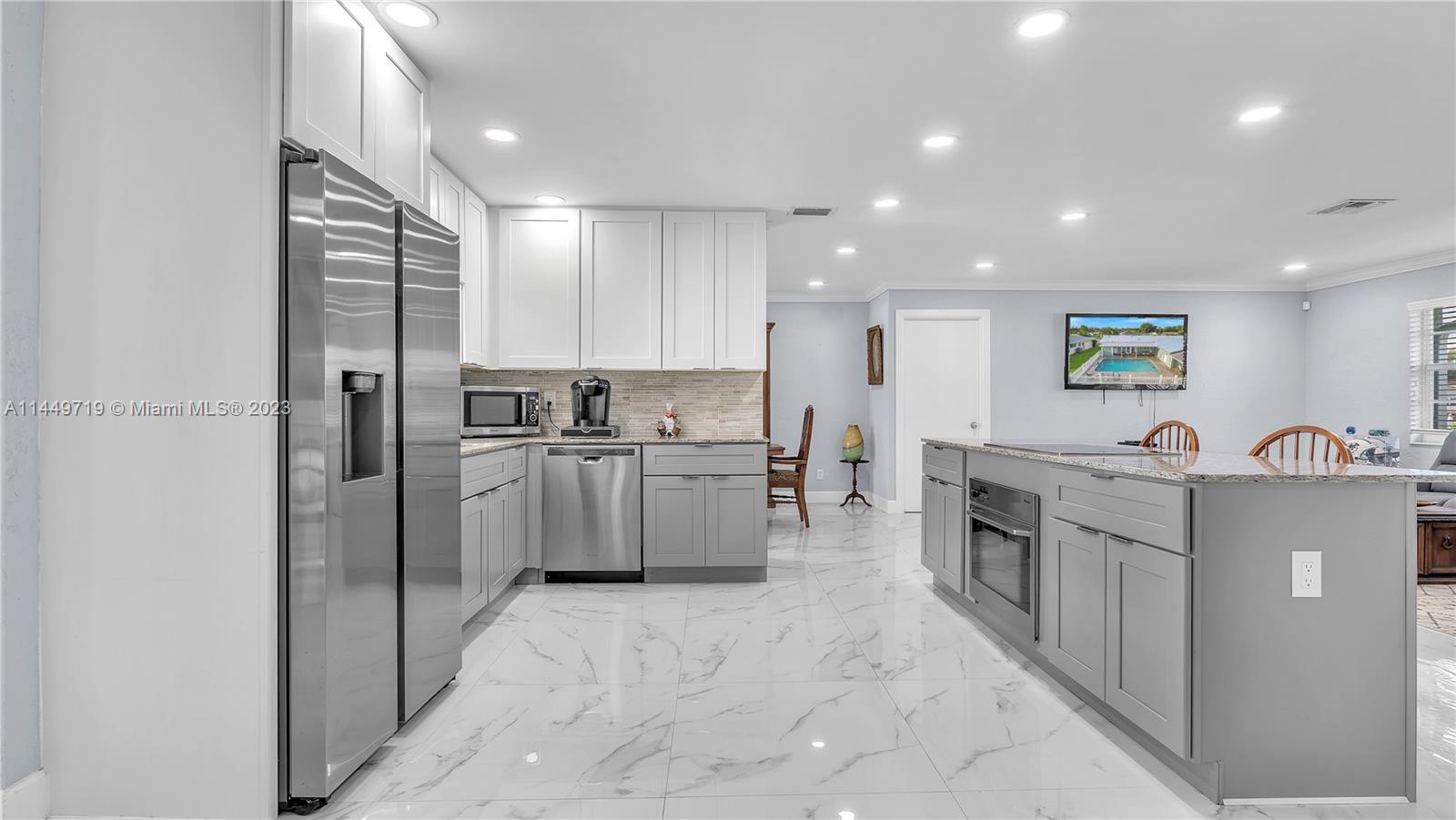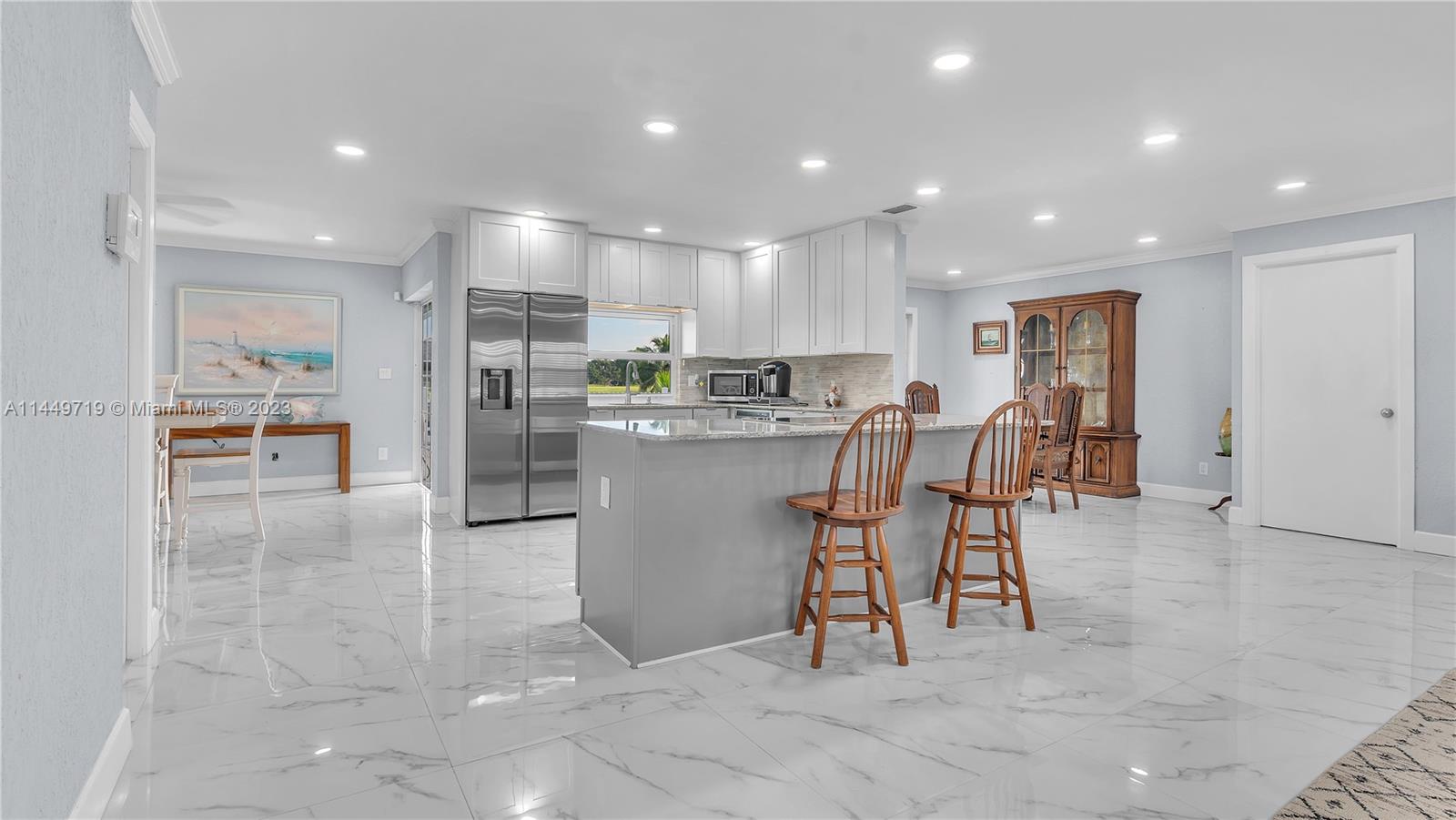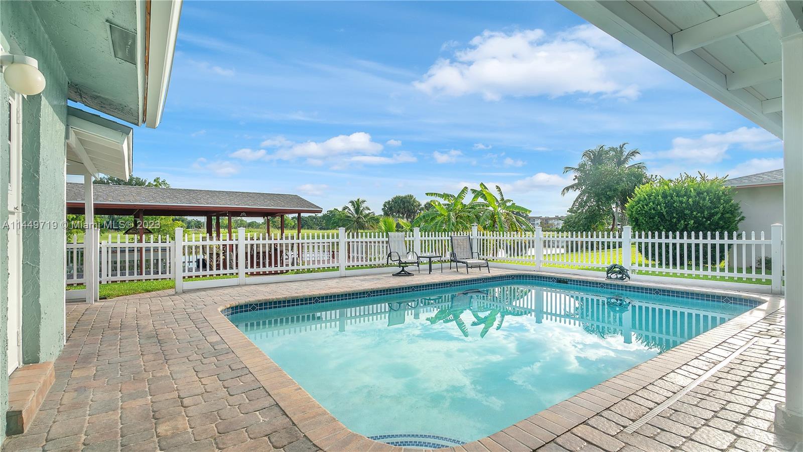 THESE VIEWS!! Enjoy your morning coffee or gather for Happy Hour with your favorite people at your private Sports Bar with a pool table. This 3 bedroom, 2 cabana bathroom pool home is overlooking the Davie Golf Club. Situated in the Arrowhead community with NO HOA and assigned A-rated schools. Walk in to an OPEN and SPLIT floor plan with a recently REMODELED KITCHEN and NEWER SS APPLIANCES and COOKING ISLAND. New 32" ceramic tile floor throughout the main areas and vinyl in the master bedroom. This home features a BRAND NEW METAL ROOF and GUTTERS. All windows are IMPACT and the Seawall redone. 4-point/WindMit reports from 6/23 available for your convenience. AC 2021, electric panel 2022, Perfect location close to Shopping, Universities, Highways and Parks. Boat parking allowed on property.