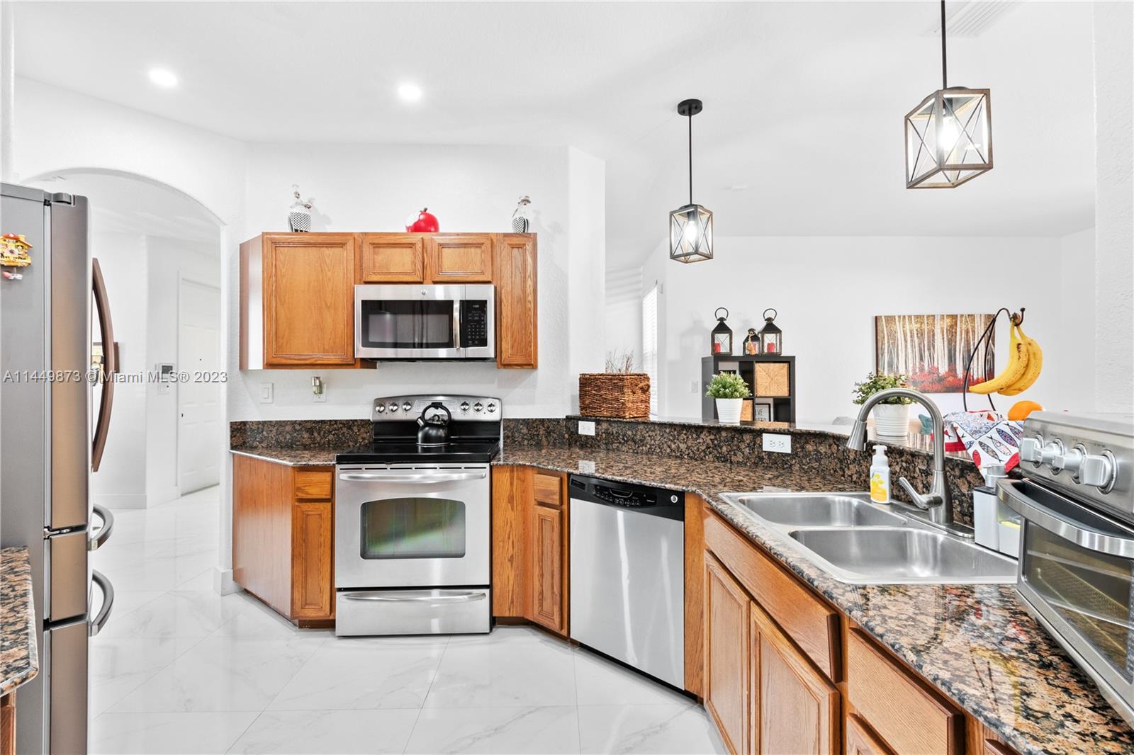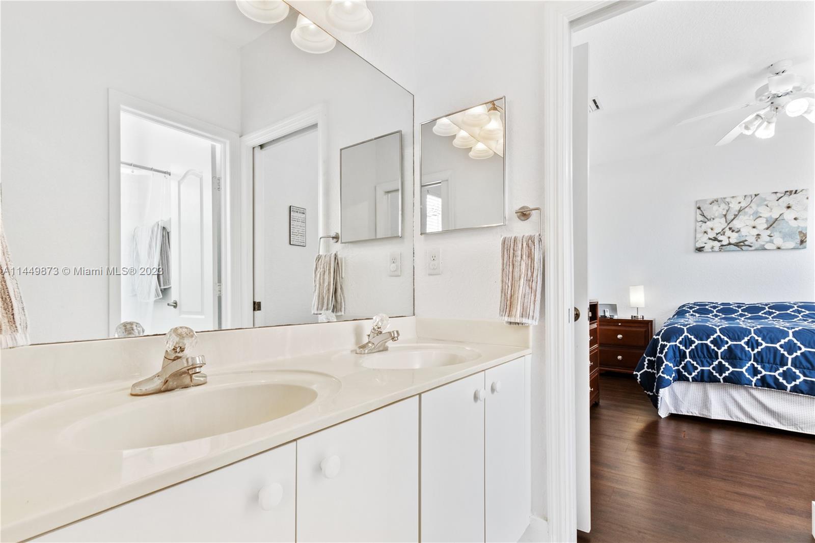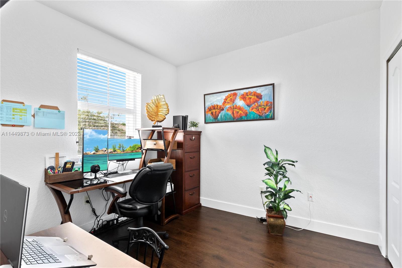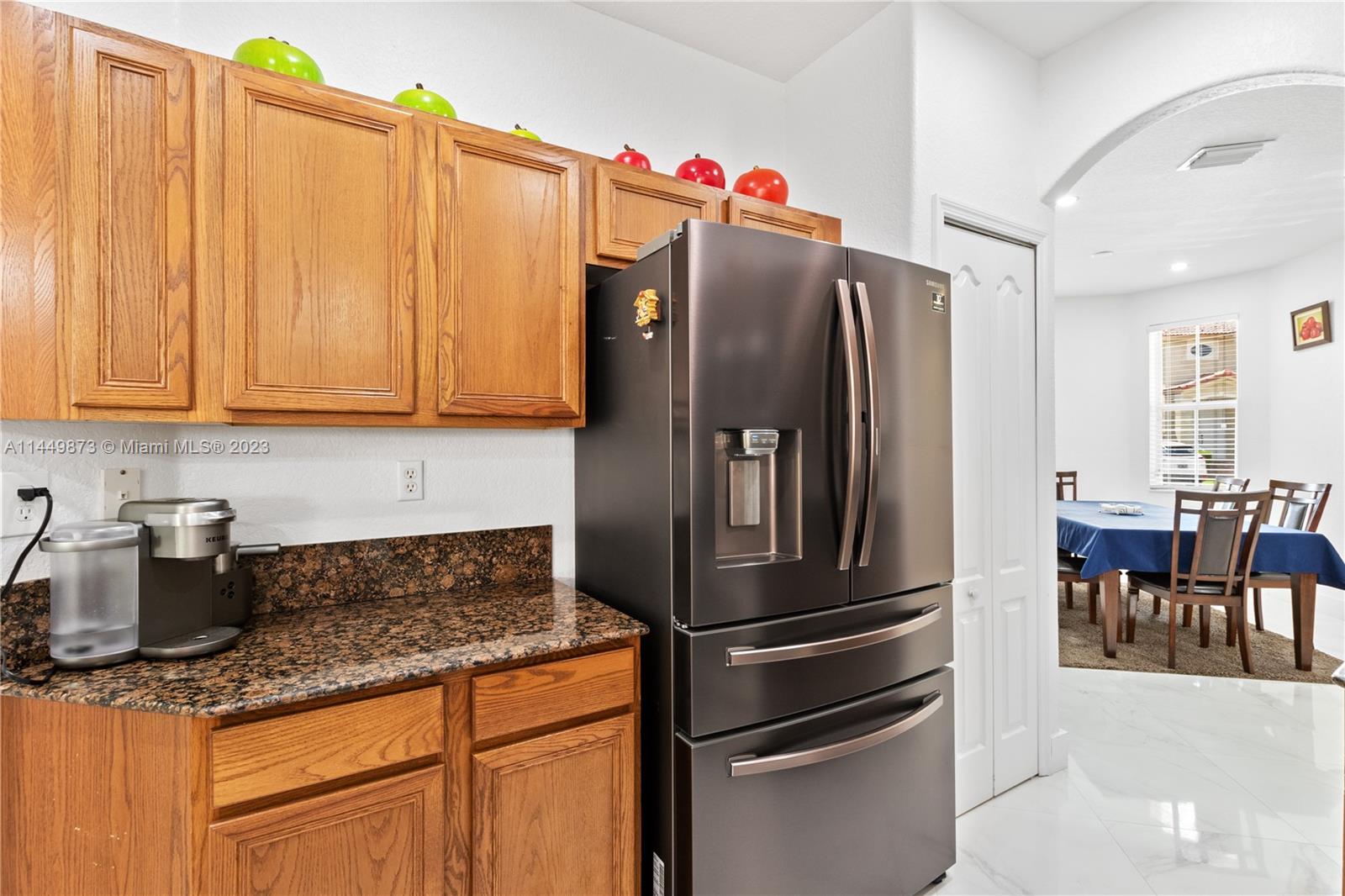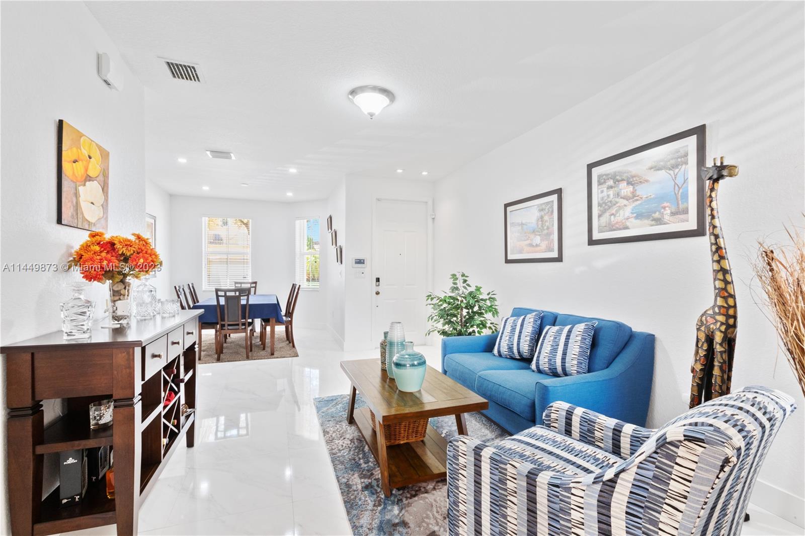 This modern townhome offers 4 bedrooms, 3 baths, with a convenient 1 bedroom and bath on the first floor. The property features elegant porcelanato flooring throughout and a beautiful kitchen with granite counters and a new refrigerator, Comfortable bedrooms, built-in closets for ample storage, laundry room, 2 car garage, patio, accordion shutters. This community offers a range of amenities, including a pool and gym. Plus, it's located in a top-rated school district, making it ideal for families.