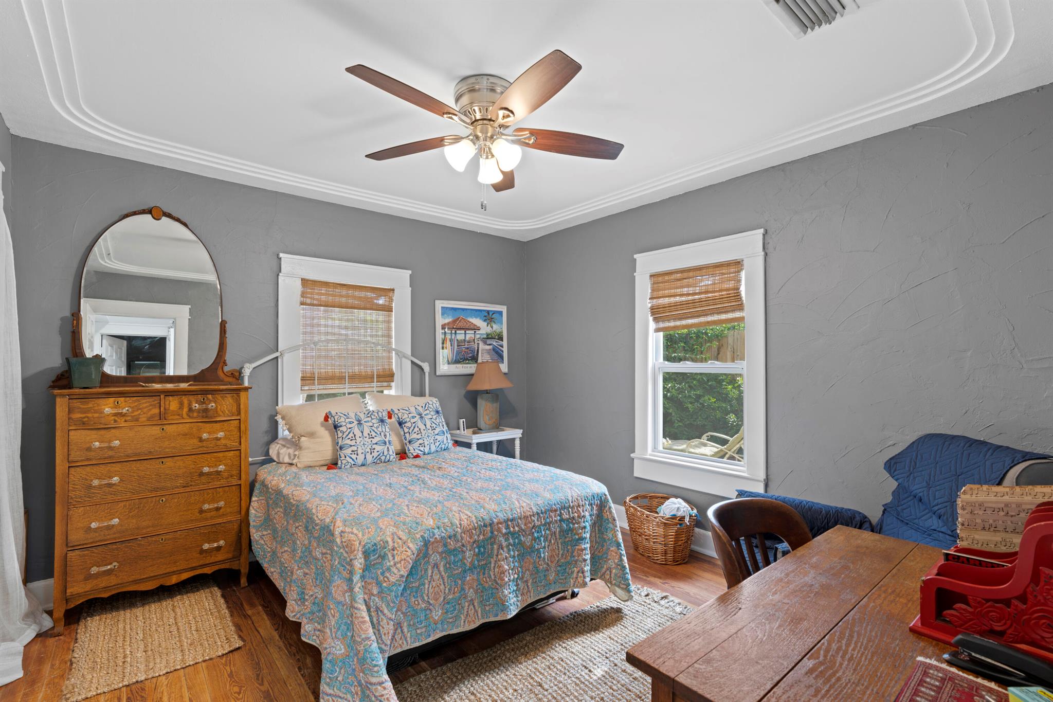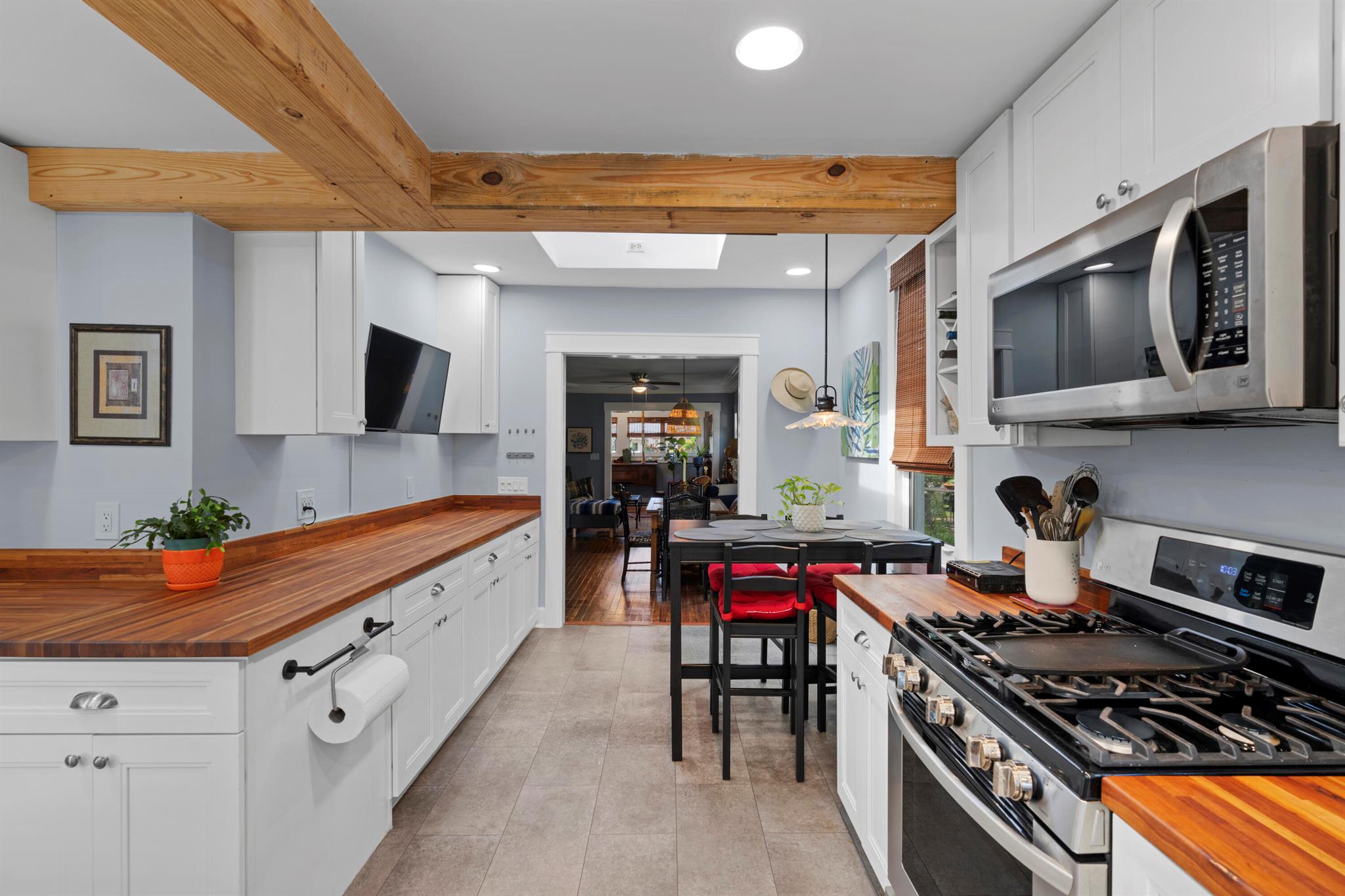 Charming 1925 spanish mission style home in Grandview Heights! This gorgeous residence offers 2 bedrooms, 1 bathroom with a fireplace, partial impact windows, original hardwood floors, and a custom kitchen & bathroom with butcher block countertops. The kitchen boasts 2 large skylights, ceiling wood beams, & stainless steel appliances. HVAC, appliances, and water heater replaced in 2020. Architectural cement over lath construction. Highly desirable location across from Armory Art Center and in walking distance to Grandview Public, Howard Park, Rosemary Square, & more! Vacant lot next door does not convey.