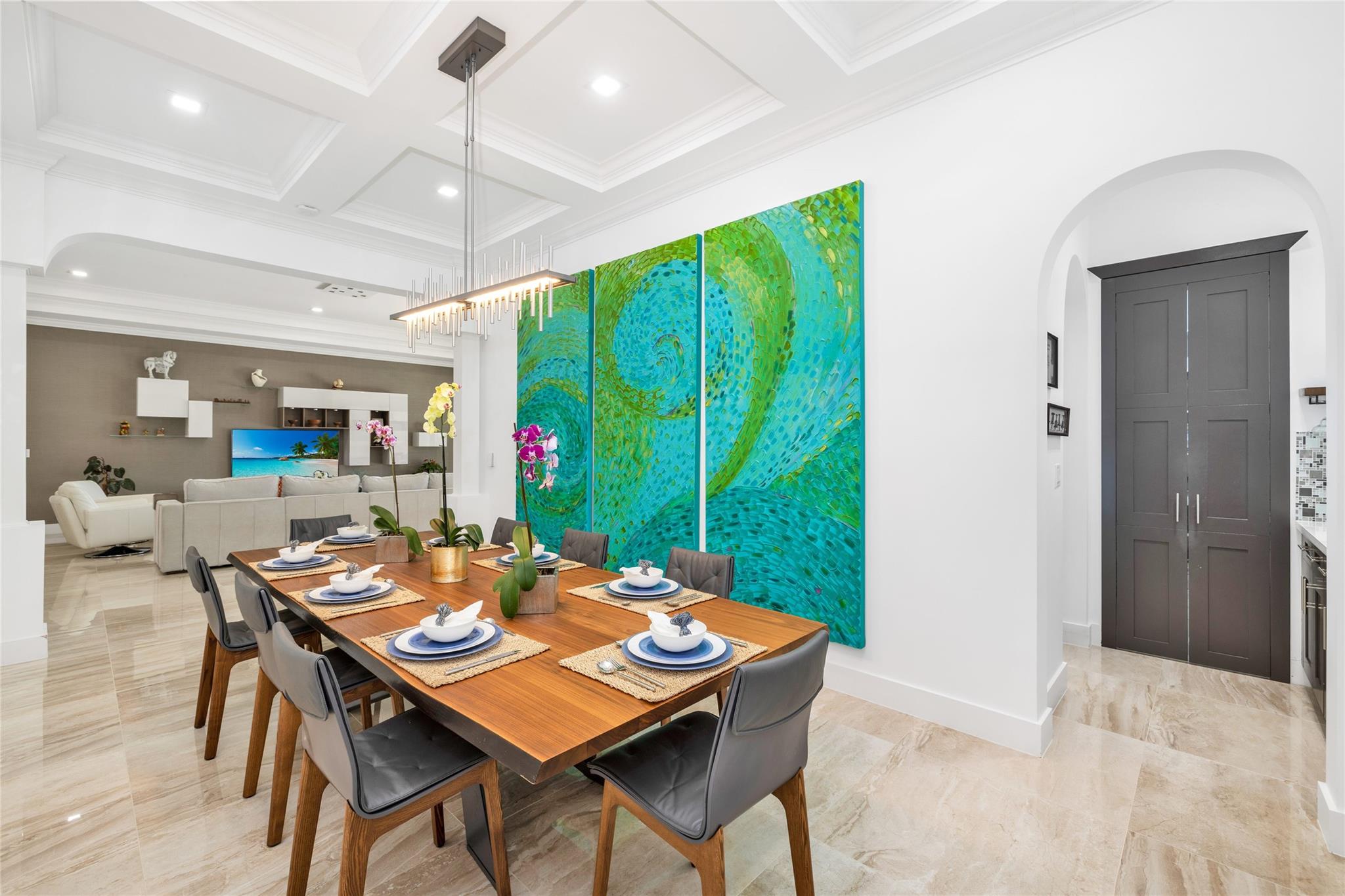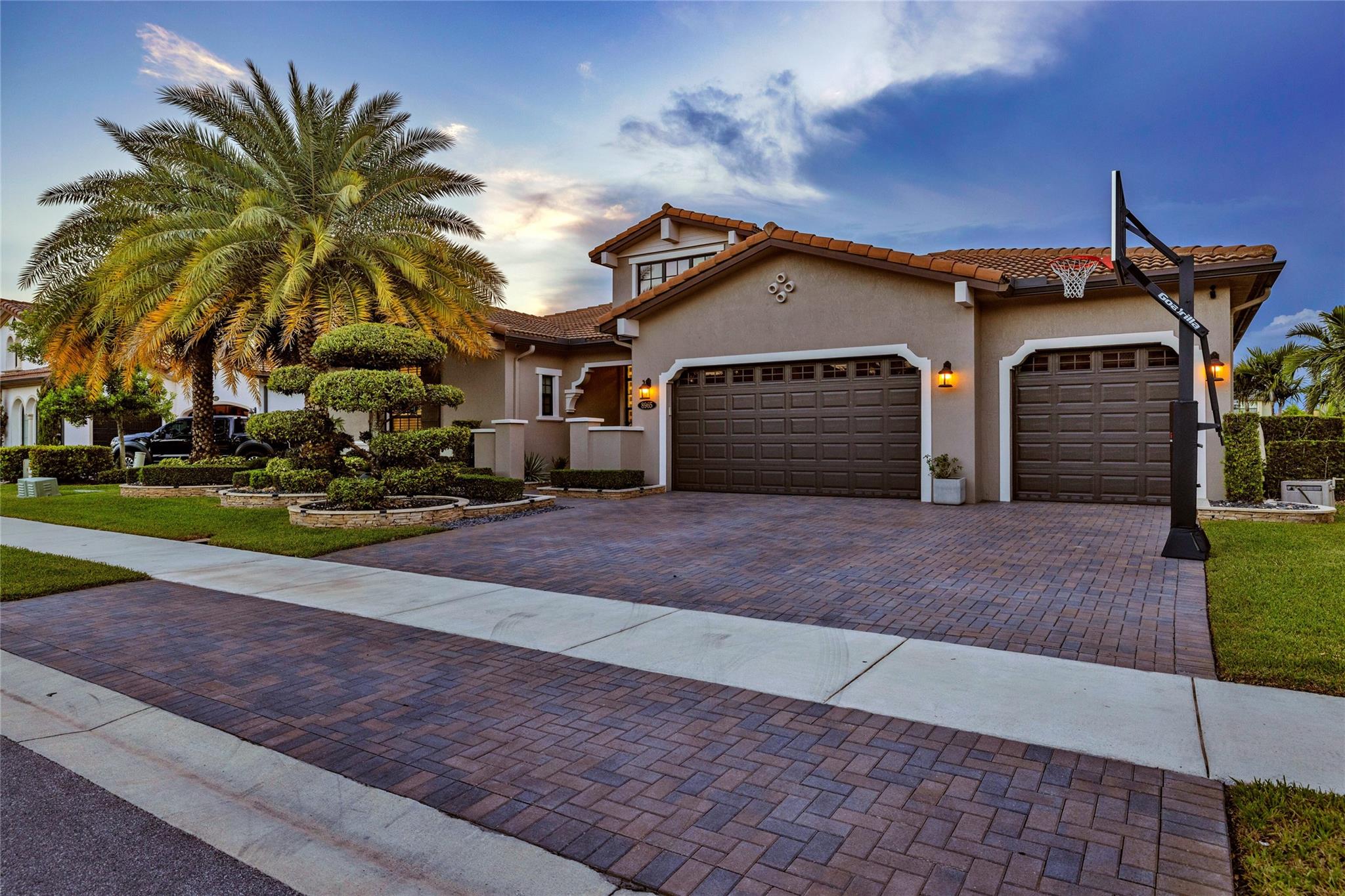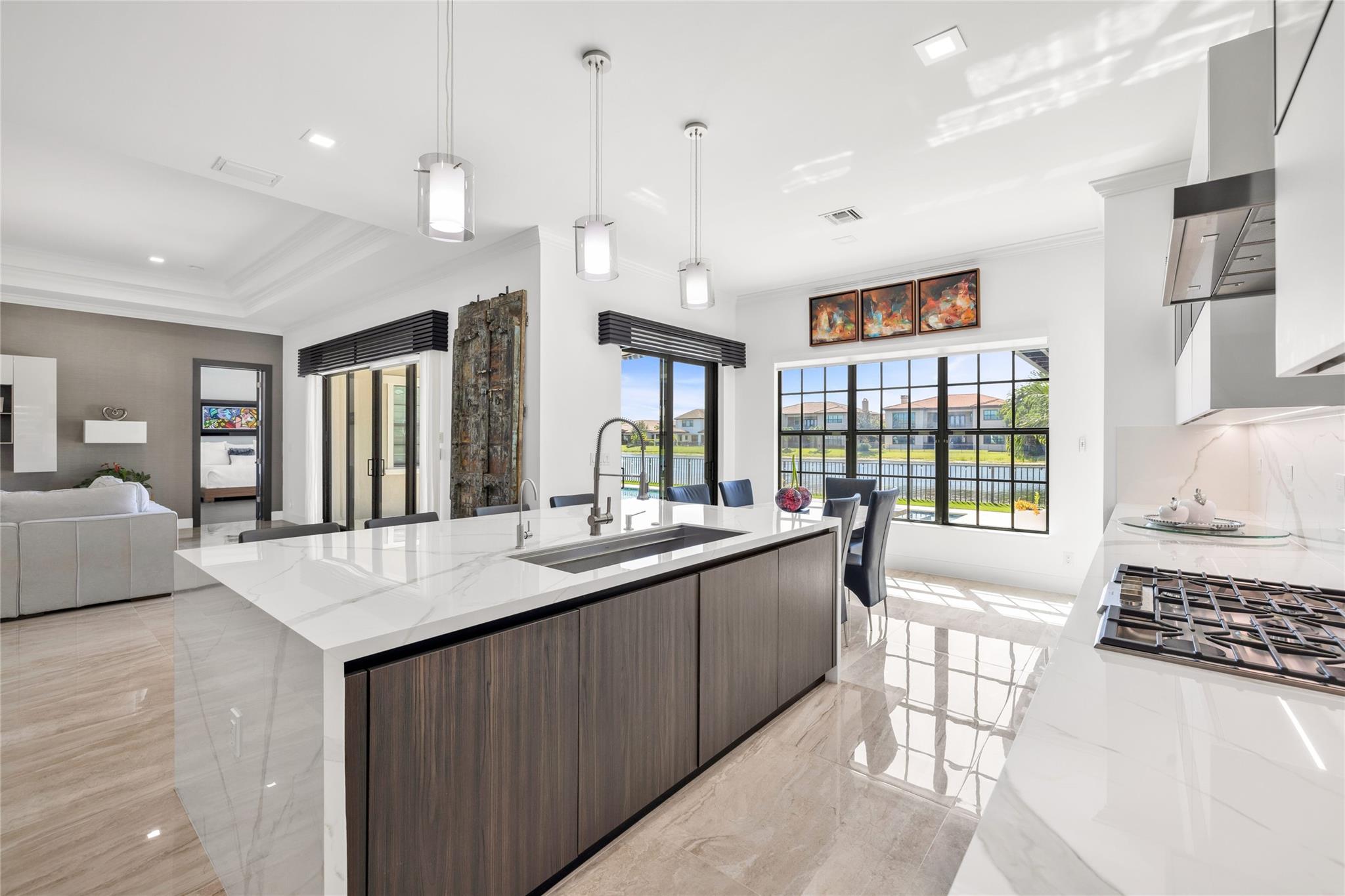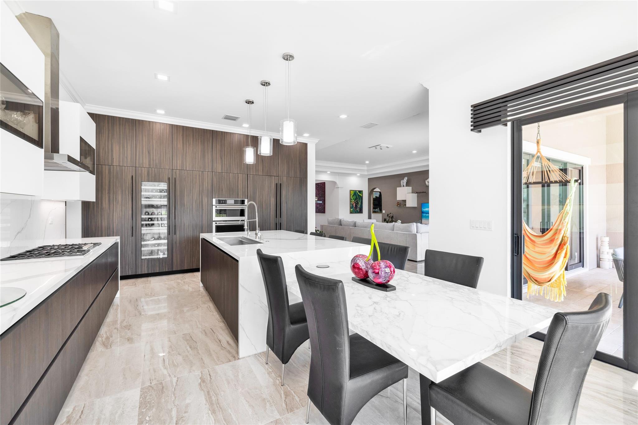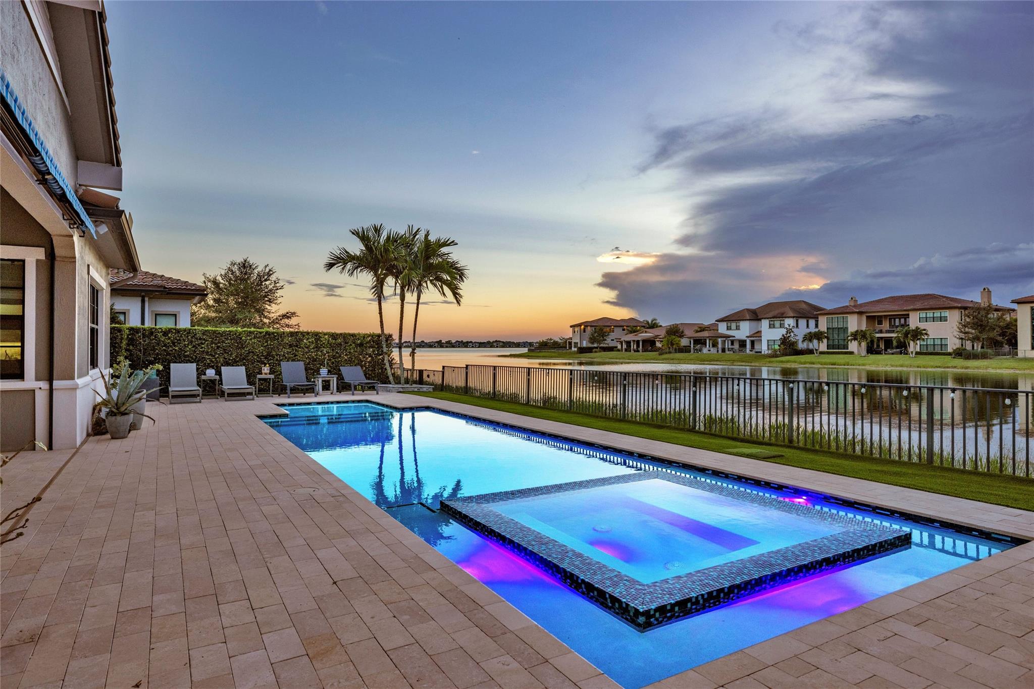 Sneak In With Me! Nestled within the desirable Community of Watercrest at Parkland, this one-story lakefront home is the epitome of relaxed elegance and waterfront living. Upon entering, you are immediately captivated by the open-concept design, which seamlessly connects the living, dining, and kitchen areas. The well-appointed kitchen is a chef's dream, equipped with modern appliances, and ample cabinet space. A large center island with bar seating encourages casual dining and conversation, all while enjoying the panoramic lake. The backyard is your own private paradise with a beautiful pool and summer kitchen designed for both relaxation and recreation. Other offerings include:California closets in every room, solar panels, high ceilings, custom landscaping, wired for electric charging.