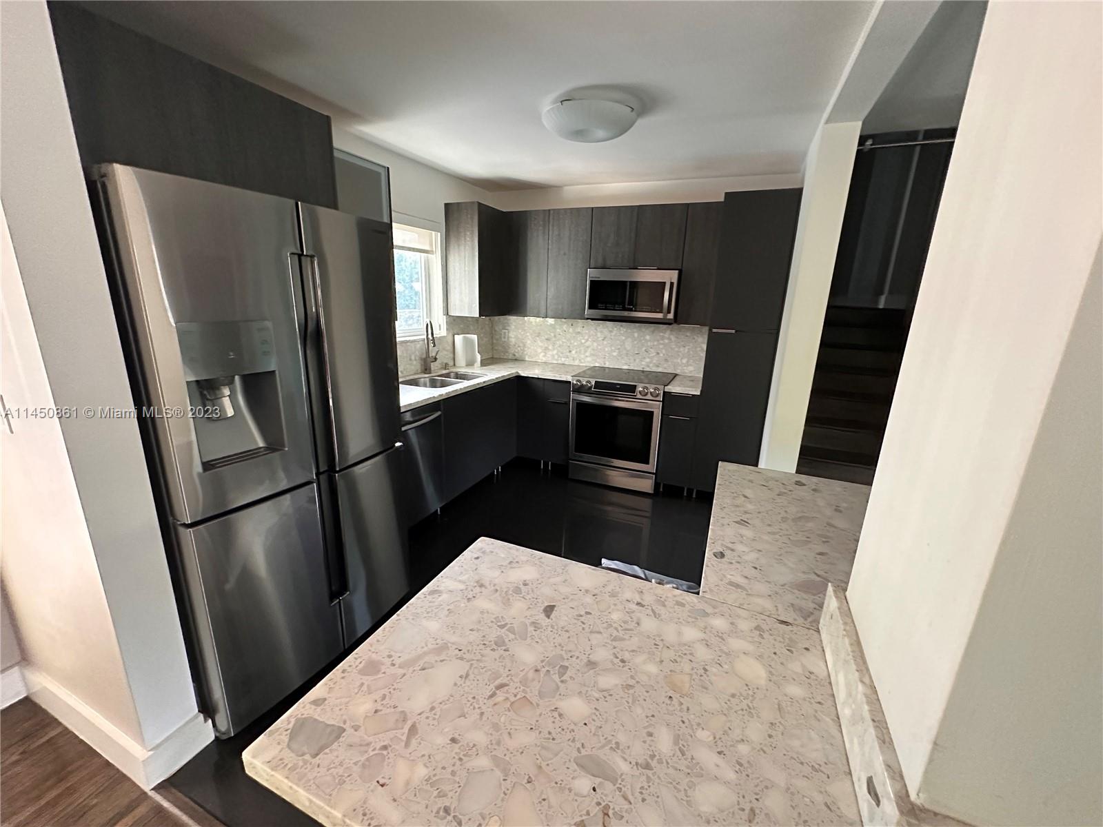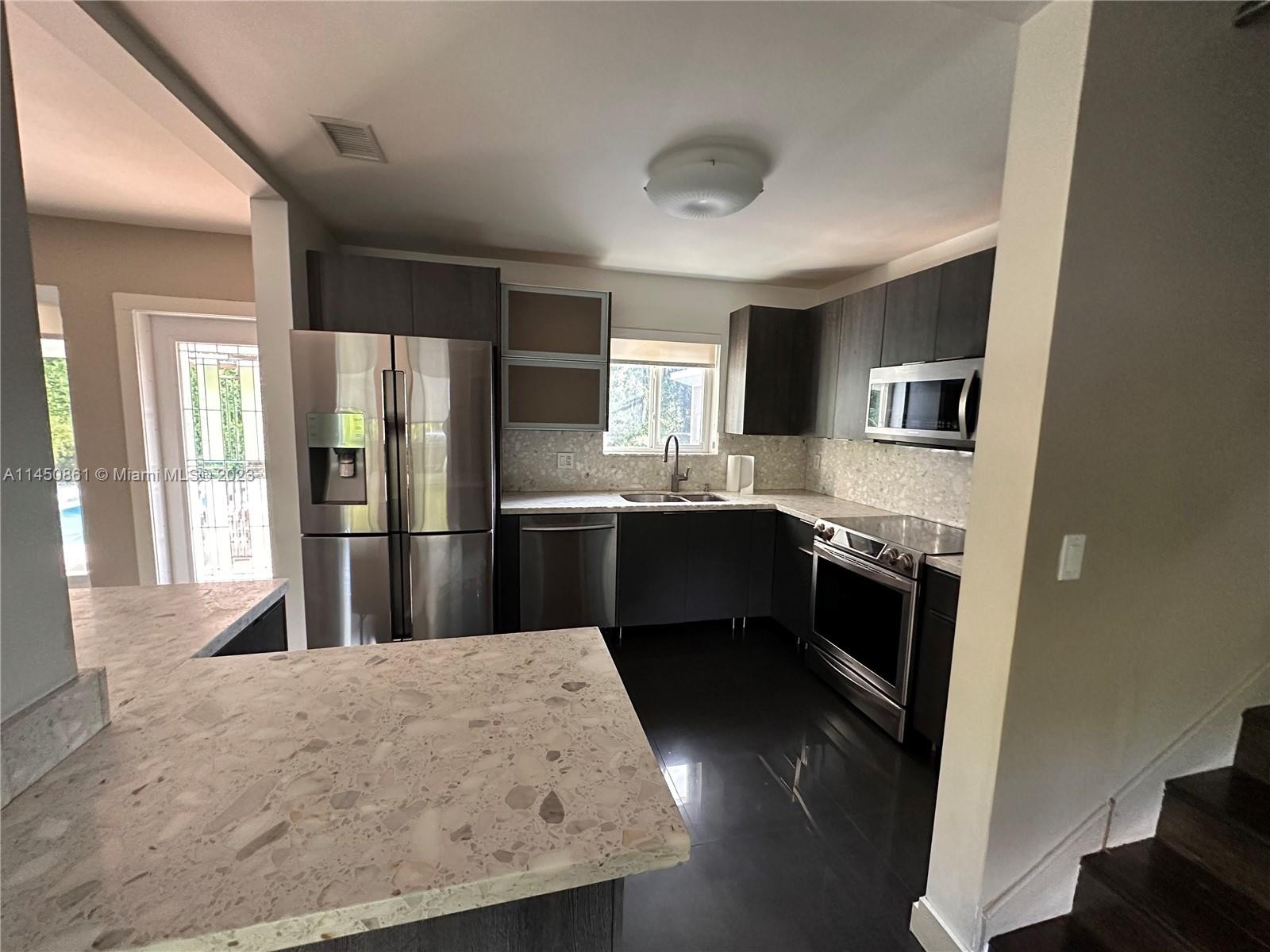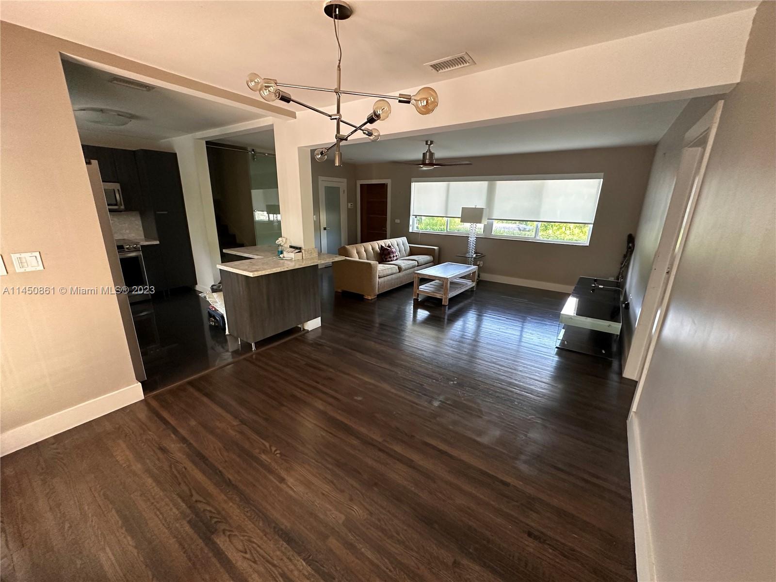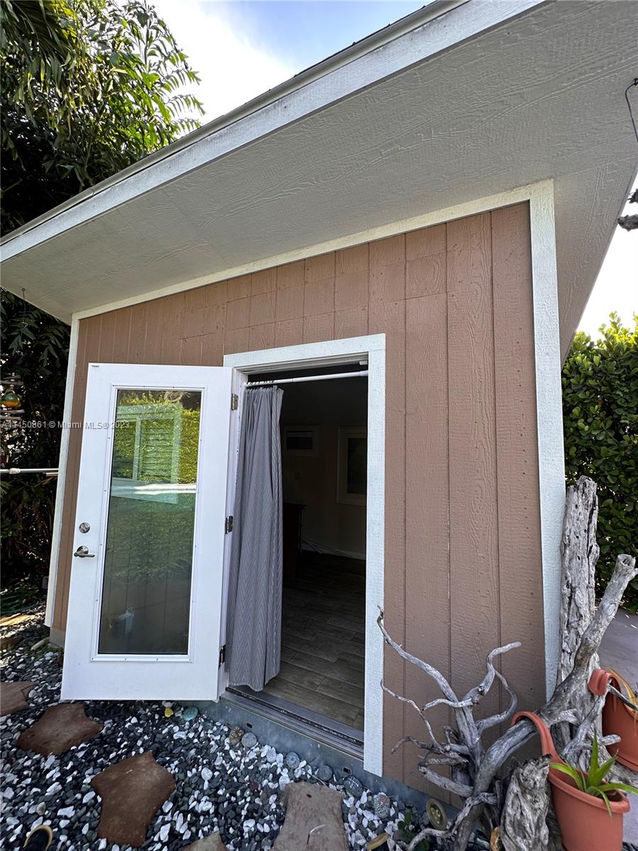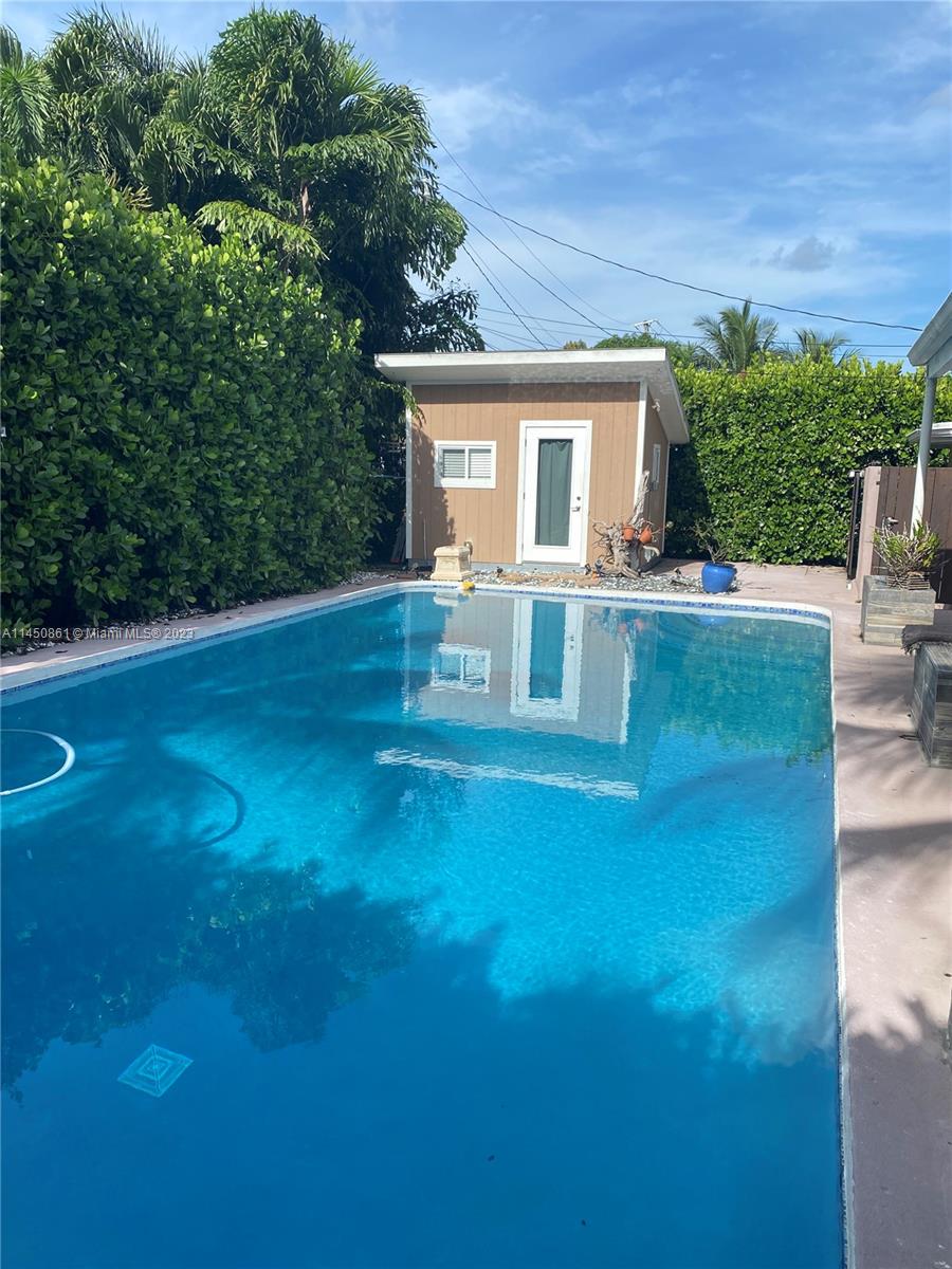 Home has undergone extensive renovations to give it a contemporary ambiance. The master bedroom has been converted into a luxurious master suite. The backyard serves as a secluded paradise, where you'll find yourself wanting to spend all your leisure hours. Abundant green hedges surround the property, and there is a separate she shed located at the back. This versatile space can be utilized as an exercise room, office, craft room, man cave, and many other possibilities. Additionally, all windows and doors are hurricane impact resistant. The living room is filled with ample natural light and exudes a sense of openness. There is a camera system, alarm system, and special variance that allows one recreation vehicle. INLAW QUARTERS is a separate 1/1 on property to the side very private.