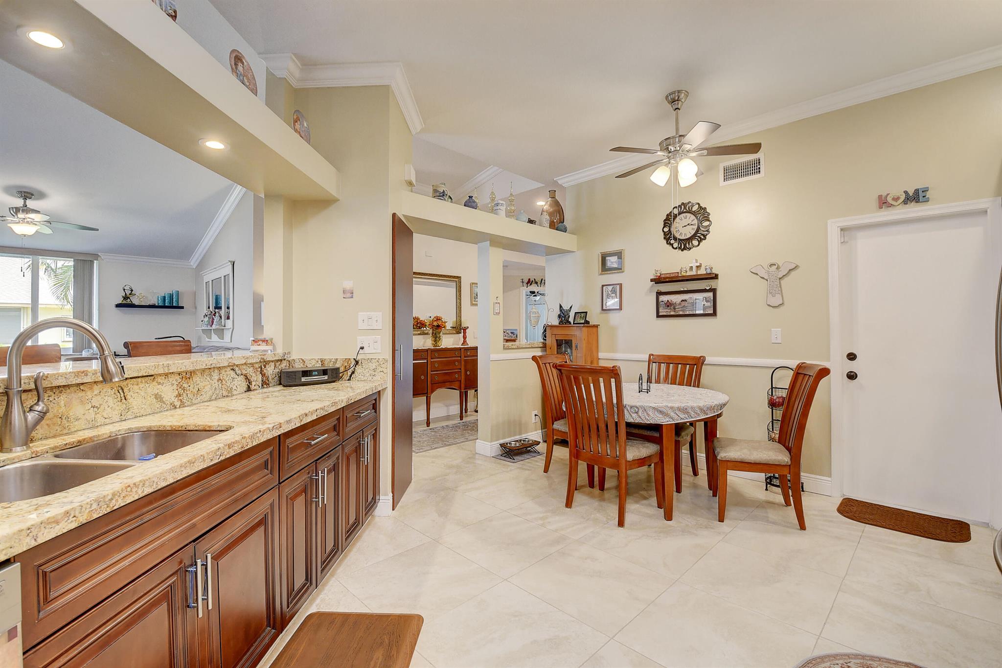 LARGEST SINGLE STORY VILLA/TOWNHOME IN BOCA 3 BEDROOM/2BATH WITH HUGE SCREENED PATIO AND GARAGE REMODELED. ALL AGES COMMUNITY and PET FRIENDLY.Excellent schools and shopping Starbucks and Publix Tile floors throughout main areas. Wood cabinets and granite counters throughout. Stainless Steel appliances in Kitchen. Crown molding and tons of light. Close to community pool and clubhouse/gym on a quiet street. surrounded by 4 lakes ,pickleball, wide jog/bike paths and greenspace. Parking for 3 cars with garage.Super clean and move in ready. Custom pantry in kitchen. Custom shelves in garage. Custom builtins in all closets!!!