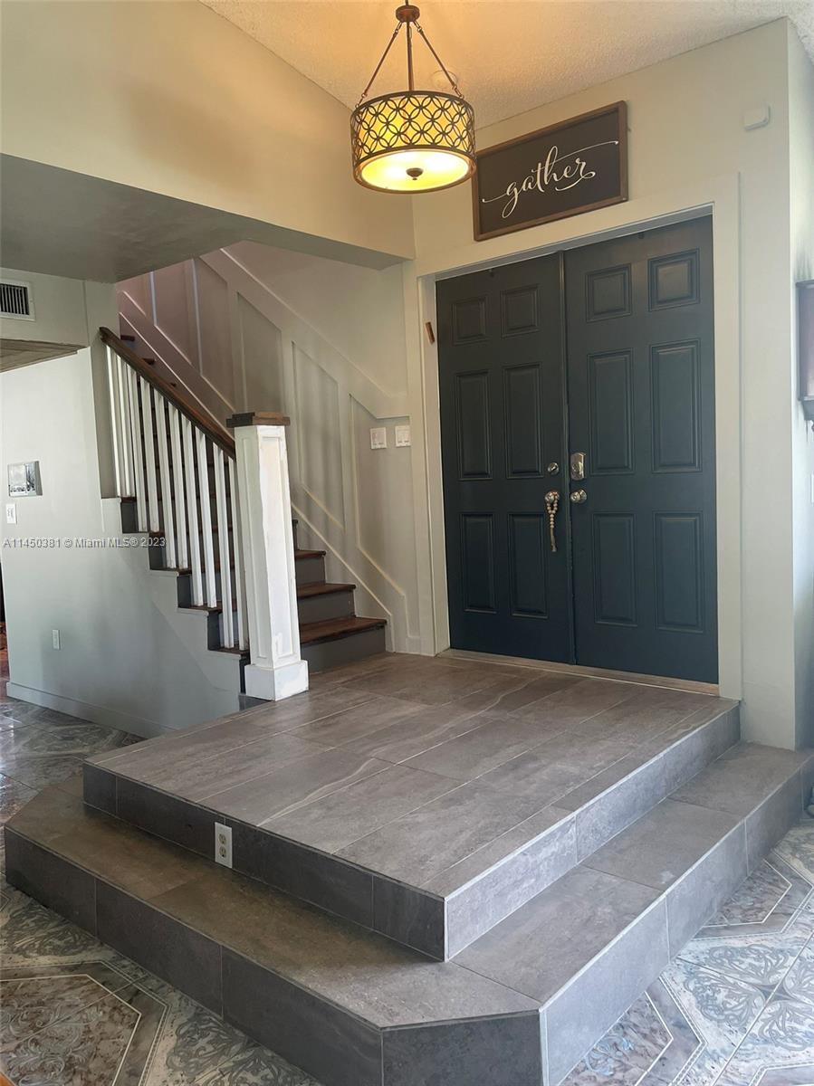 Majestic, spacious 2-story home on a corner lot in a cul-de-sac awaits you! Updated kitchen features concrete counters, stainless appliances, and a pantry. Beautiful artisan tile throughout main level and second floor bedrooms. Upper level has master bedroom with attached full bath and a walk-in closet. There are 2 additional bedrooms, a hallway full bath, and a linen closet also on the upper floor. Lower level features an oversized family room, storage, half bath, large family and living room. The entire house has hurricane doors and windows. Conveniently located a short distance to shopping, schools and major highways. Don’t miss this beautiful home!