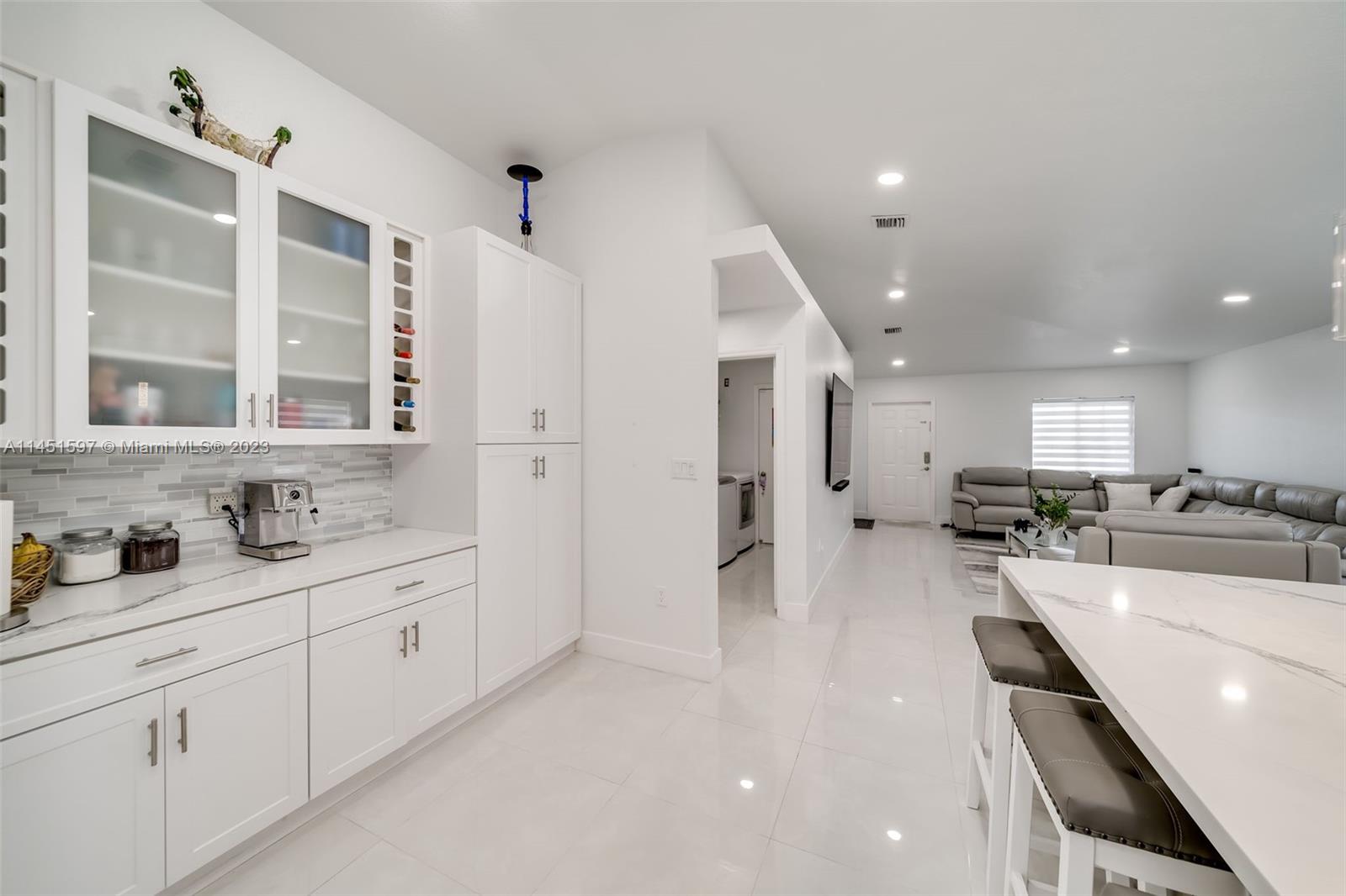 Welcome to this gorgeous fully remodeled gem in highly sought after Silver Falls Miramar. This spacious open concept layout takes your breath away upon entry, as you walk through all the upgrades waiting for you. The new custom-made kitchen comes complete with island dripped in cascading quartz, all stainless-steel appliances and elegant pendant lighting to illuminate your guests smiles. LED recess lighting accentuates every room in the home, and the porcelain floors give the home a consistent and classy flow throughout. Both bathrooms include stand up showers, floating vanities and glass enclosures. The screened in patio looks out to the lake perfect for morning coffee or a cocktail. Separate laundry closet, 2 car garage, zebra shades, gorgeous fans, this is a must see in person home.
