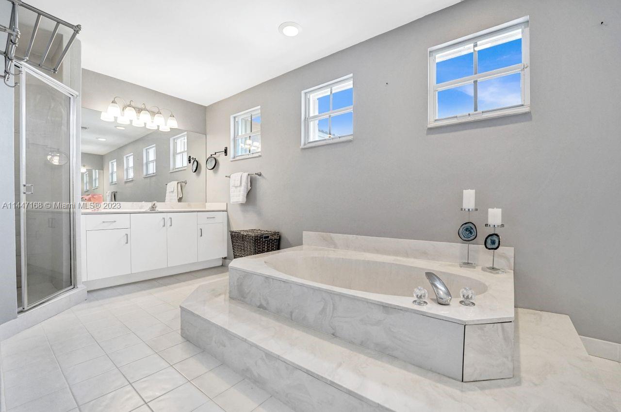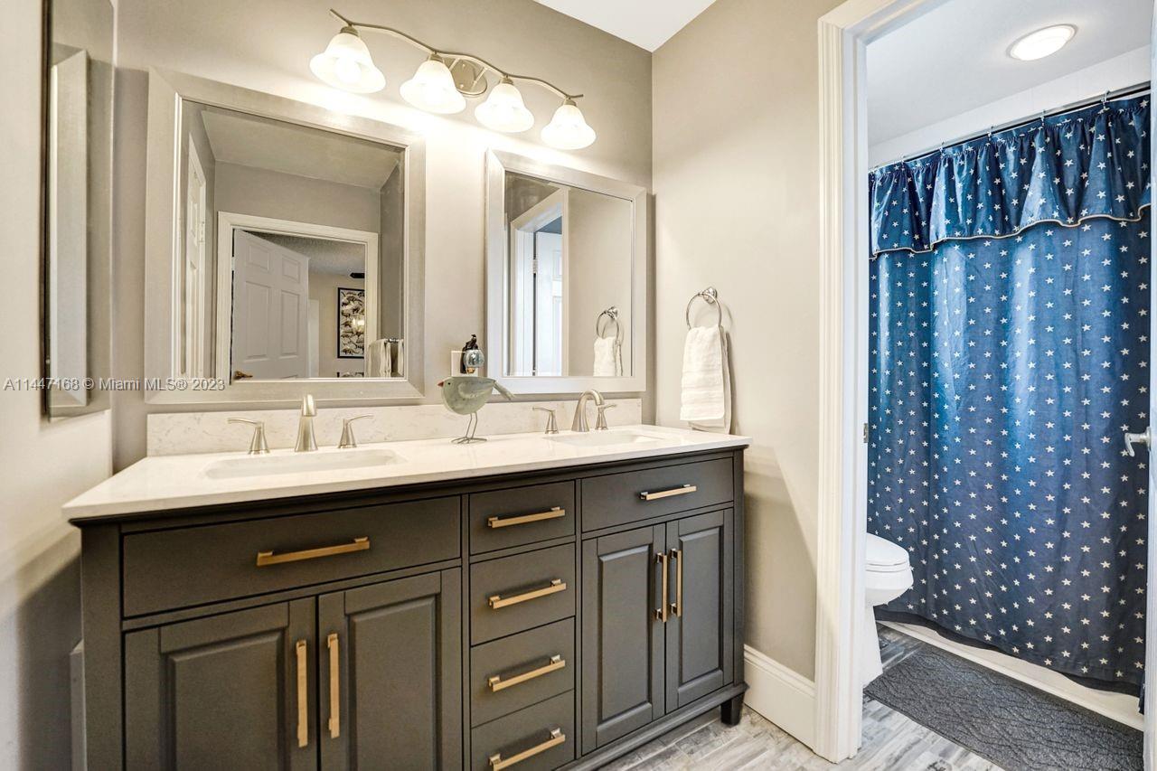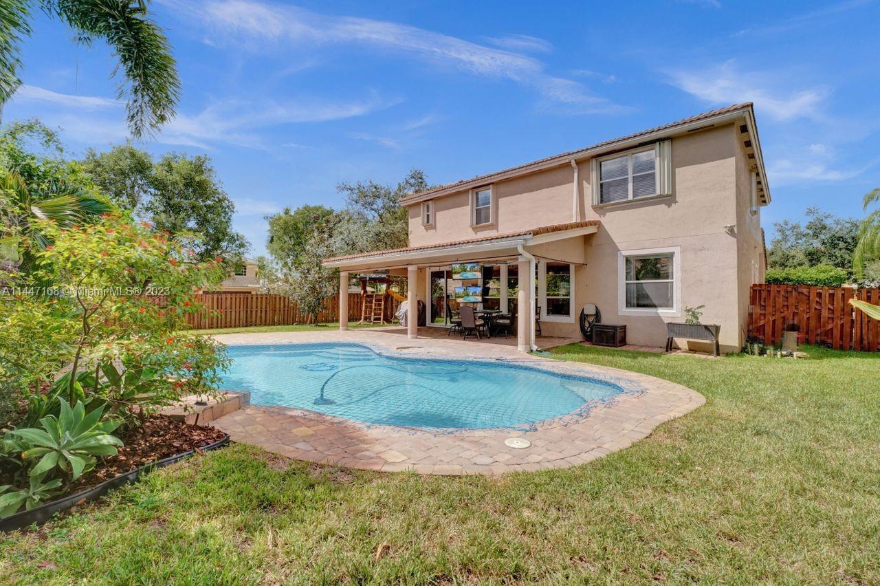 Corner lot paradise! Welcome home to this 2-story, 4BR/3BA pool home. Plenty of room for kids & pets to play. Renovated kitchen w/2022 appliances, quartz counters, new lights, white cabinets & prep island. Room to entertain indoor or outdoor. Step inside: vaulted ceilings, large formal dining area & living area. Natural gas stove, grill, & water heater. 2022 AC. Large master suite w/dual sinks, roman tub, separate shower & vanity area. Jack & Jill bath new dual sink vanity & lighting with tub/shower. 1st floor guest suite w/new vanity & lighting. Laundry room w/new cabinets, sink & washer/dryer. Outdoor features: fenced-in yard, fire pit area, covered porch w/fan & TV hookup. Pool has new pump, motor, vacuum & safety net. Gated community. Amenities incl. pool, clubhouse & tennis courts.