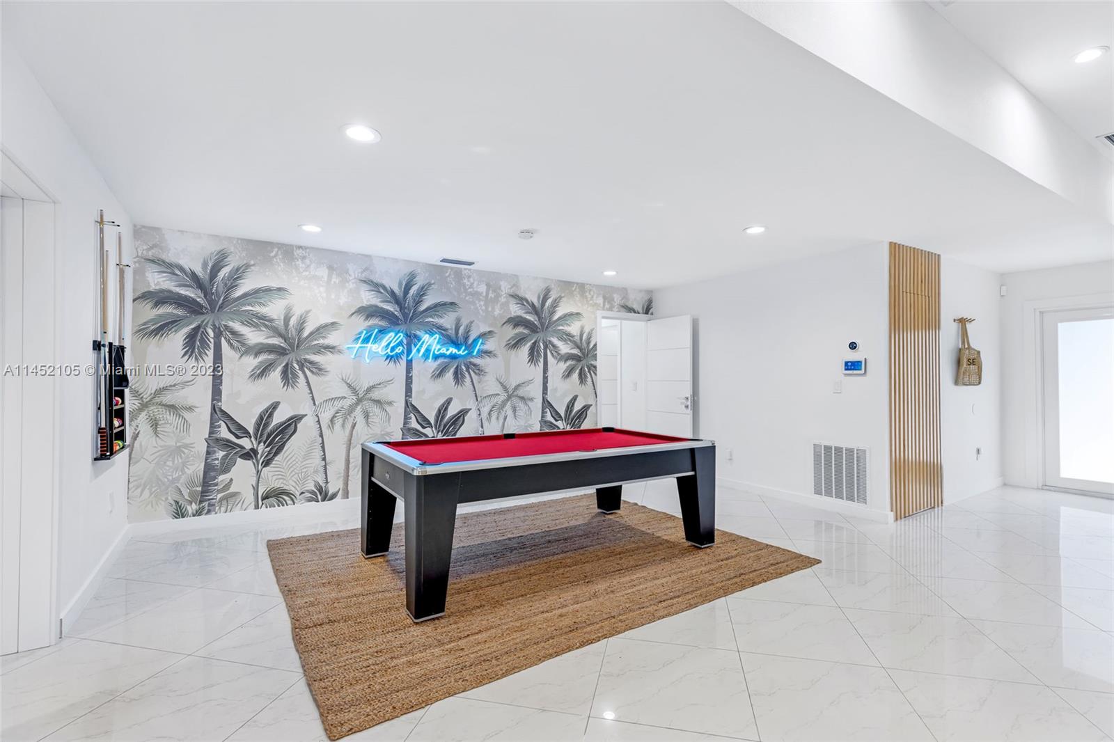 This modern home sits on a spacious lot (10,850 sq ft) in a picturesque Miami neighborhood. The exterior is characterized by clean lines, a contemporary design, and lush tropical landscaping. Upon entering the house, you step into a welcoming foyer with ample natural light. The kitchen is a chef's dream, with high-end stainless steel appliances, a large island with a built-in cooktop, and quartz countertops. It features custom cabinetry with plenty of storage space, a walk-in pantry, and a breakfast bar. Centrally located, this modern-contemporary retreat resides in the heart of Miami, minutes from Bal Harbour Shops, Sunny Isles Beach, and Aventura. After a morning play of mini soccer or golf, cool off in the pool. Currently, it is tenant-occupied until January 31, 2024