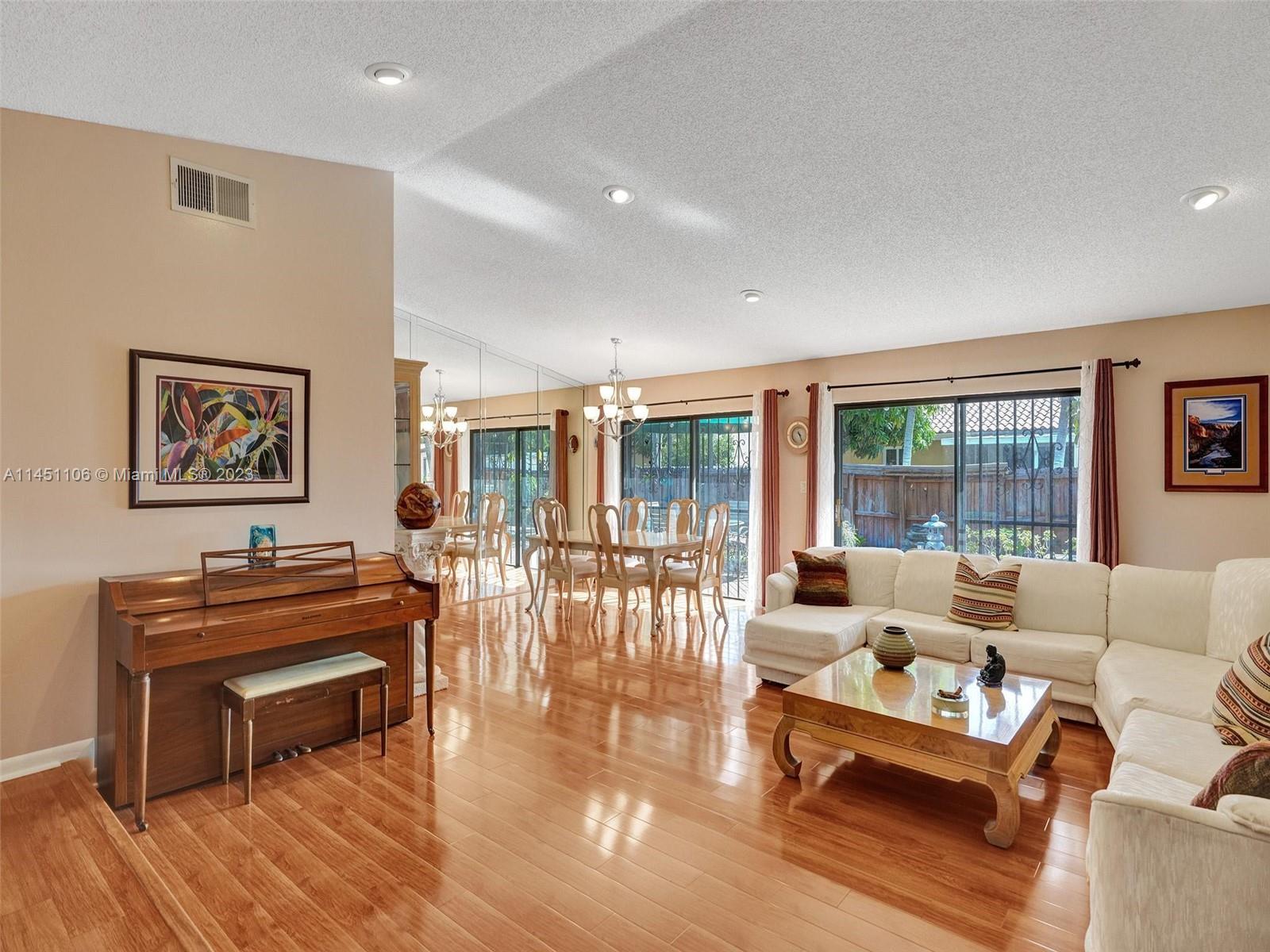 Original homeowners lovingly maintained and updated this 4-bedroom, 2-bathroom plus family room residence nestled in the charming community of Country Lake Manors. The spacious kitchen boasts elegant granite countertops, rich cherry wood cabinetry, stainless steel appliances, countertop seating, while the generously proportioned living, dining and entry areas showcase flawless maple laminate flooring. Situated on a spacious lot, the backyard is designed to provide the perfect setting for both entertaining and relaxation. Country Lake Manors offers quick access to major transportation arteries such as the Florida Turnpike and the Palmetto Expressway. Nearby, you'll find a plethora of shopping centers, including Target and Walmart, as well as the community’s stunning lake and beautiful park.