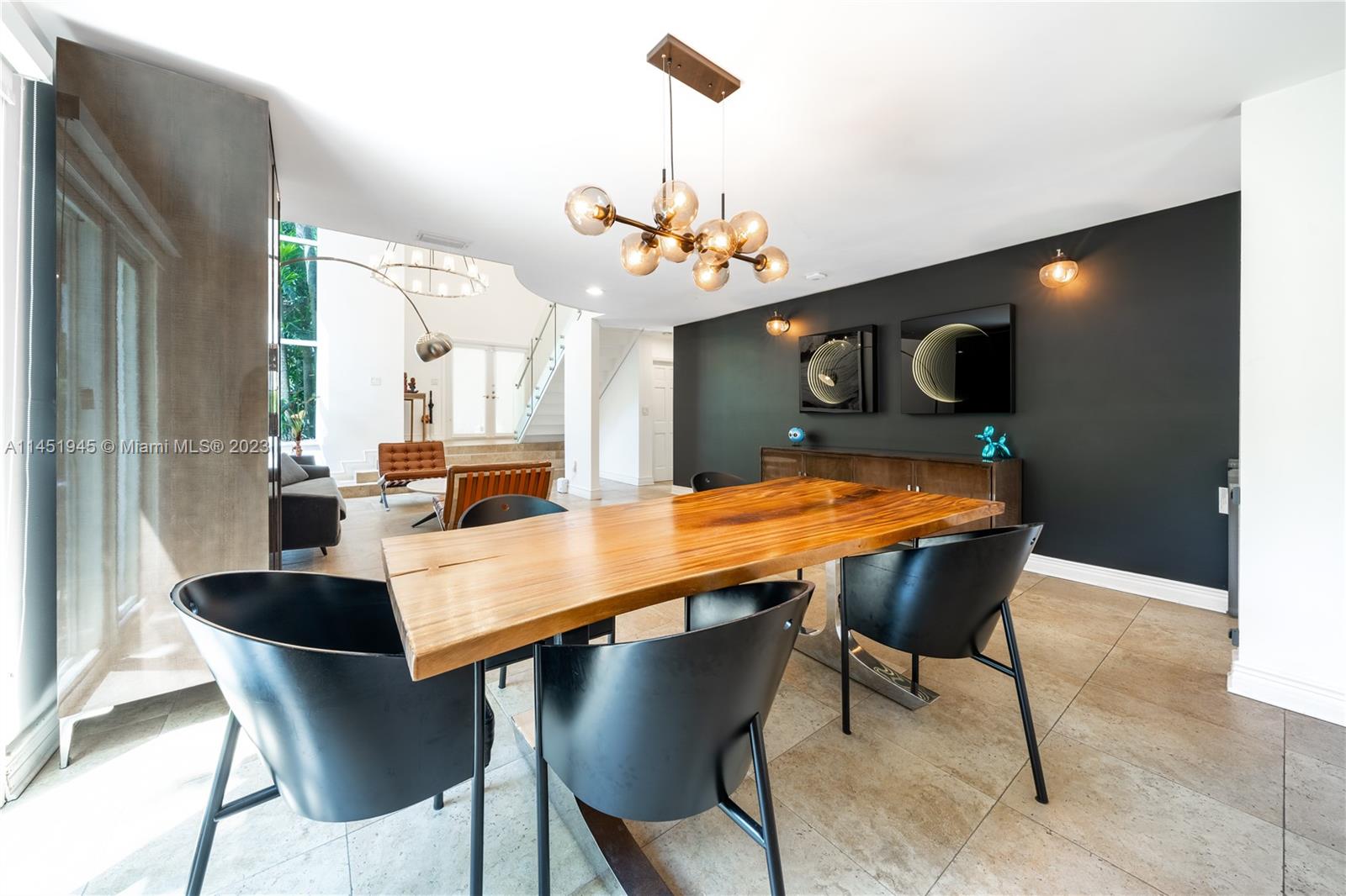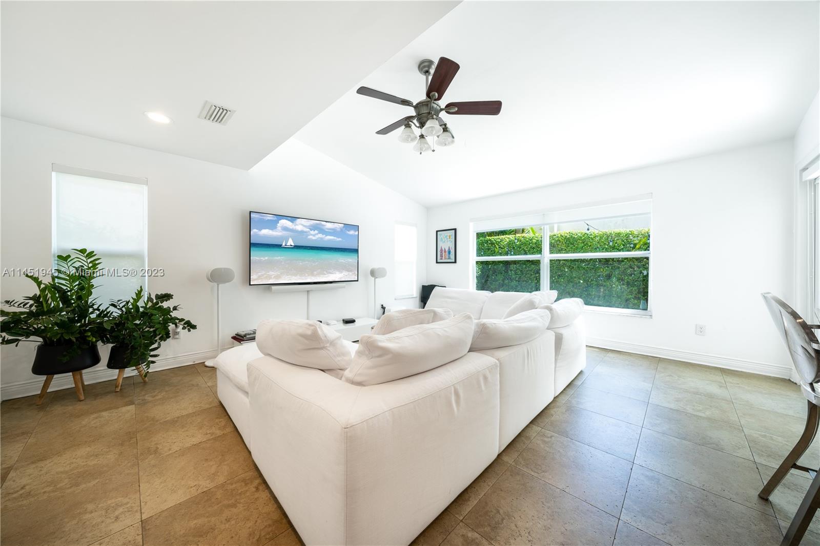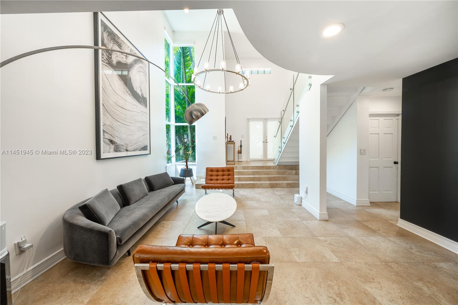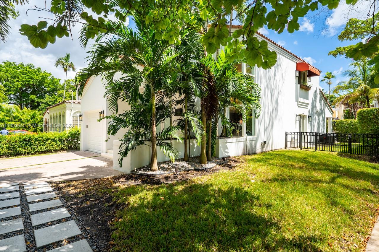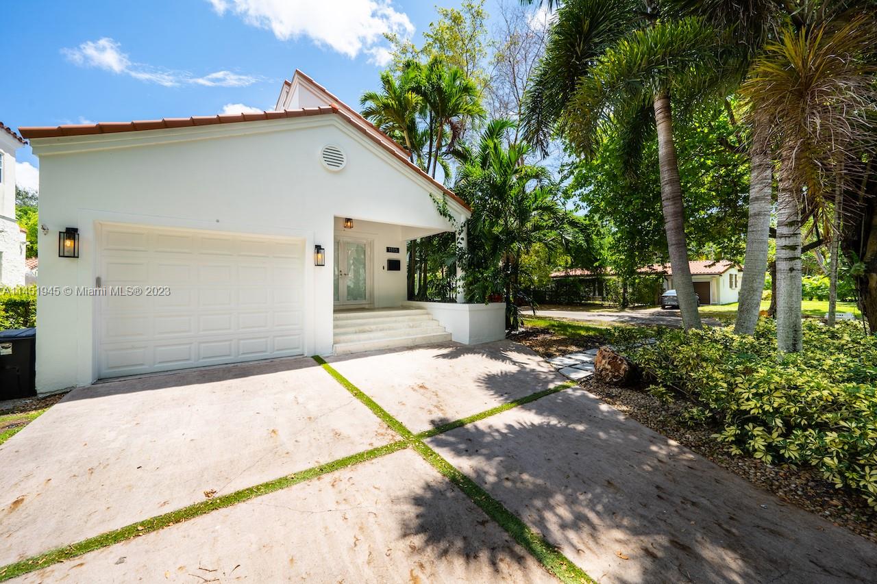 Contemporary two-story corner lot residence graces the serene tree-lined Capri Street in North Gables. Built in 1989 this renovated home boasts impact glass windows and doors throughout & newer roof.Three bedrooms including 1 bedroom on the lower level each offer beautifully renovated en-suite bathrooms. As you step inside, you'll be greeted by a spacious living and dining area with soaring ceilings at the entrance, adding an intriguing architectural flair. The expansive kitchen, complete with a breakfast bar, seamlessly connects to the family room, creating a cozy and functional space that opens to the charming covered patio overlooking the backyard that brims with untapped potential. Walk to Granada Golf Course and enjoy the charming Mediterranean walkable City of Downtown CoralGables.