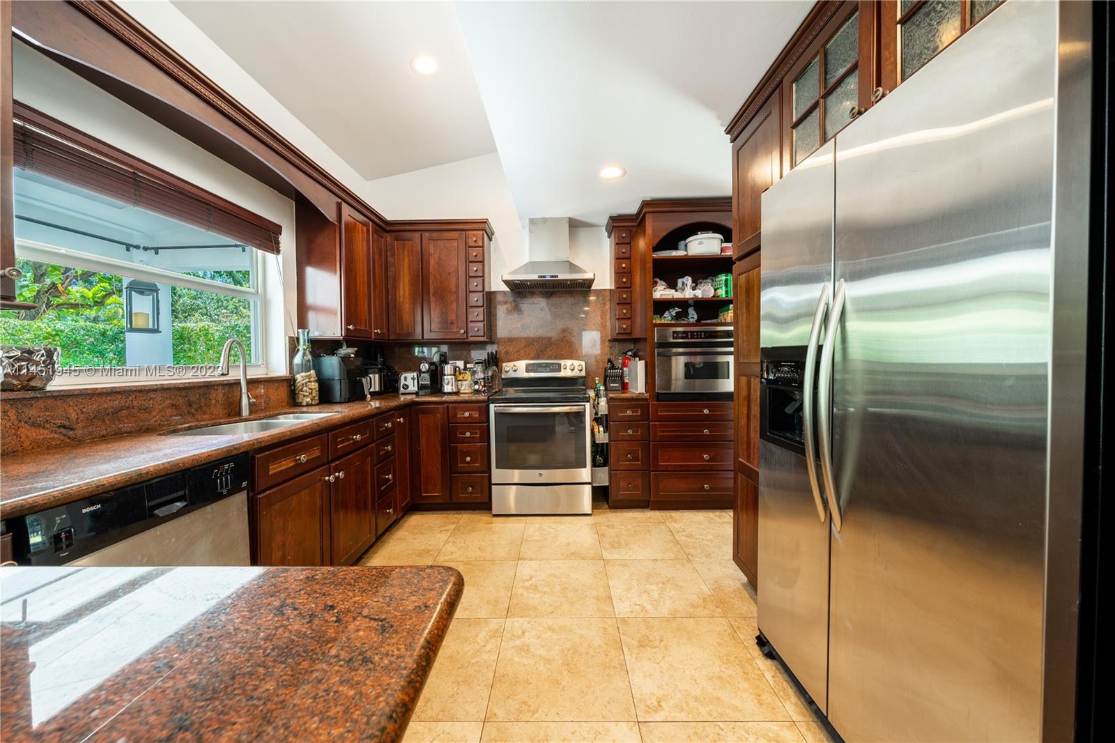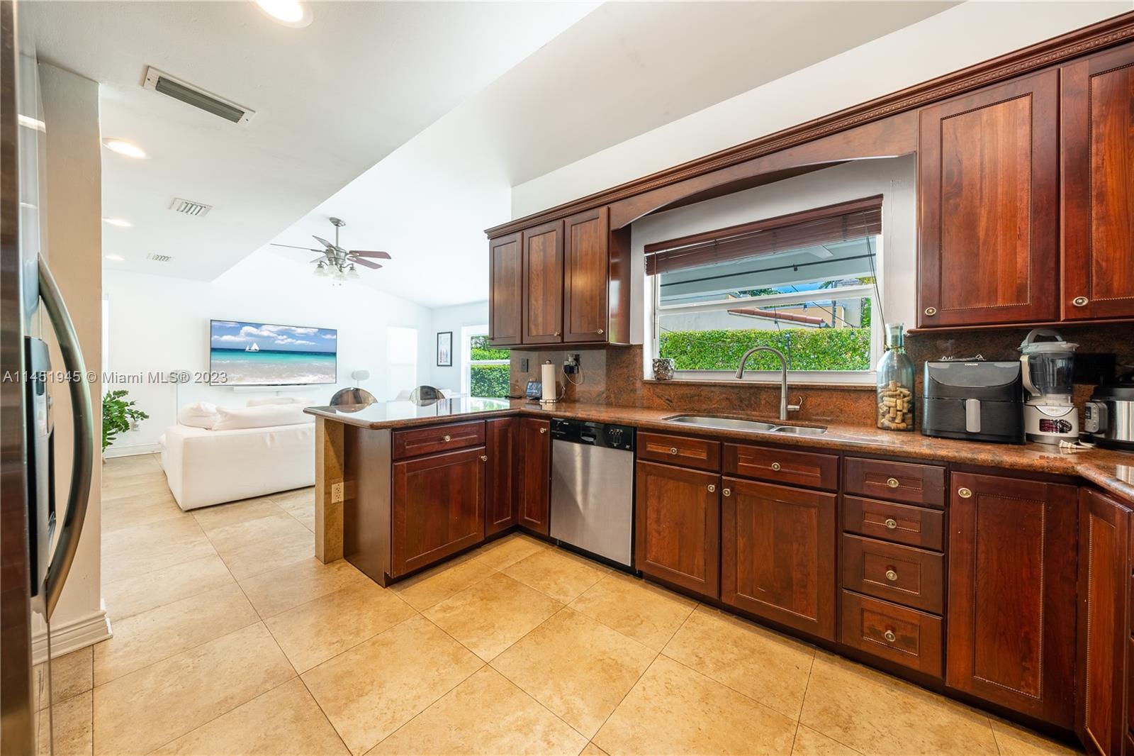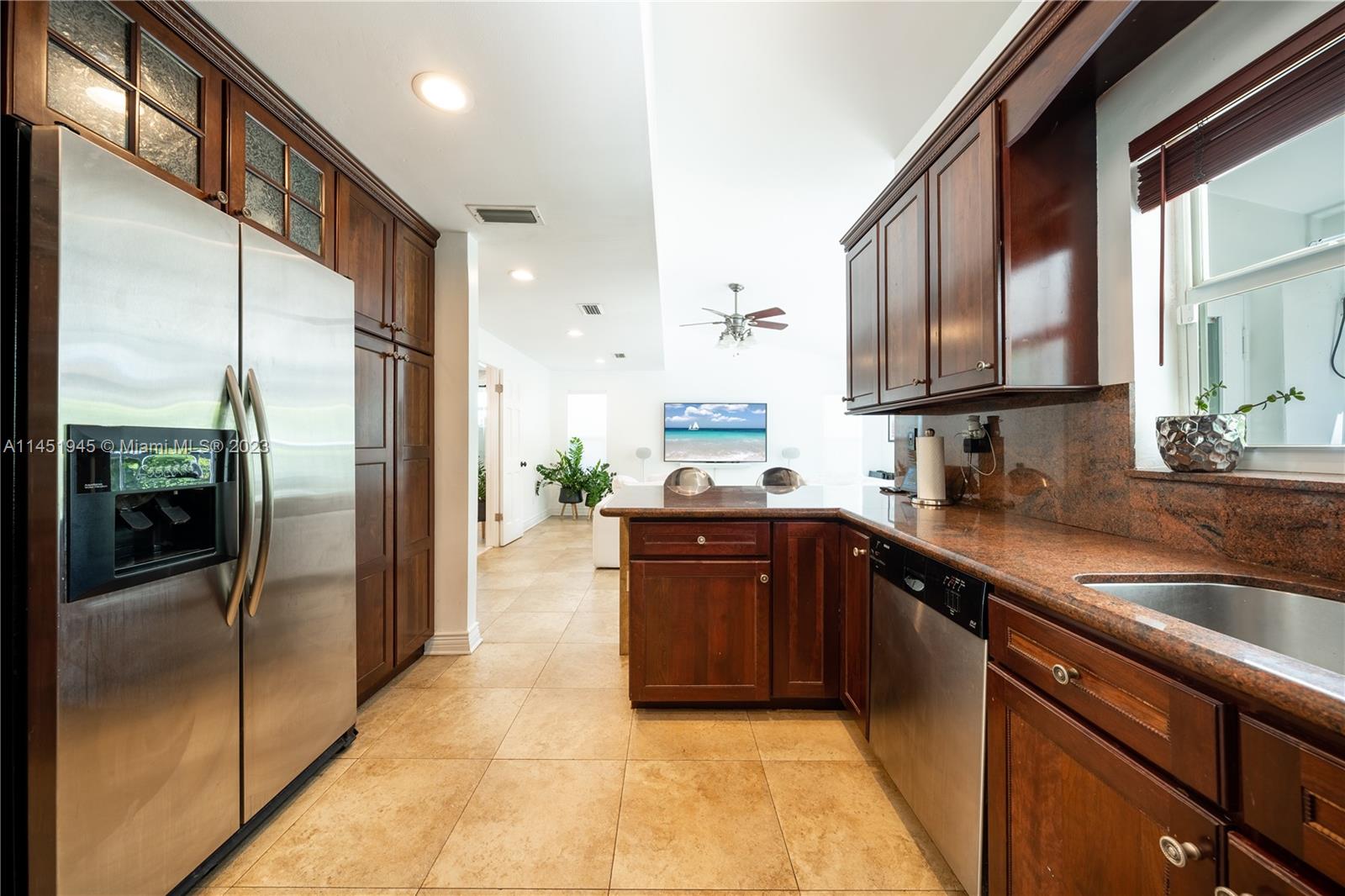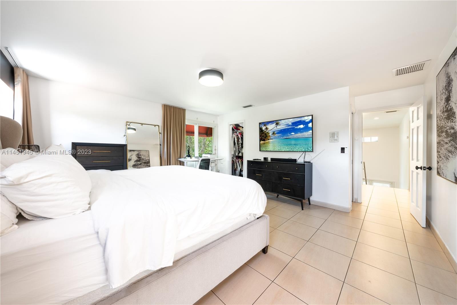 Contemporary two-story corner lot residence graces the serene tree-lined Capri Street in North Gables. Built in 1989 this renovated home boasts impact glass windows and doors throughout & newer roof.Three bedrooms including 1 bedroom on the lower level each offer beautifully renovated en-suite bathrooms. As you step inside, you'll be greeted by a spacious living and dining area with soaring ceilings at the entrance, adding an intriguing architectural flair. The expansive kitchen, complete with a breakfast bar, seamlessly connects to the family room, creating a cozy and functional space that opens to the charming covered patio overlooking the backyard that brims with untapped potential. Walk to Granada Golf Course and enjoy the charming Mediterranean walkable City of Downtown CoralGables.
