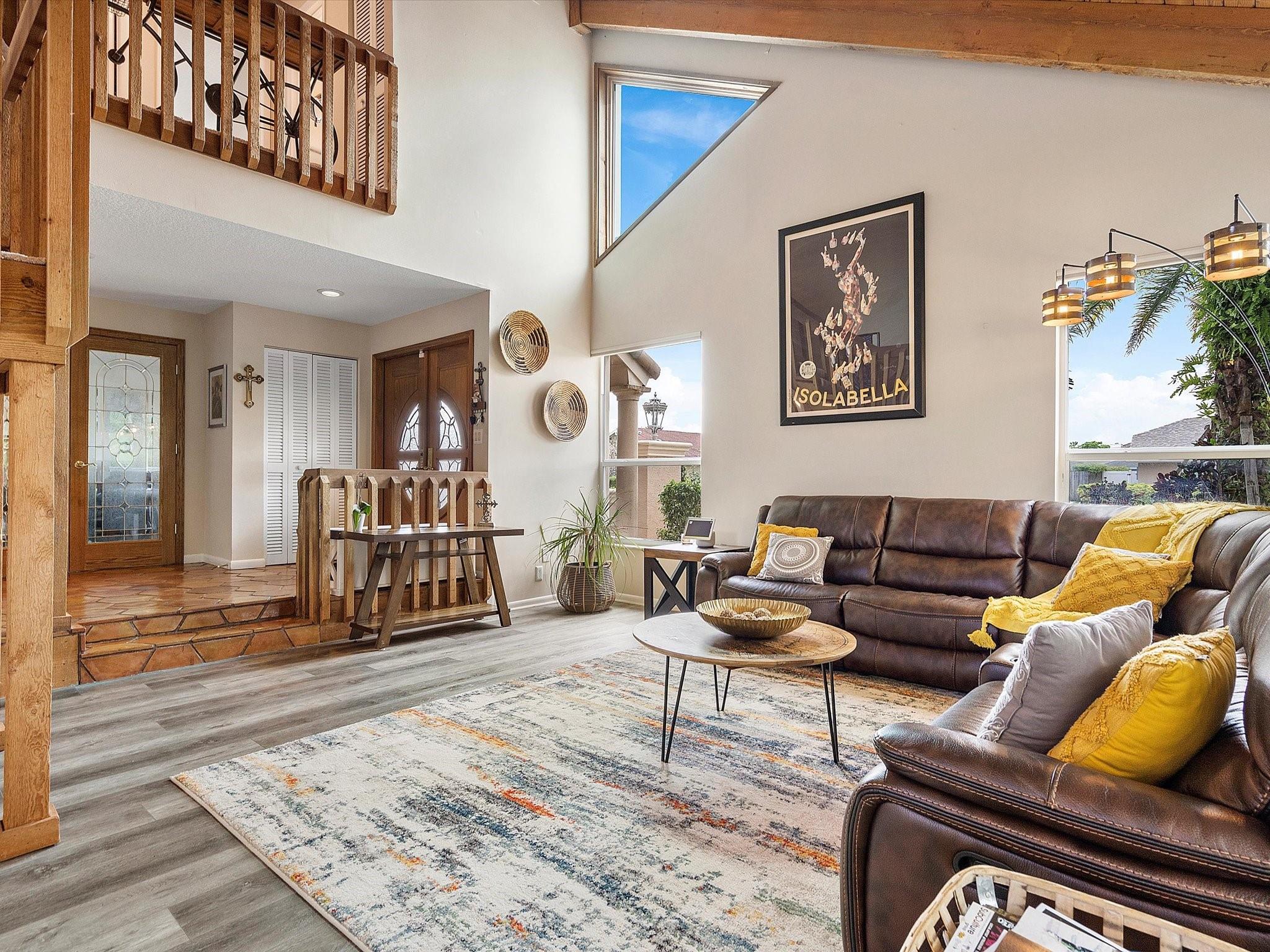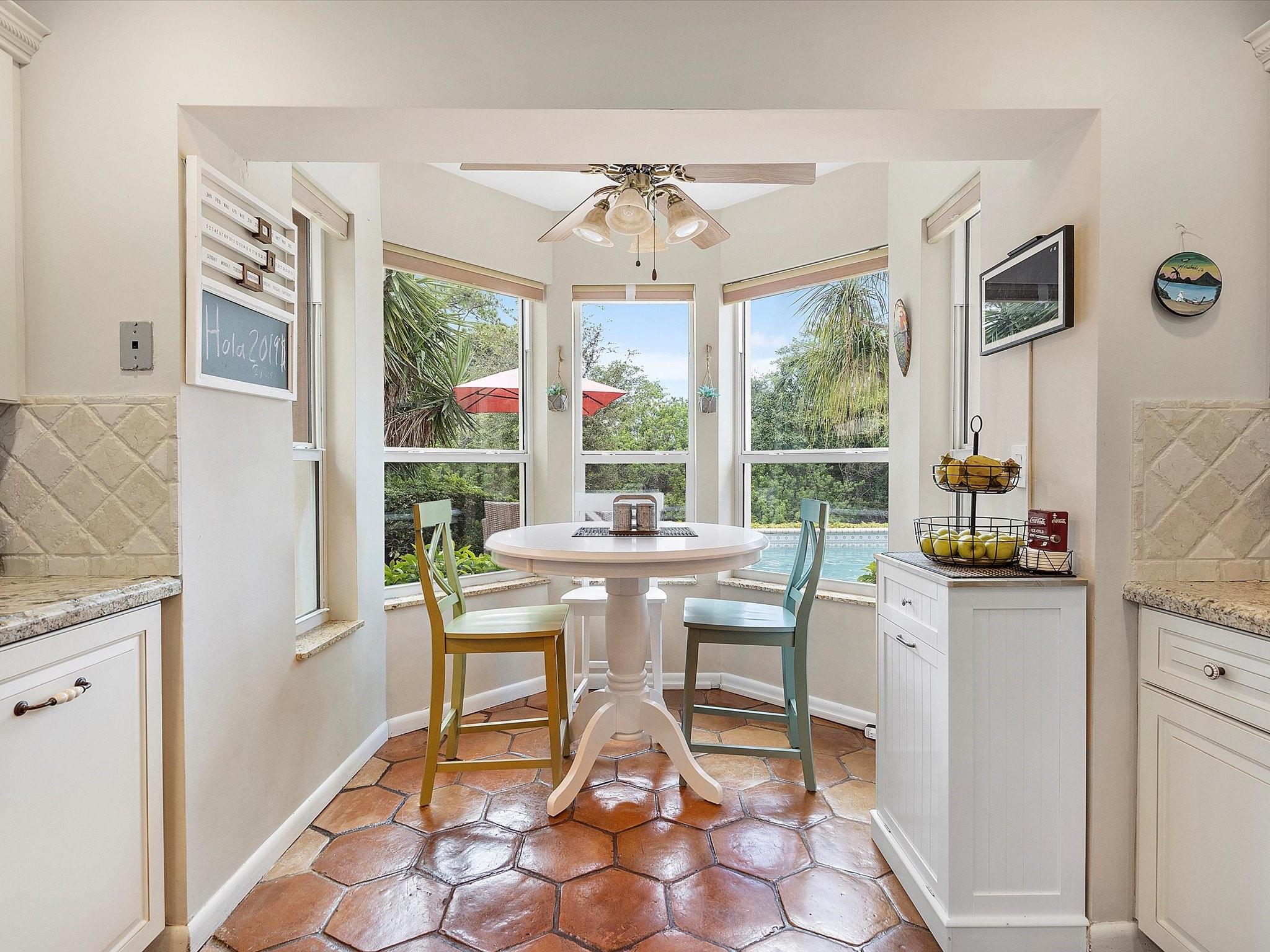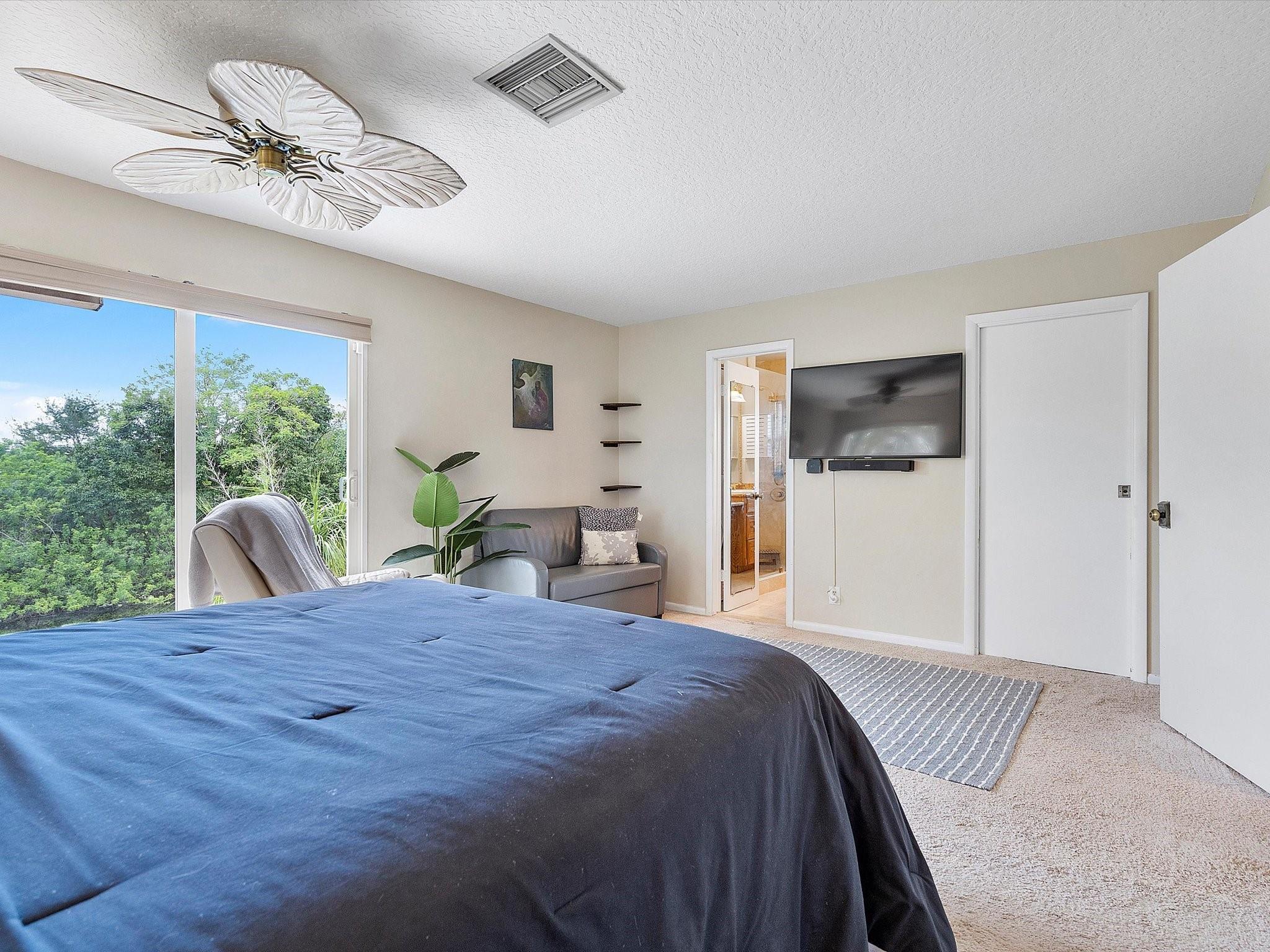 The property boasts a resort-like private backyard with beautiful waterfront views and large and luxurious saltwater pool, perfect for relaxation, and comes equipped with an automatic salt chlorination system for easy maintenance. Impact windows and doors provide added security and convenience. The kitchen features French cabinets, granite counters, and a marble backsplash, all while offering a view of the pool and backyard. The primary suite upstairs includes a spacious walk-in closet and a bathroom with an oak vanity, double sinks, marble floors, and a large shower. The second floor and staircase have new carpeting, and the living area has new flooring. The fourth bedroom, currently used as an office, is located downstairs and includes a closet. A+ schools from elementary to highschool!