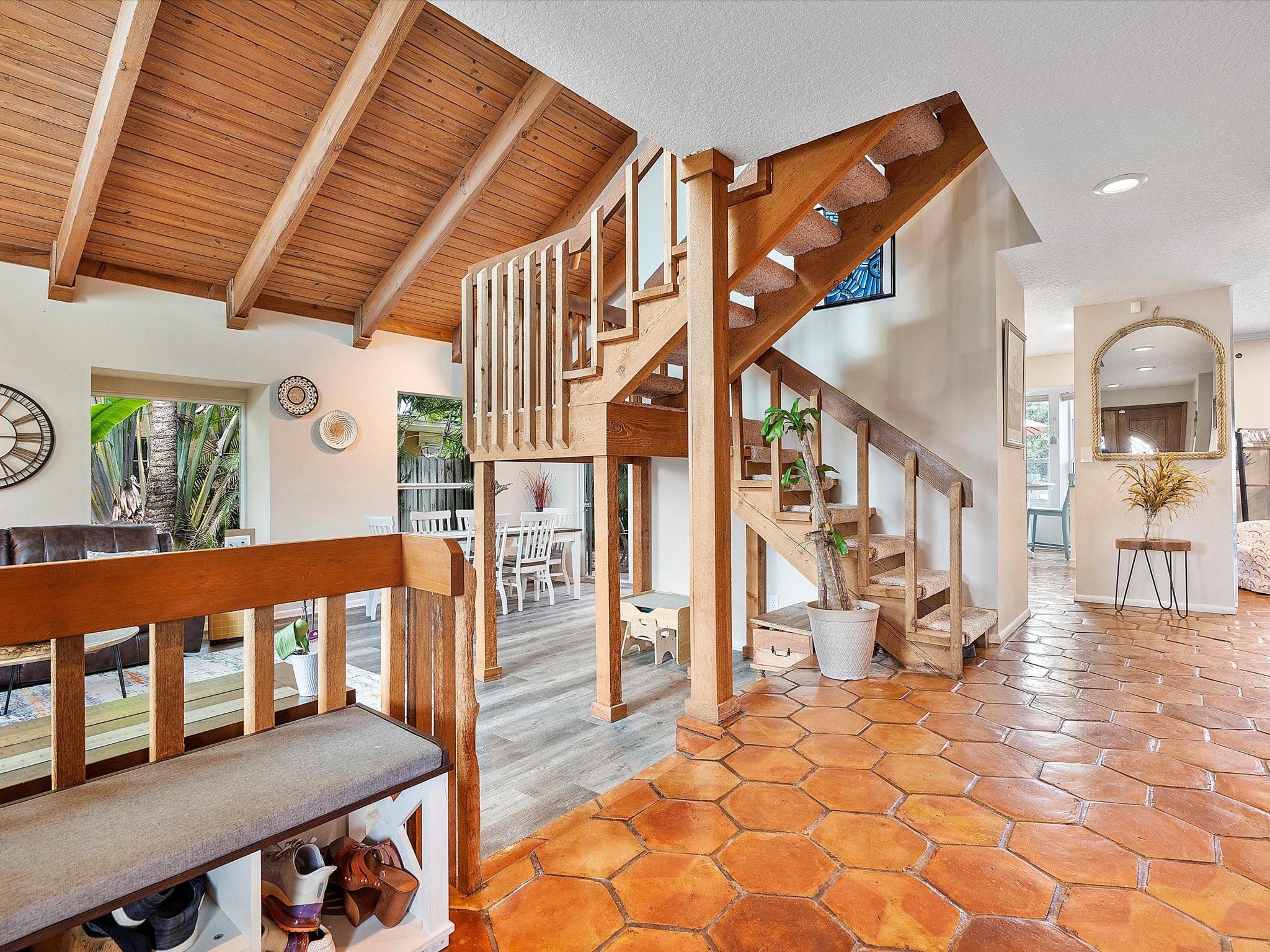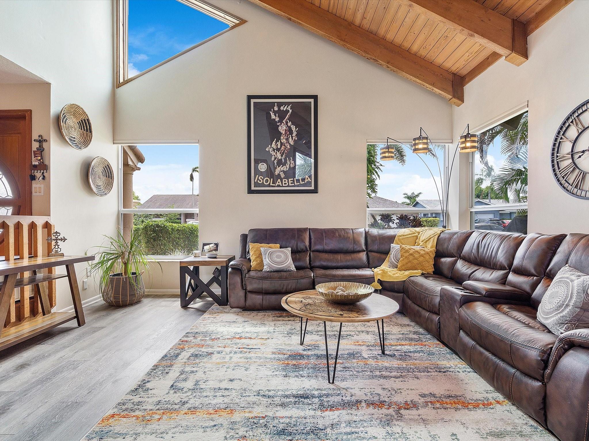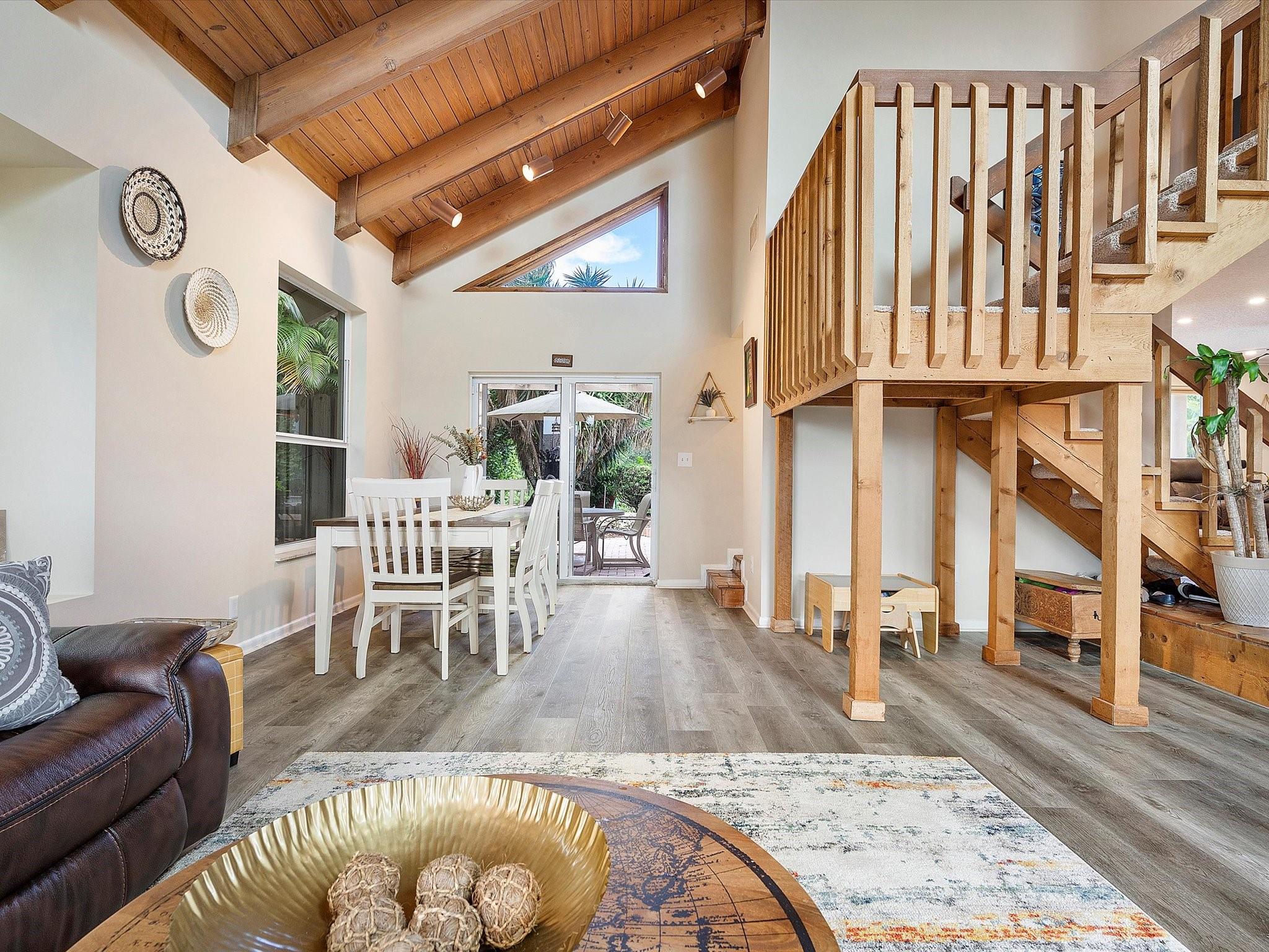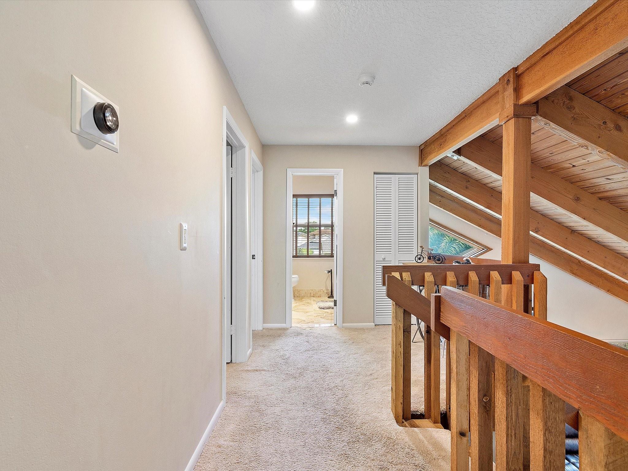 The property boasts a resort-like private backyard with beautiful waterfront views and large and luxurious saltwater pool, perfect for relaxation, and comes equipped with an automatic salt chlorination system for easy maintenance. Impact windows and doors provide added security and convenience. The kitchen features French cabinets, granite counters, and a marble backsplash, all while offering a view of the pool and backyard. The primary suite upstairs includes a spacious walk-in closet and a bathroom with an oak vanity, double sinks, marble floors, and a large shower. The second floor and staircase have new carpeting, and the living area has new flooring. The fourth bedroom, currently used as an office, is located downstairs and includes a closet. A+ schools from elementary to highschool!