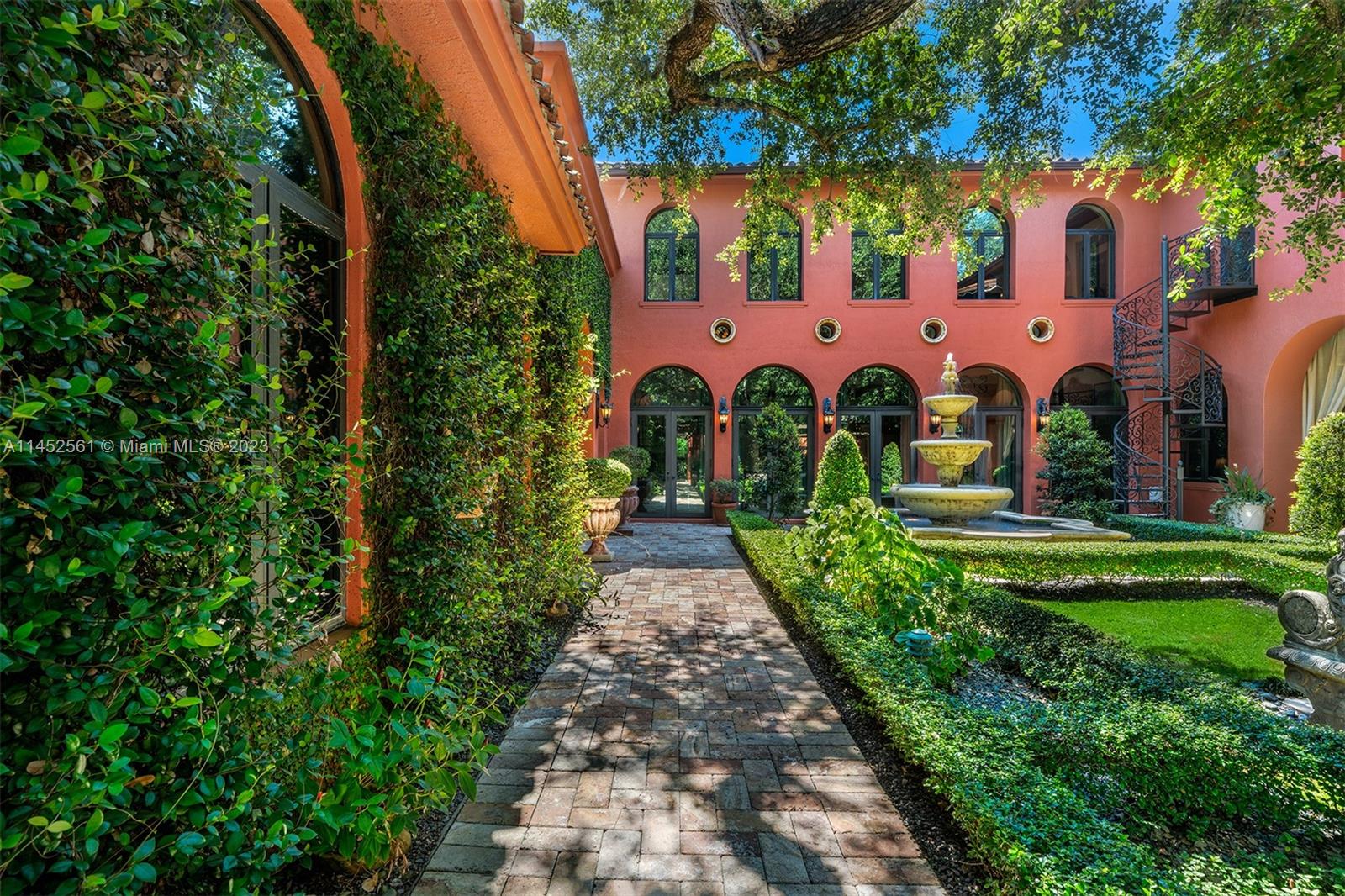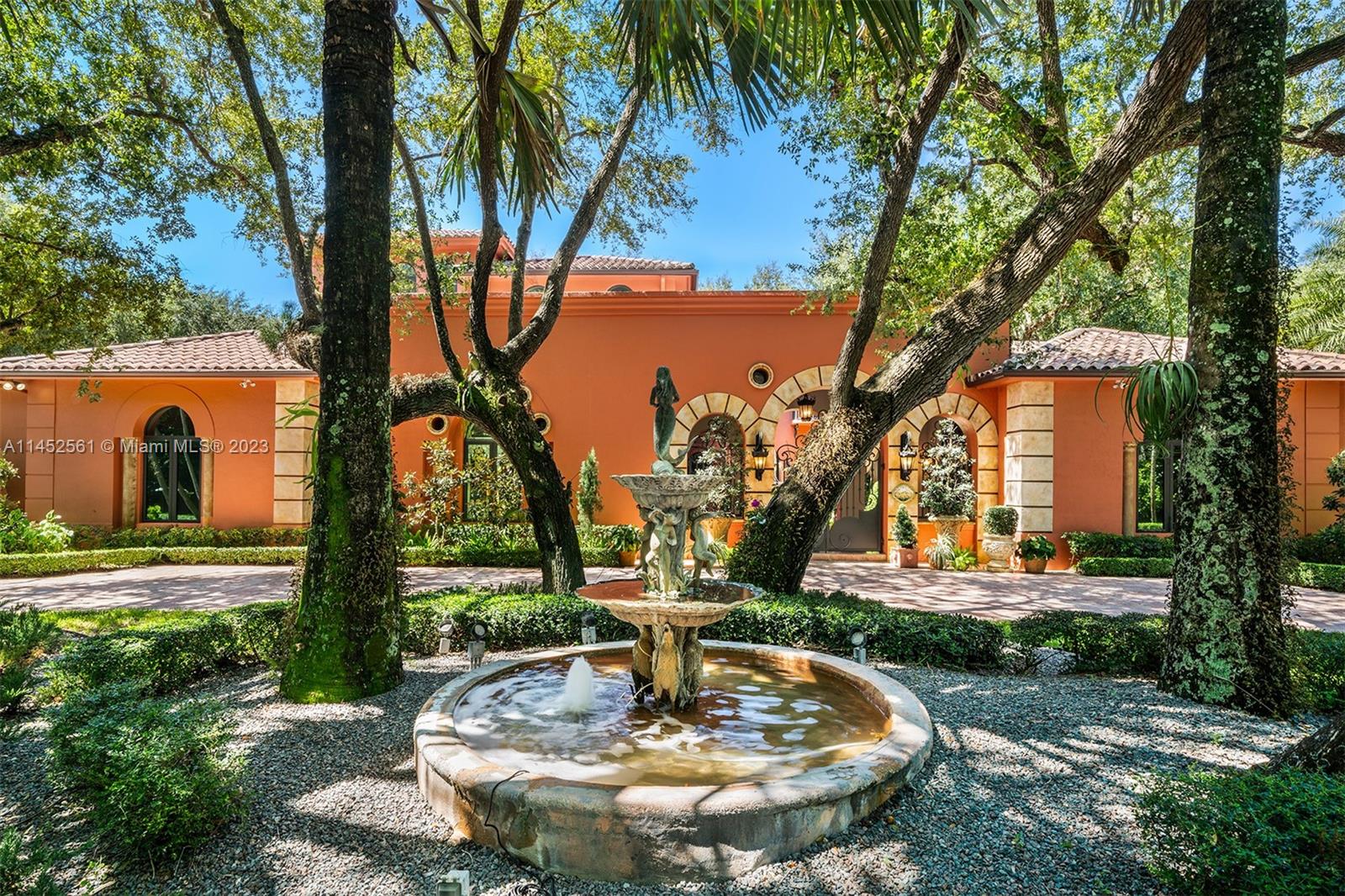 Exquisite custom courtyard estate nestled in Pinecrest, exuding sophistication from the moment of entry with its serene ambiance. Revel in a harmonious blend of indoor elegance & outdoor splendor w/ unparalleled attention to detail. Greeted by a majestic foyer, boasting expansive formal living & dining areas under soaring ceilings. The spacious gourmet kitchen, complete w/ a breakfast nook, seamlessly flows into a spacious family room. Indulge in the luxurious master suite featuring spa-like bath & balcony that overlooks the tranquil backyard. Discover a separate 1br/1ba guest house, while the outdoors beckons w/ lush gardens, oak trees, cascading fountains, covered terrace, summer kitchen, & heated pool/spa. Add’l features: imp windows/doors, generator, gym/flex space, & a 3-car gar.