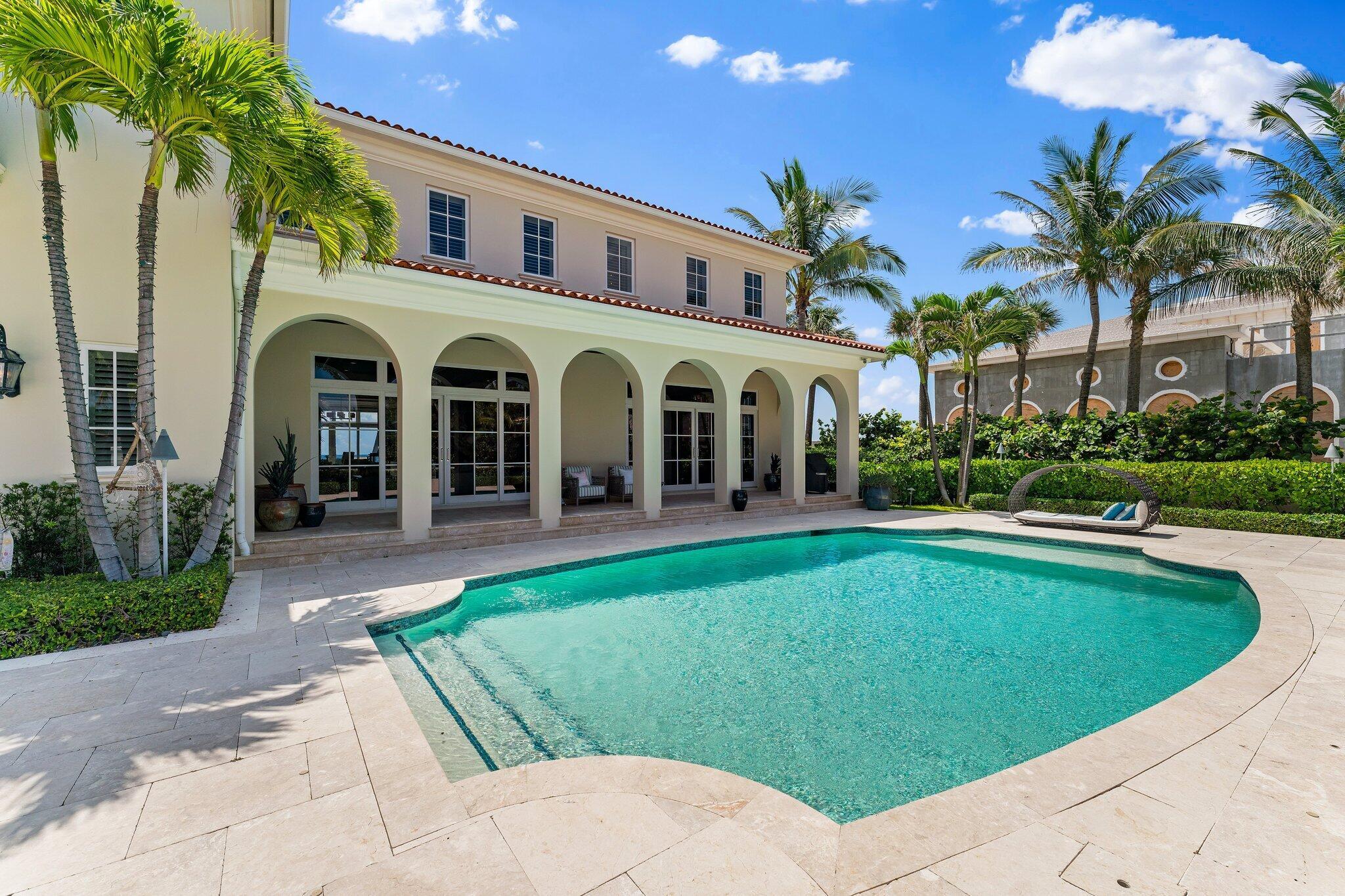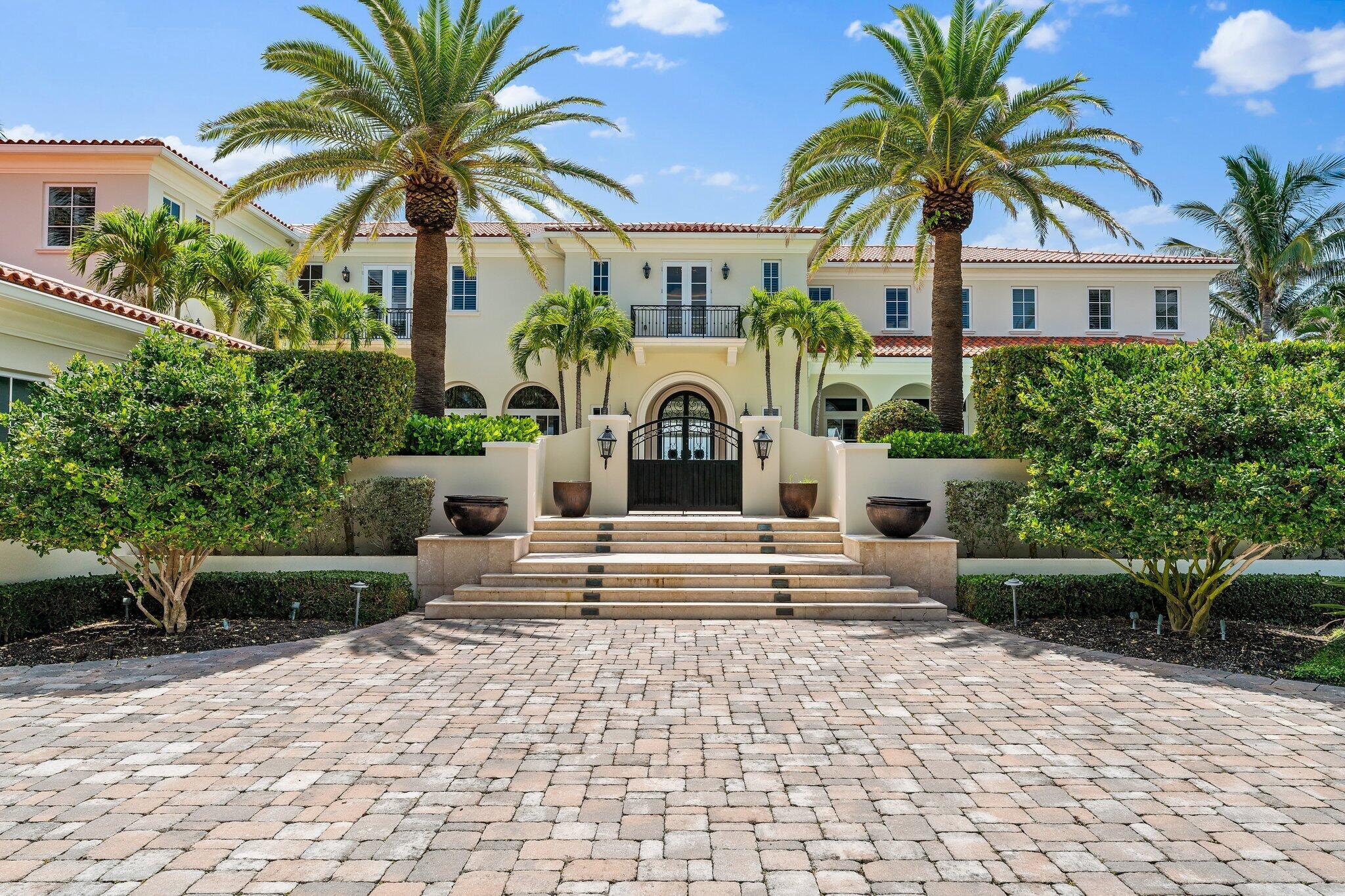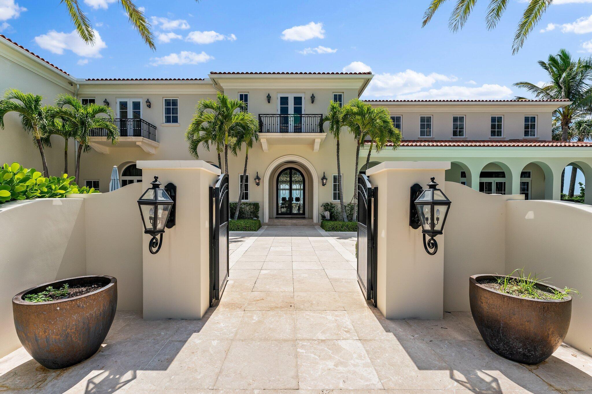 ''Villa Oceano Azul'' -1400 S Ocean Blvd. Manalapan, Florida. This magnificent estate residence is situated between the Atlantic Ocean and the Intracoastal Waterway in the exclusive estate section of Manalapan. As its name implies, this extraordinary property totals nearly 2 acres with over 200 feet of direct oceanfront and an accompanying 200 feet on the Intracoastal Waterway equipped with a full-service concrete dock. Offered fully furnished and turnkey with transitional coastal inspired interiors by Marc-Michaels Interior Design, this stunning European-inspired Villa creates graciously proportioned rooms in a grand total of 20,712 square feet with seven bedrooms, nine full and four half baths, including a guest​​‌​​​​‌​‌​​​​‌‌​‌​​​​‌‌​​‌‌​​‌‌ house.