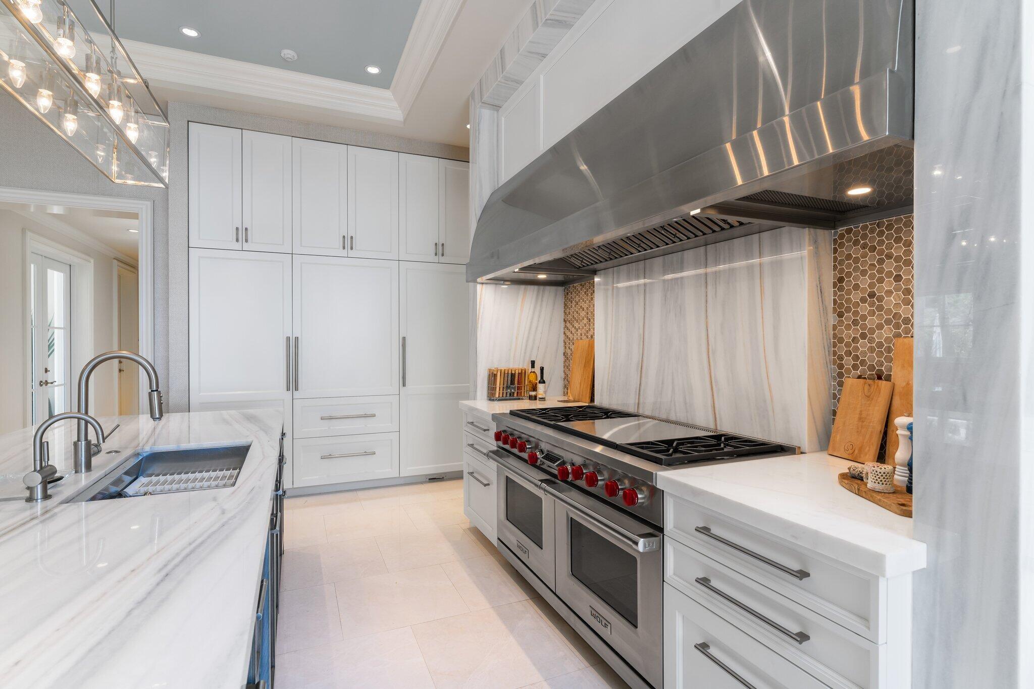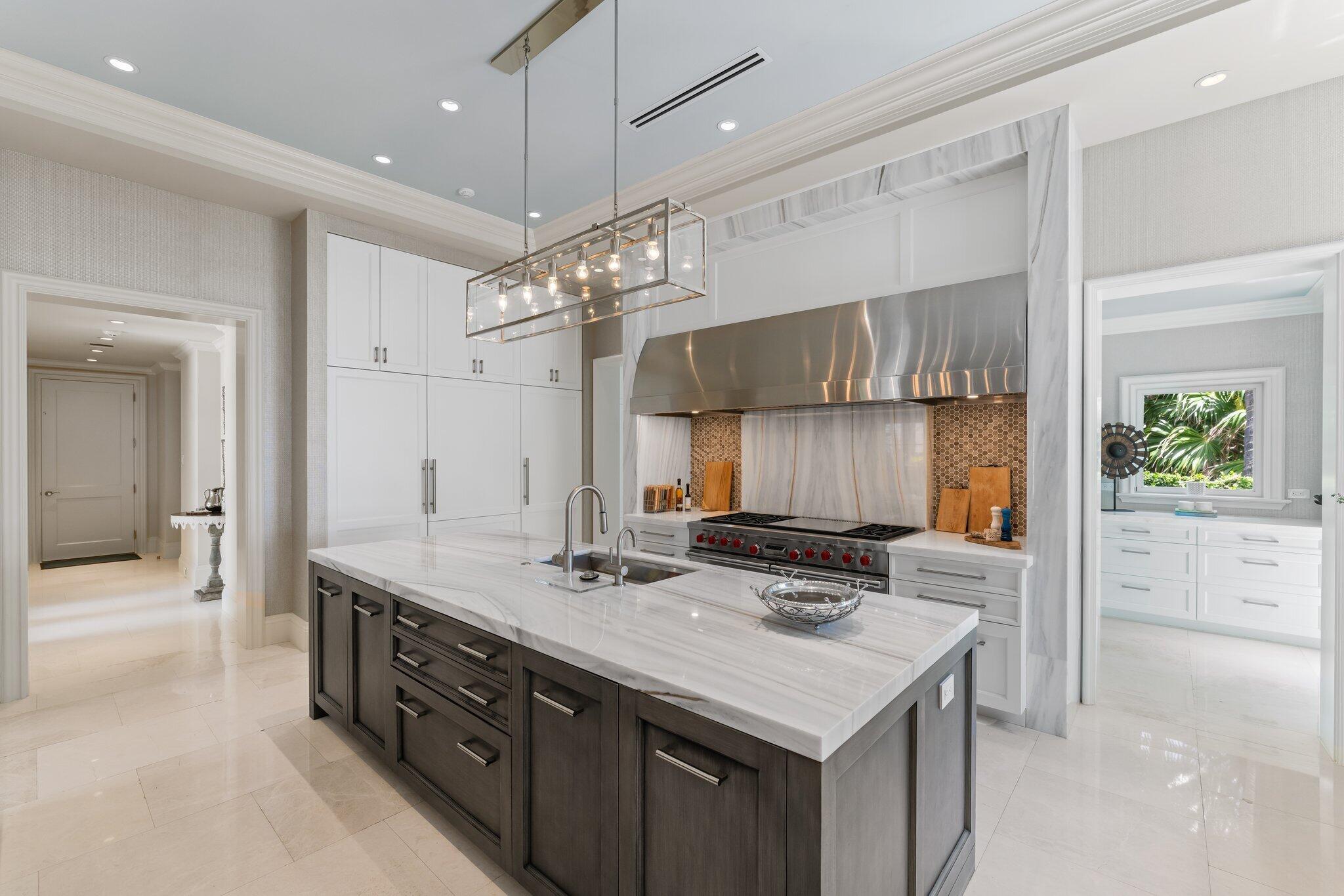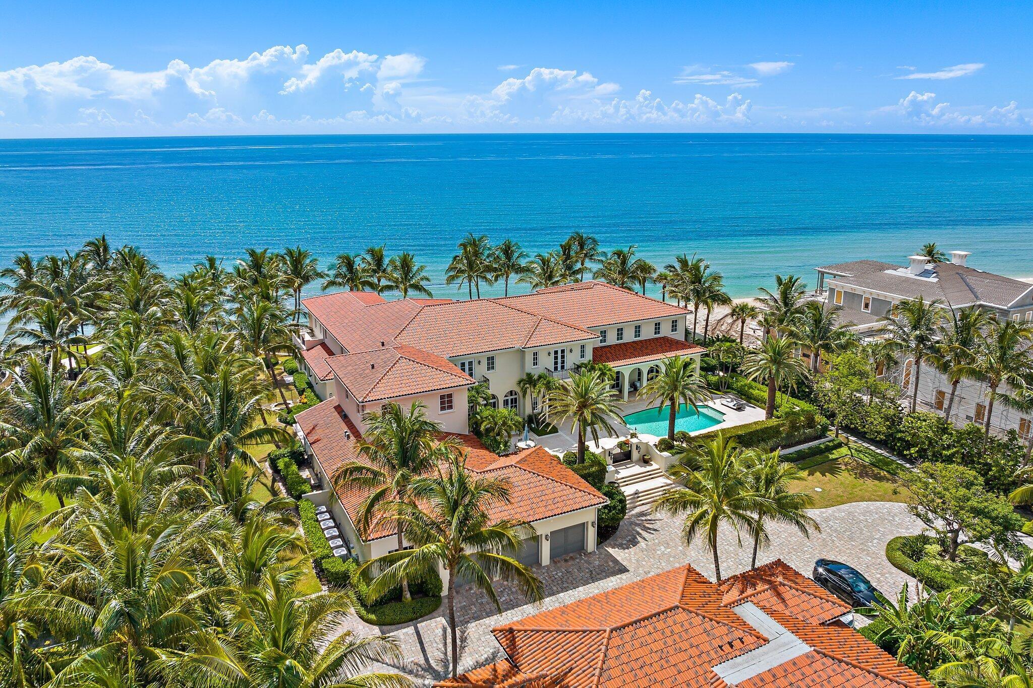 ''Villa Oceano Azul'' -1400 S Ocean Blvd. Manalapan, Florida. This magnificent estate residence is situated between the Atlantic Ocean and the Intracoastal Waterway in the exclusive estate section of Manalapan. As its name implies, this extraordinary property totals nearly 2 acres with over 200 feet of direct oceanfront and an accompanying 200 feet on the Intracoastal Waterway equipped with a full-service concrete dock. Offered fully furnished and turnkey with transitional coastal inspired interiors by Marc-Michaels Interior Design, this stunning European-inspired Villa creates graciously proportioned rooms in a grand total of 20,712 square feet with seven bedrooms, nine full and four half baths, including a guest house.