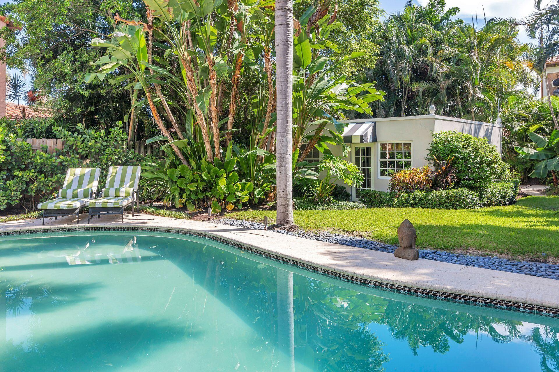 Nestled within the picturesque enclave of Historic El Cid, this charming one-story home offers the epitome of Florida living. With three bedrooms in the main house, soaring beamed ceilings, full hurricane impact windows, and a separate guest cottage, this property embodies a harmonious blend of historic character and modern comfort. As you approach the residence, you'll be captivated by the lush landscaping that envelops the entire +/- 10,000sqft lot and private pool. Towering palms and verdant tropical foliage create a private oasis. Upon entering the main house, you're greeted by the warmth of natural light filtering through the hurricane impact windows. The spacious living area boasts soaring beamed ceilings that exude a sense of airiness and grandeur. The House is NON-CONTRIBUTING
