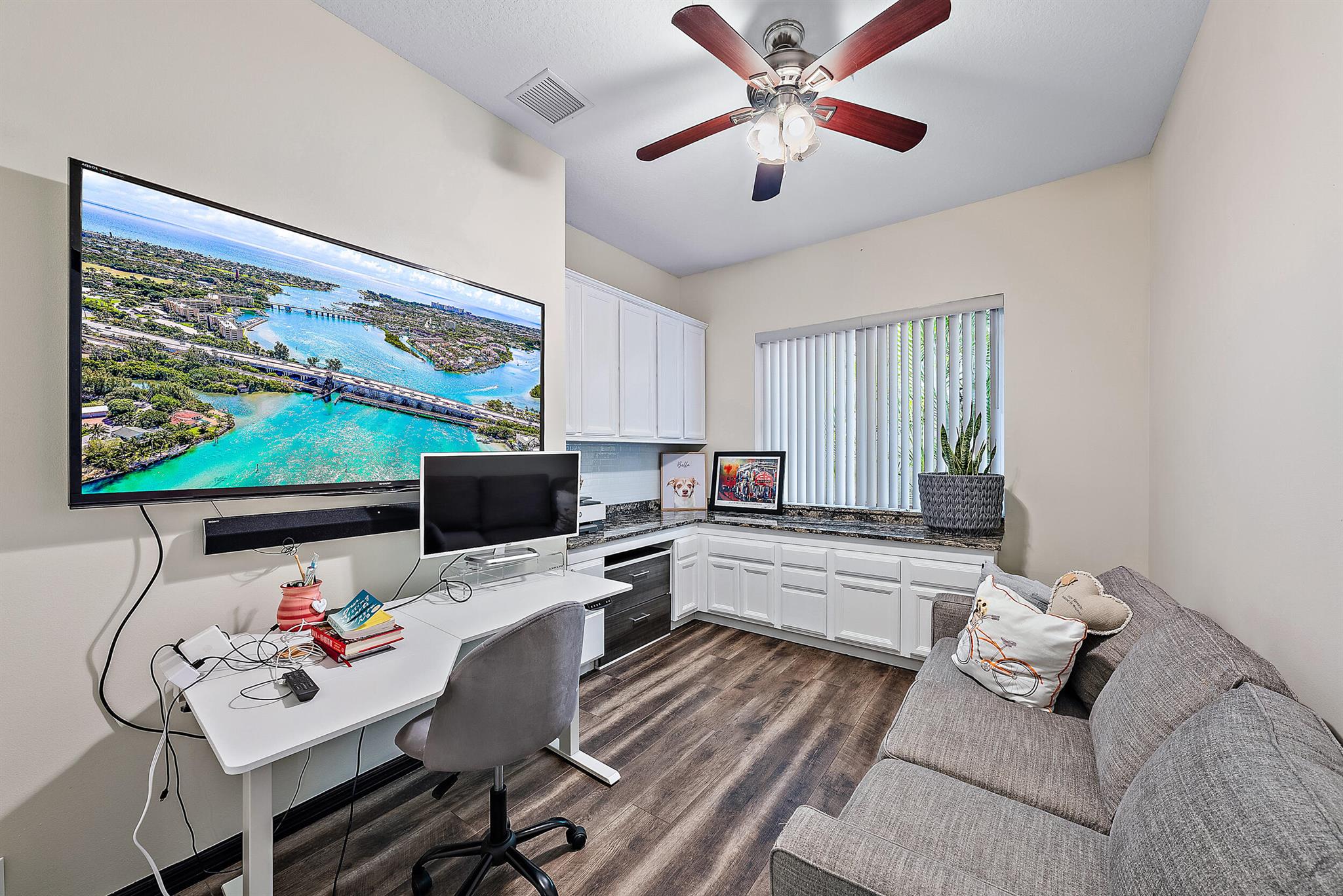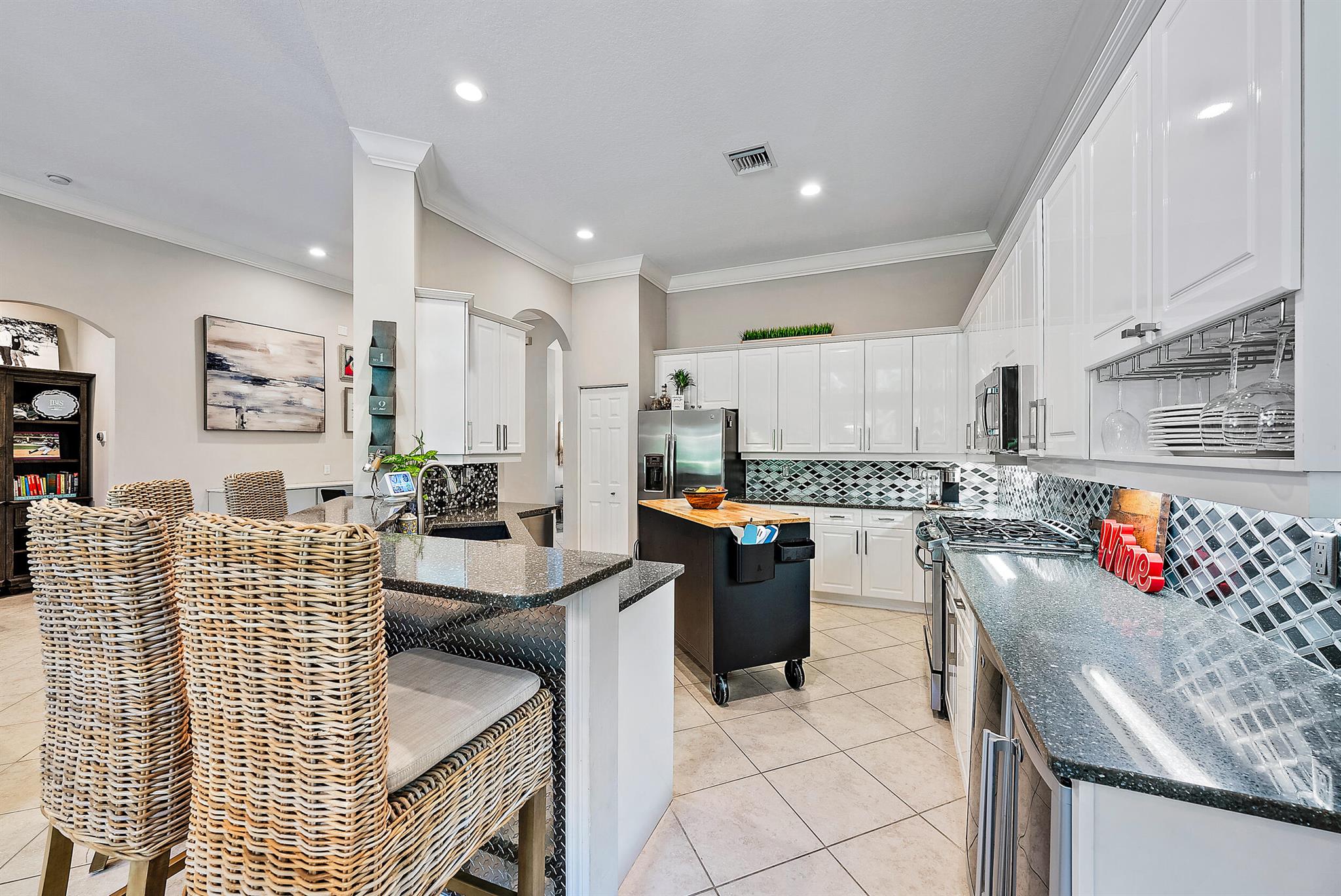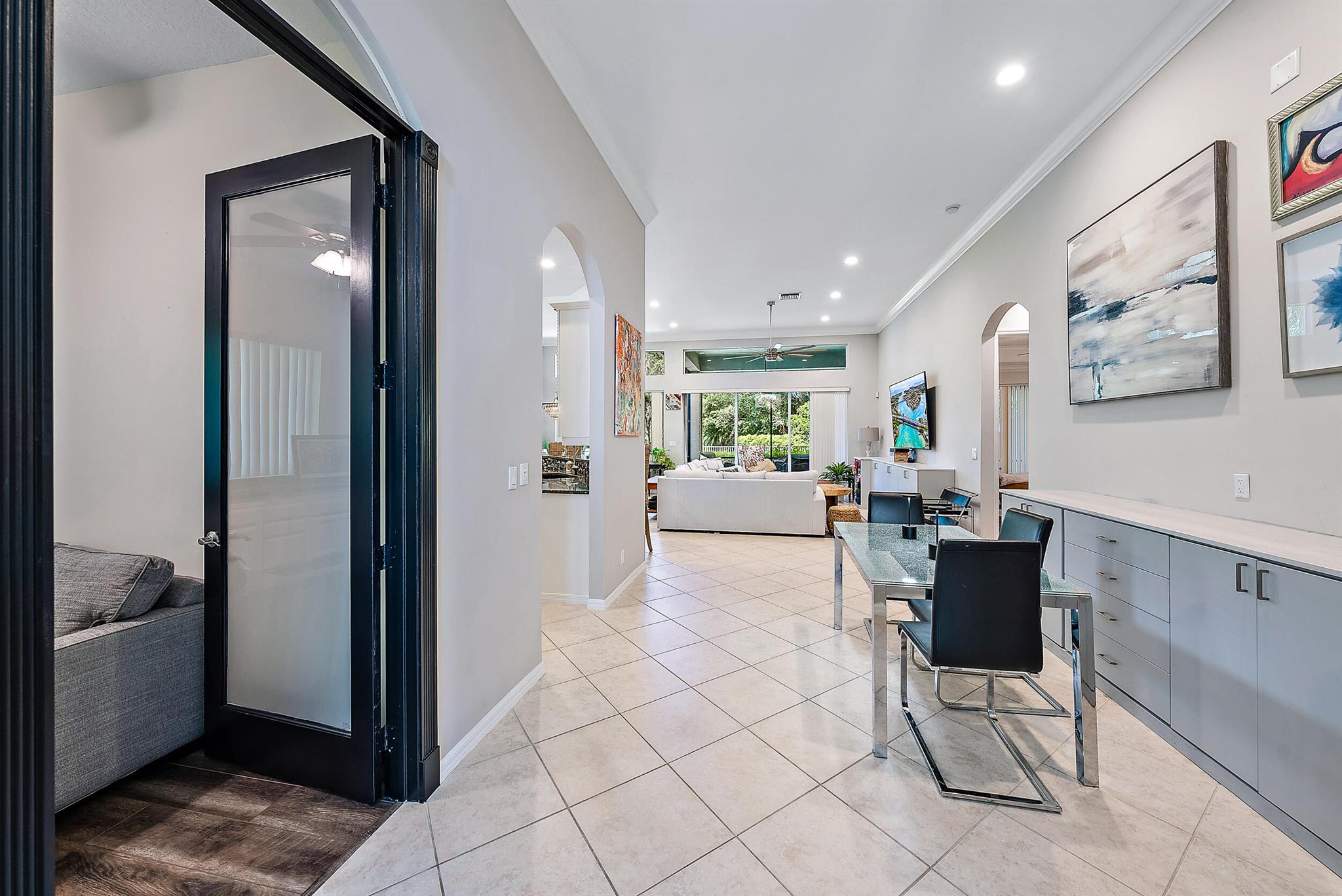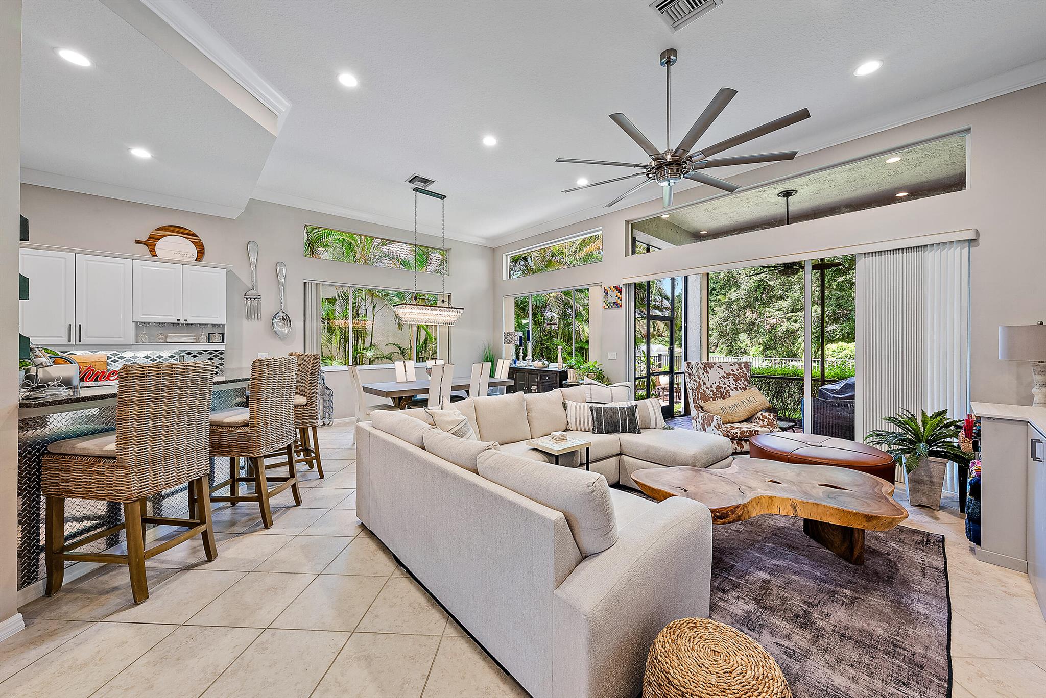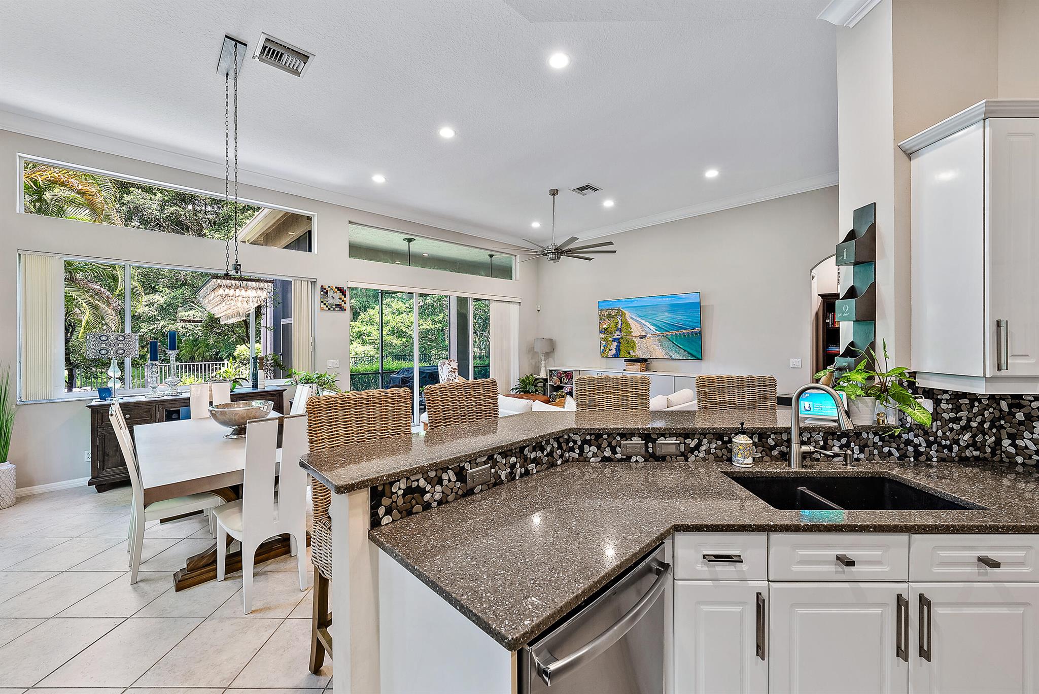 This upgraded and renovated great room home offers private water vistas and one of the most open floor plans in Ibis. The architecturally exciting ''Briarcliff'' model boasts soaring ceilings, and a versatile layout. The kitchen and both bathrooms were renovated six years ago and feature replaced, upgraded stainless appliances, granite counter tops, designer back splashes and more. The HVAC, washer and dryer are two years new. The extended back patio fence is four years new. Wood flooring in both bedrooms and the office. The main bedroom sliders are impact glass, and the house features panel shutters for protection. Built-ins in the dining room, great room and office. Extensive crown molding, designer fans and fixtures throughout.