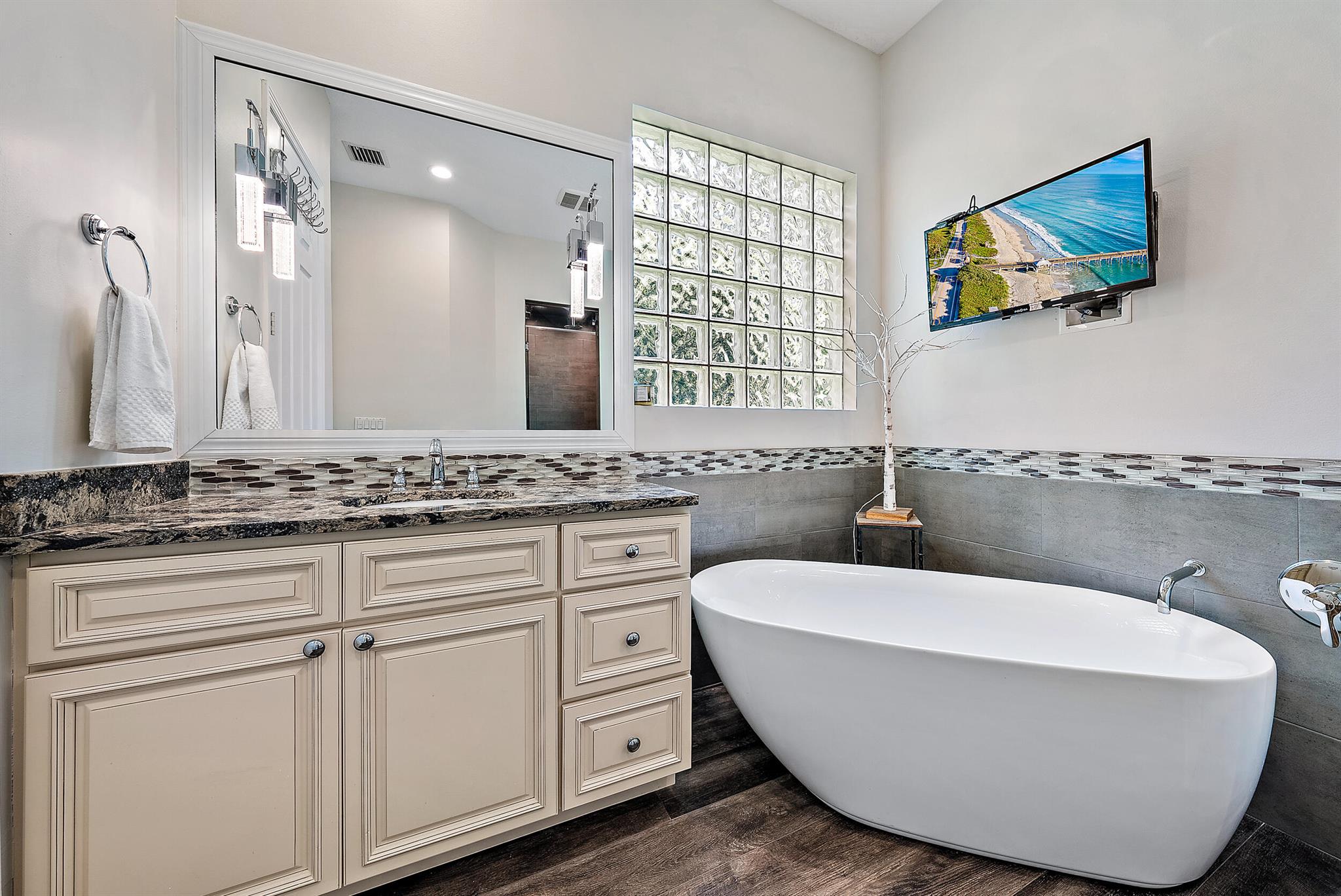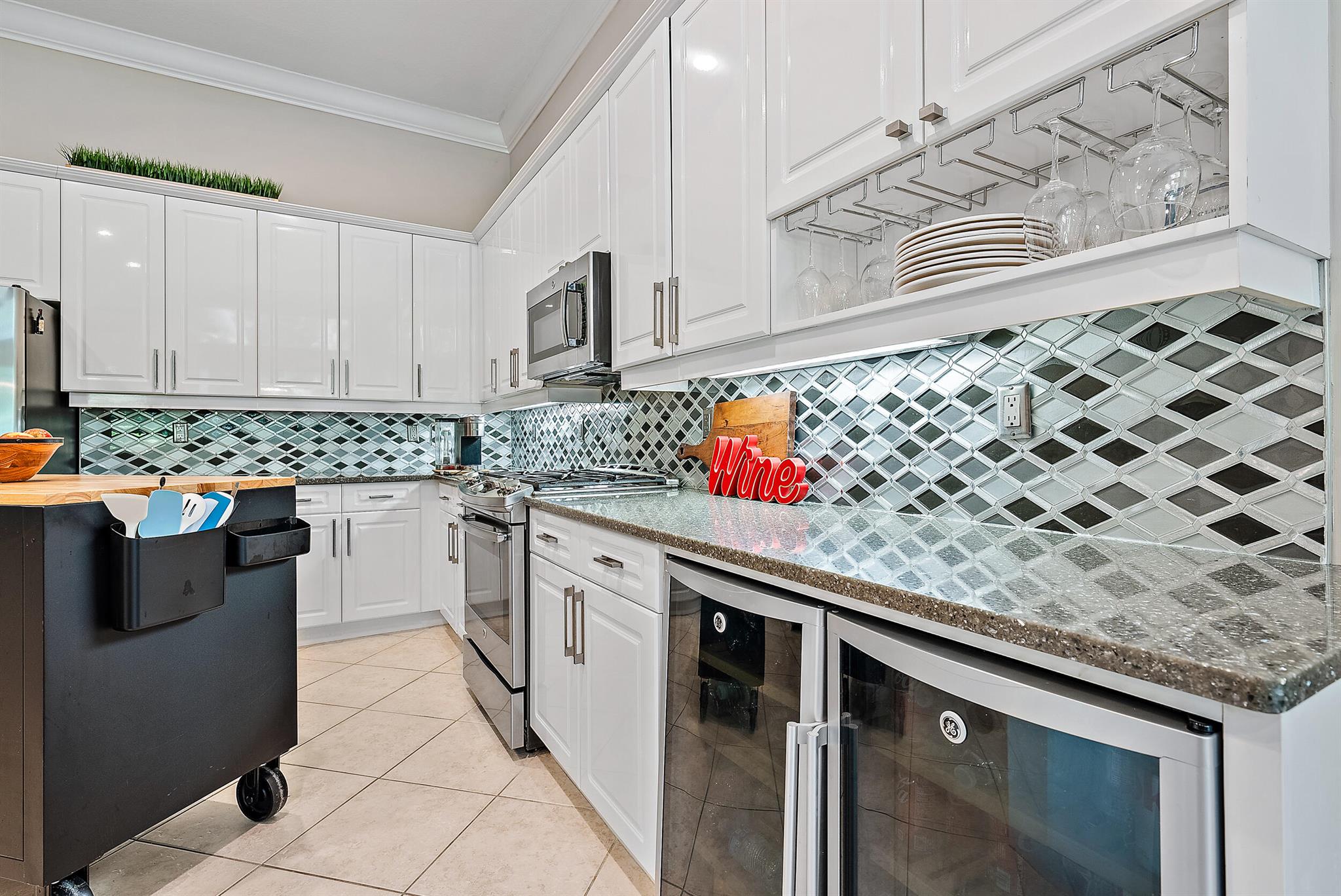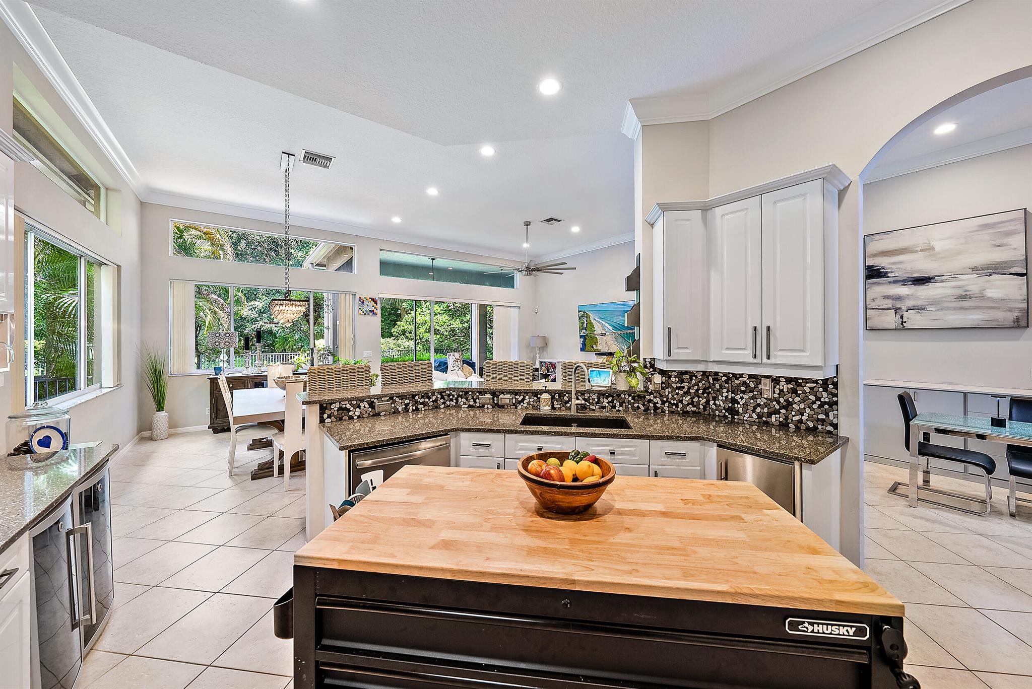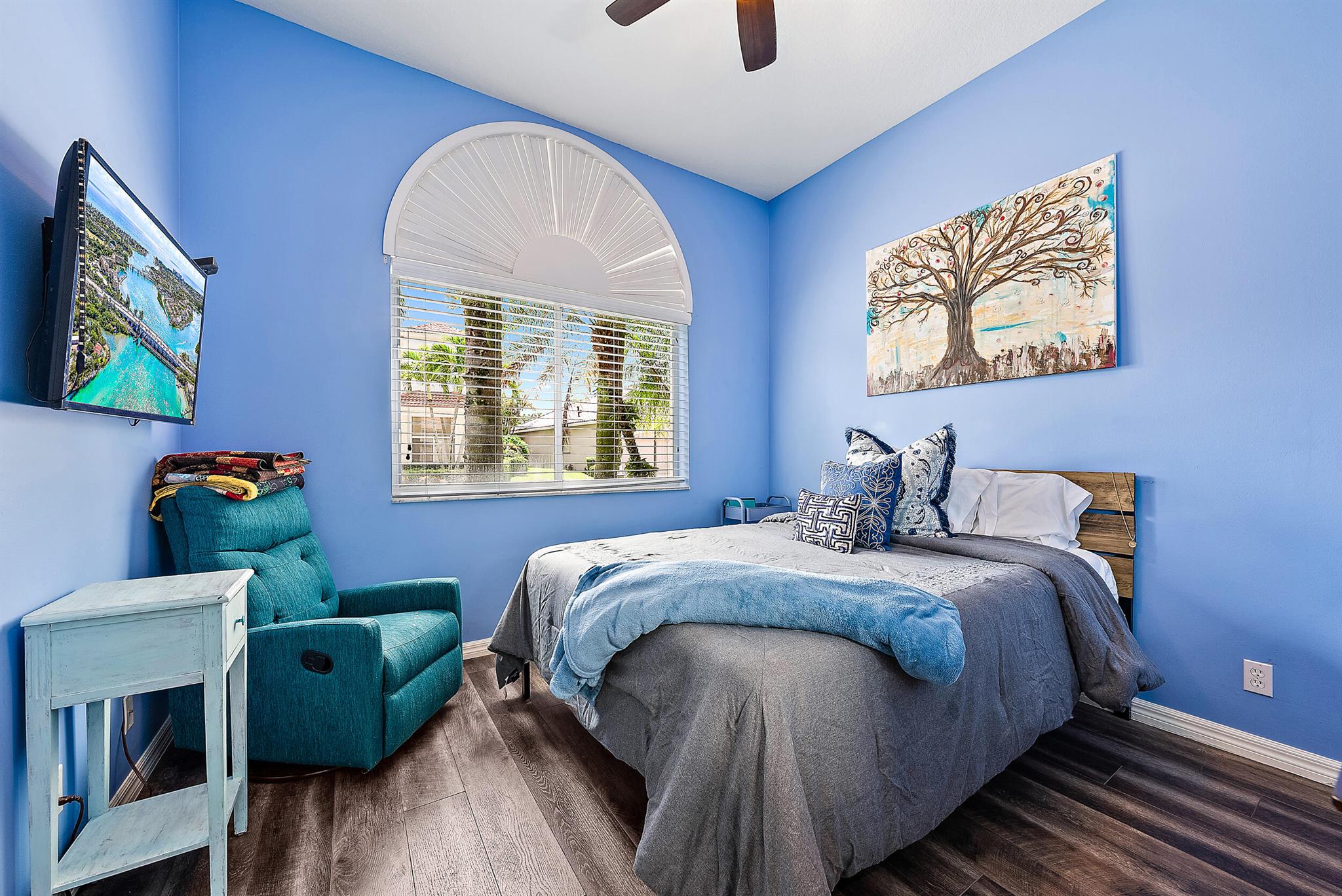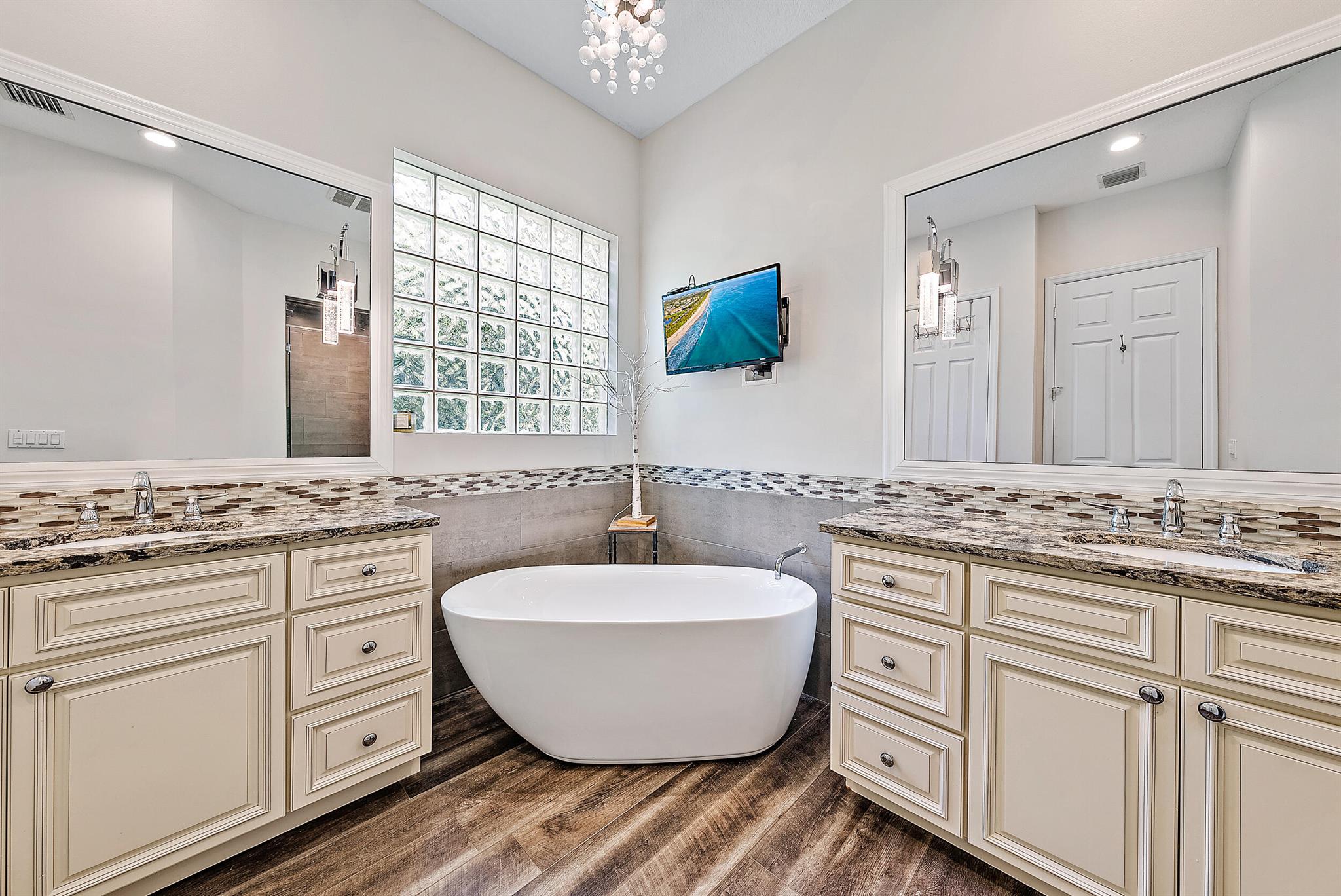 This upgraded and renovated great room home offers private water vistas and one of the most open floor plans in Ibis. The architecturally exciting ''Briarcliff'' model boasts soaring ceilings, and a versatile layout. The kitchen and both bathrooms were renovated six years ago and feature replaced, upgraded stainless appliances, granite counter tops, designer back splashes and more. The HVAC, washer and dryer are two years new. The extended back patio fence is four years new. Wood flooring in both bedrooms and the office. The main bedroom sliders are impact glass, and the house features panel shutters for protection. Built-ins in the dining room, great room and office. Extensive crown molding, designer fans and fixtures throughout.