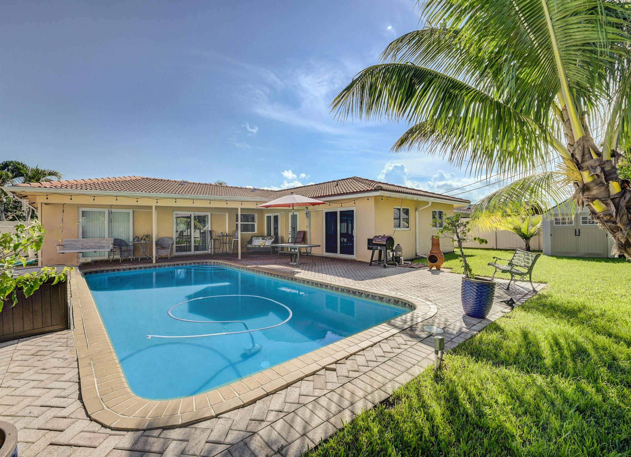 Beautifully renovated 4 Bed 2 Bath pool home in a perfect location.This home has a new custom kitchen with gas cooking, an Island that can seat 7 & lots of storage on both sides! Cast iron pipes replaced, electrical replaced and 5 zone sprinklers & pavered circular driveway added! From the moment you enter this fantastic open and bright home you will not be disappointed. Impact Windows and Doors, Bathrooms updated with rain showers, pantry added, coffee nook and covered patio are just a few of the many features of this home. No HOA in University Park which is conveniently located to Parks, highways, walking distance to Town Center Mall & A rated schools. Owner Occupied - Appointment Required. Seller's Disclosure attached under documents. Sold As Is for seller's convenience.