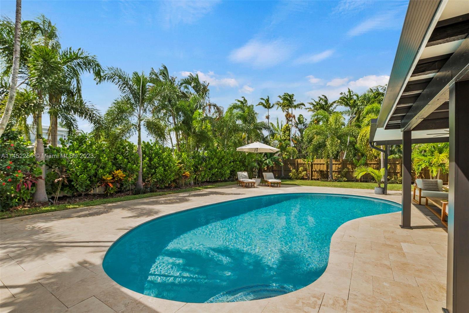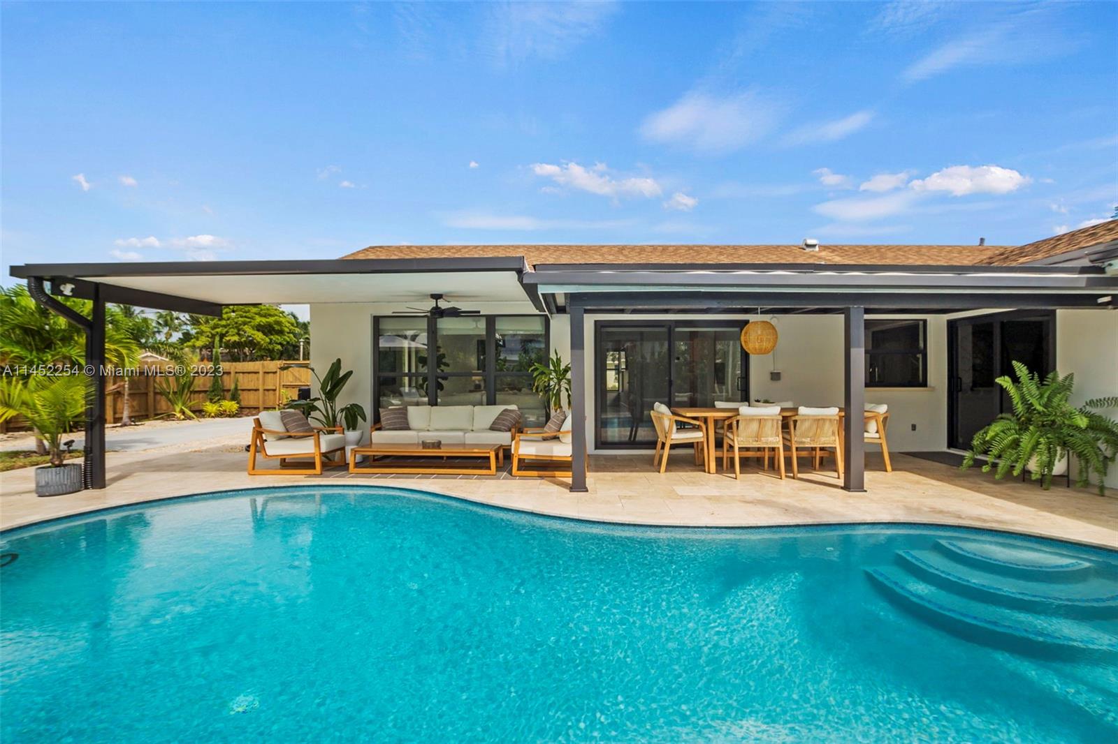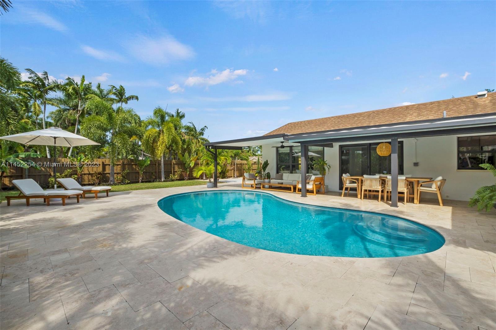 Beautiful & Completely Renovated 3 Bed 2.5 Bath Corner Lot Home In Prestigious Palm Aire. Vaulted Exposed Beam Ceilings Featuring A Large Open Split Floorplan W/ Living, Dining & Family Room. Impact Windows, Doors. All Exterior Walls Recently Smoothed, Refinished & Painted. Upgraded Custom Kitchen Has Quartz Large Waterfall Countertops W/ Storage, Stainless Steel Appliances, Pull Out Pantry & White Shaker Cabinets. Built-In Bar & Additional Cabinets In The Formal Dining. New Ceiling Fans & Lighting Throughout. Primary Suite W/ California Closets, Large Bathroom W/ Dual Sink Vanity & Shower. Fully Fenced In Backyard With Lush Landscaping, Low Voltage Lighting, Travertine Deck And Heated Salt System Pool W/ Color Changing Lights. Private Concrete Pad For RV Or Boat Parking. No HOA!