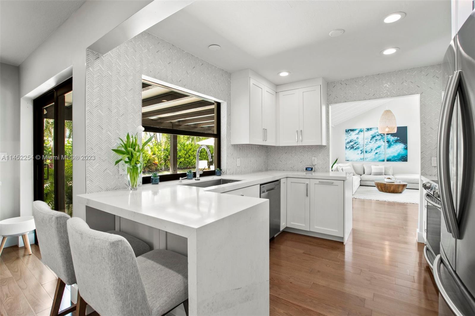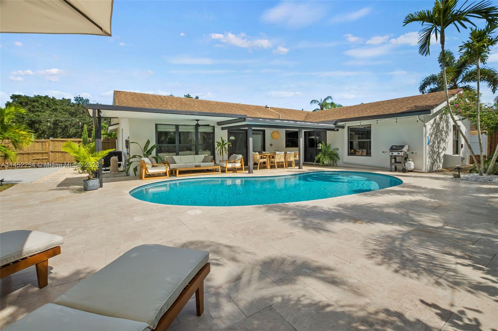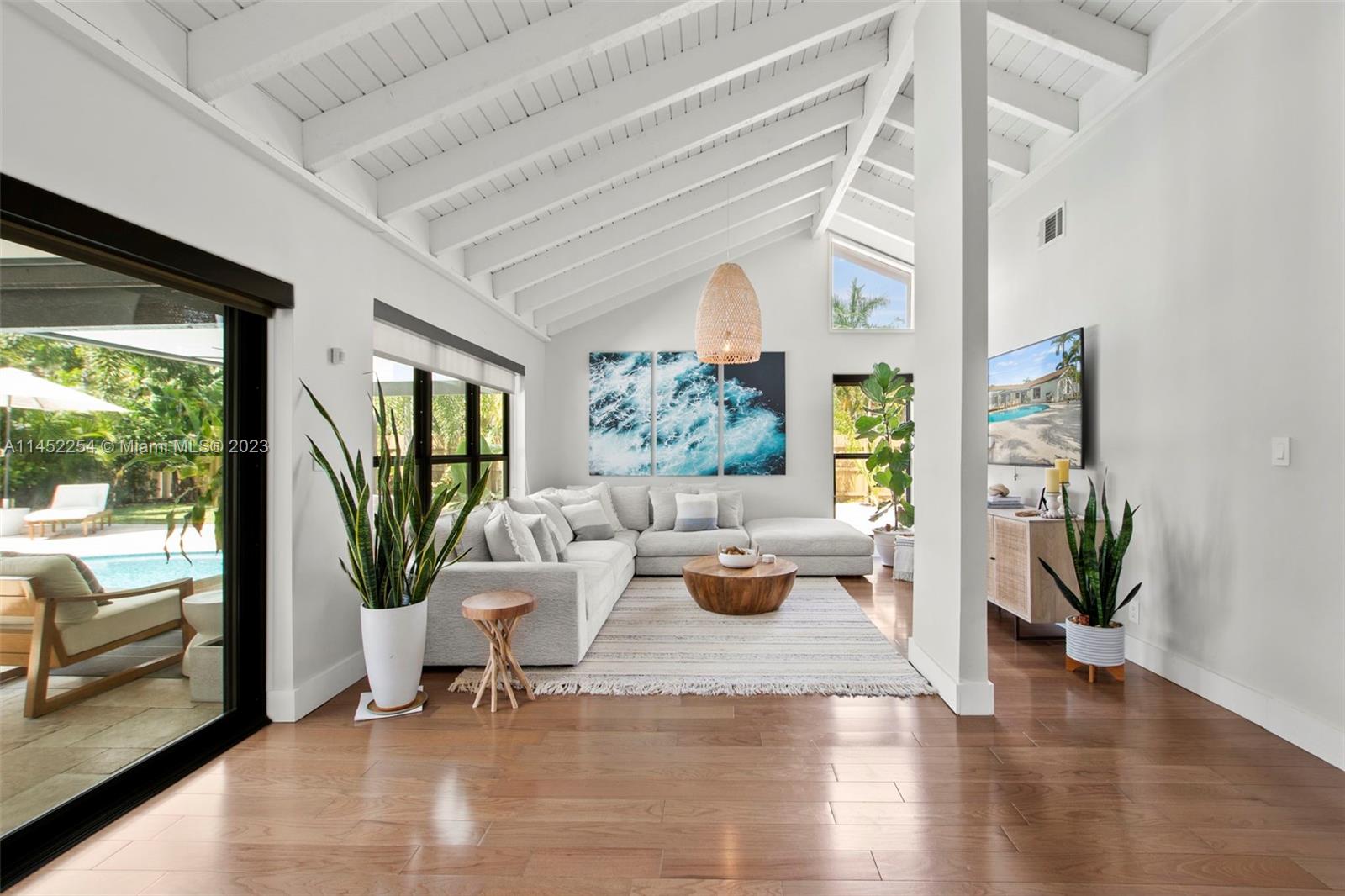 Beautiful & Completely Renovated 3 Bed 2.5 Bath Corner Lot Home In Prestigious Palm Aire. Vaulted Exposed Beam Ceilings Featuring A Large Open Split Floorplan W/ Living, Dining & Family Room. Impact Windows, Doors. All Exterior Walls Recently Smoothed, Refinished & Painted. Upgraded Custom Kitchen Has Quartz Large Waterfall Countertops W/ Storage, Stainless Steel Appliances, Pull Out Pantry & White Shaker Cabinets. Built-In Bar & Additional Cabinets In The Formal Dining. New Ceiling Fans & Lighting Throughout. Primary Suite W/ California Closets, Large Bathroom W/ Dual Sink Vanity & Shower. Fully Fenced In Backyard With Lush Landscaping, Low Voltage Lighting, Travertine Deck And Heated Salt System Pool W/ Color Changing Lights. Private Concrete Pad For RV Or Boat Parking. No HOA!