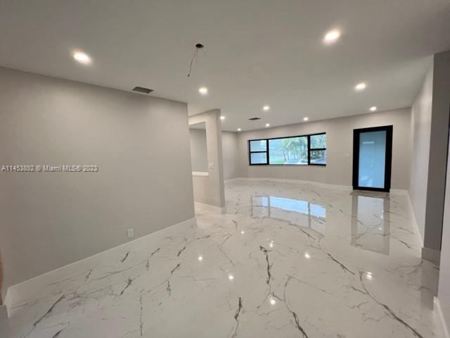 TURN KEY HOME! Modern& Bright.. Immaculate 4 bedroom 2 Bath Fully Renovated Single Family Pool Home! Brand NEW Impact Doors & Windows including Hurricane rated Garage Door. Brand New Marble Flooring throughout home, Kitchen features Brand New Appliances, Quartz countertops, w/ window overlooking the pool. Bathrooms are Fully renovated with LED mirrors. Exterior of home features New Modern lighting and is freshly painted. Backyard and Pool Area is fully fenced. Corner Lot with Circular Driveway, Lots of parking. New HVAC / AC system, 6 year old Roof. THIS HOUSE HAS IT ALL. Bring your pickiest buyer, Won't Last! NO HOA. Showings will start 10/7/23 finishing resort style pool deck.