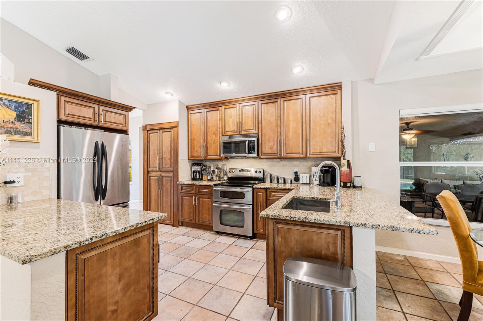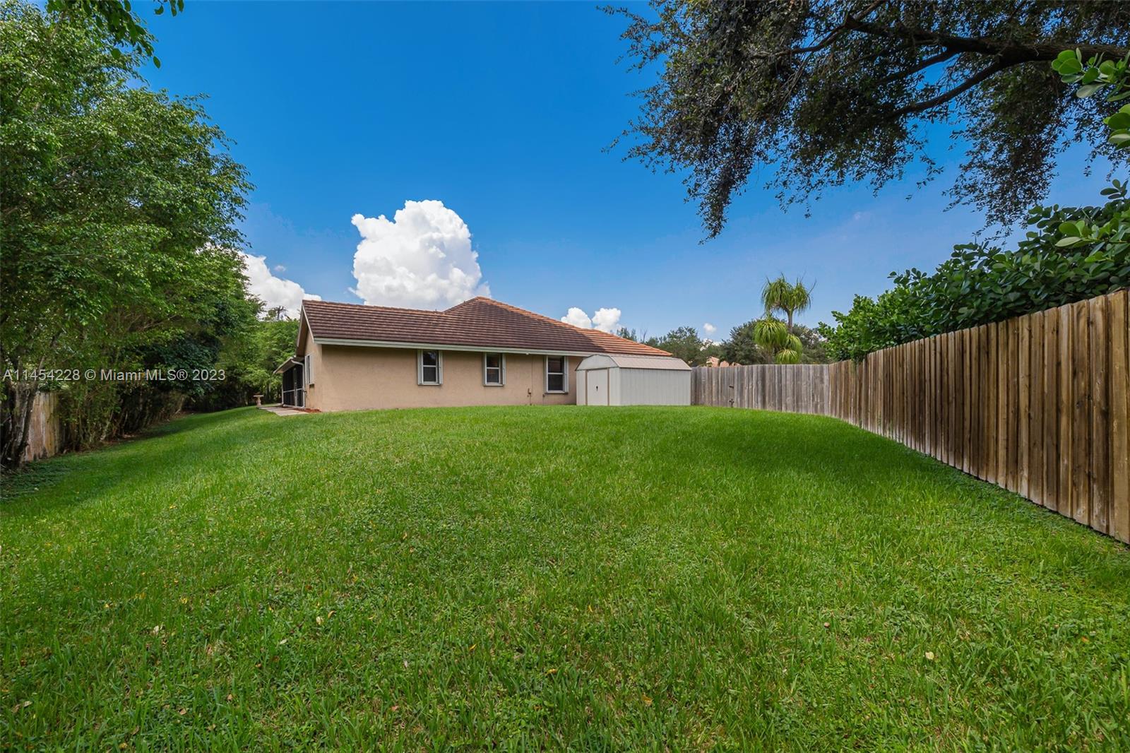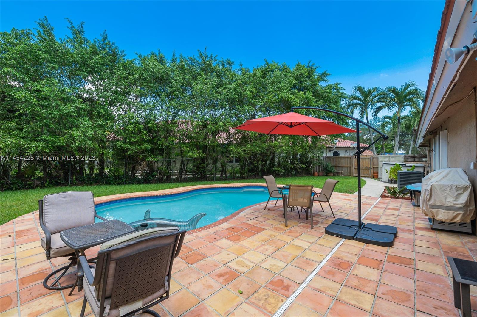 Lovely Pool Home in Davie Country Estates that sits on a builders half acre in the center of the cul-da-sac. Walk in you have a 4 Bedrooms, 2 Bathes, updates Kitchen with wood cabinets, Granite counter tops, family room, breakfast area, office, separate laundry room with sink, 2 car garage. Great covered patio for entertaining which is 50' long. Outside you have your pool and plenty of room for anything else. Roof was replaced 2016. Only 20 homes in the community.