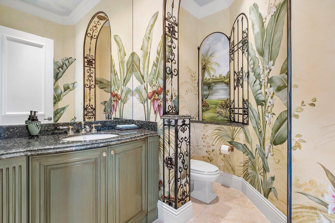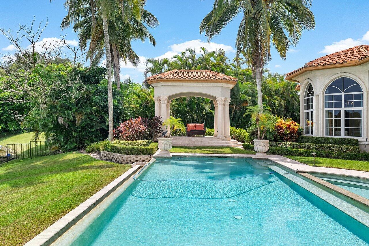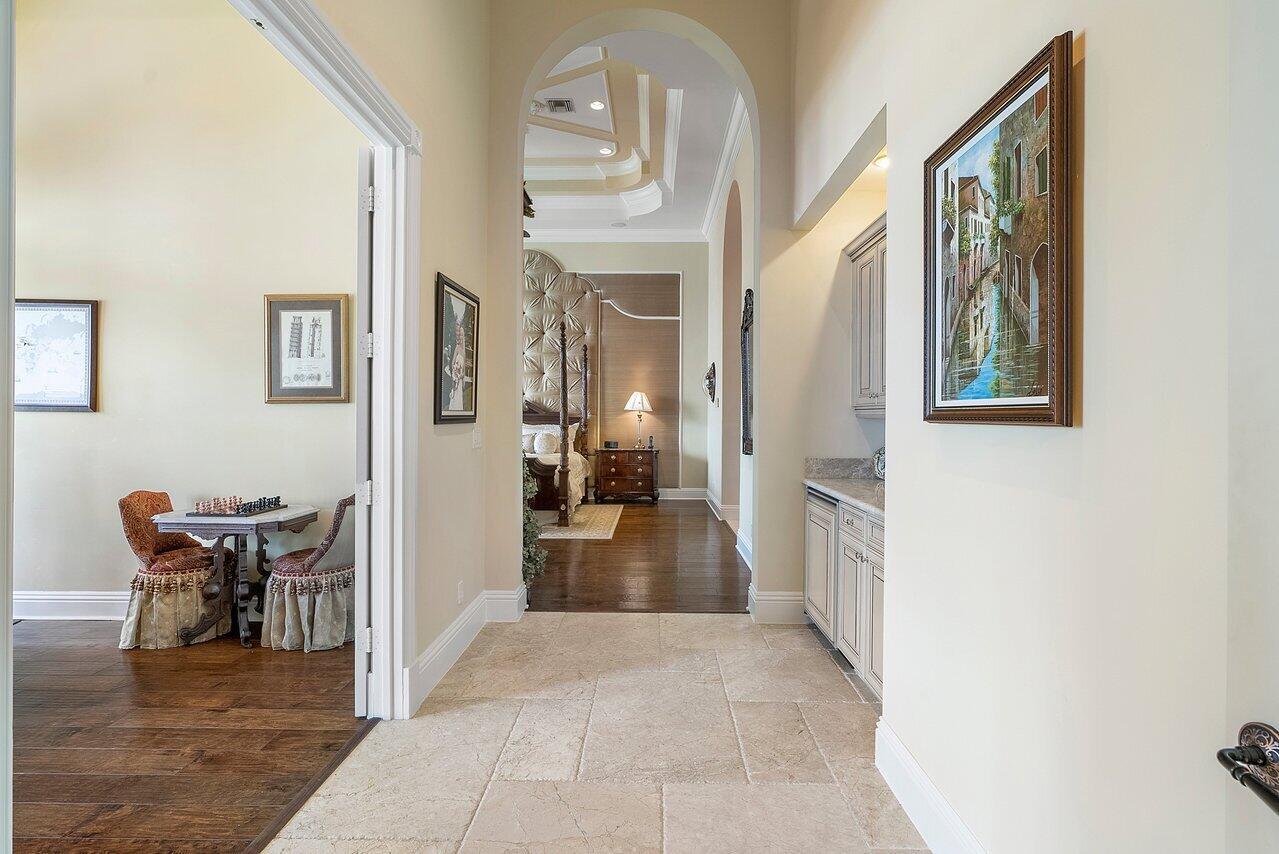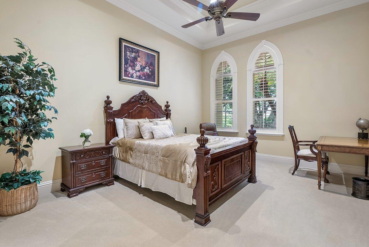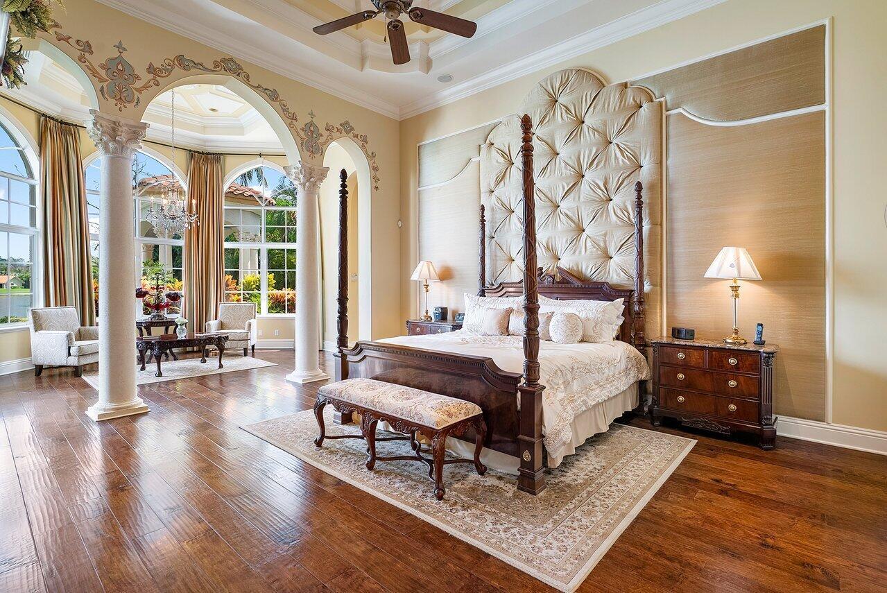Breathtaking banyan trees welcome you to this majestic mediterranean lakefront estate boasting 10,013 square feet of living space and set on over an acre of meticulous and professionally designed landscaping. 8465 Twin Lake Drive is in a league of its own showcasing unparalleled luxury in one of Boca Raton's most coveted and exclusive neighborhoods, Long Lake Estates. Designed for exquisite living and entertaining on a grand scale this custom sprawling property with extraordinary architectural details are evident in arched doorways, barrel and coffered ceilings, stone columns and custom millwork. Featuring 7 oversized ensuite bedrooms including a guest house, staff quarters or in-law suite, 3 half bathrooms, club room with bar, home theatre, office and chef's kitchen this home is