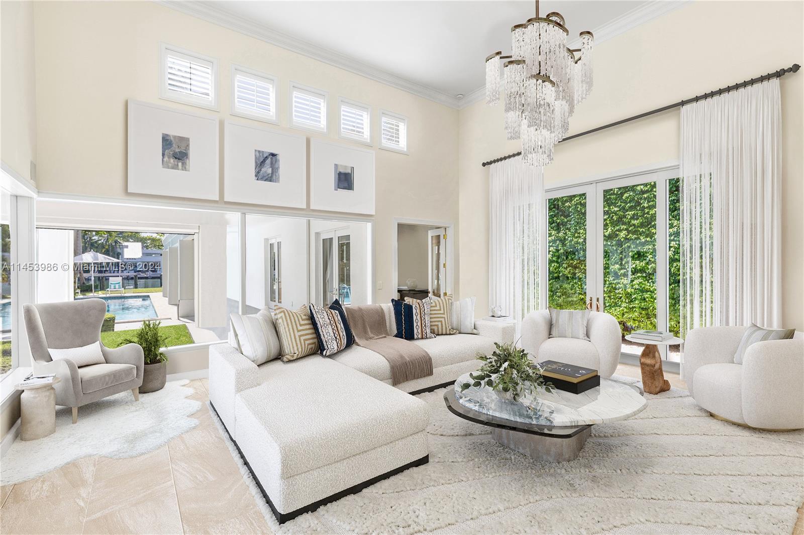 Palm Beach Meets Miami Beach! This beautiful Contemporary waterfront home sits on a lushly manicured, 16,200 SF west facing lot on guard-gated Allison Island! Inside the newly renovated modern & bright interiors you'll find large living spaces w/ dramatic double height ceilings, gourmet kitchen, family room, a 1,000 SF primary suite w/ attached office, massive 1st floor VIP suite & 3 large guest bedrooms w/ newly renovated en-suite baths. The outdoors is a tropical oasis w/ a large covered loggia & outdoor dining w/ retractable screens , resort style pool, & dock w/ boat lift. With 75 feet of WF & easy access to the bay this property is ideal for boaters. The home’s Western exposure will capture colorful sunsets over the water. Property is equipped w/ a 3-car garage & gated motor court.