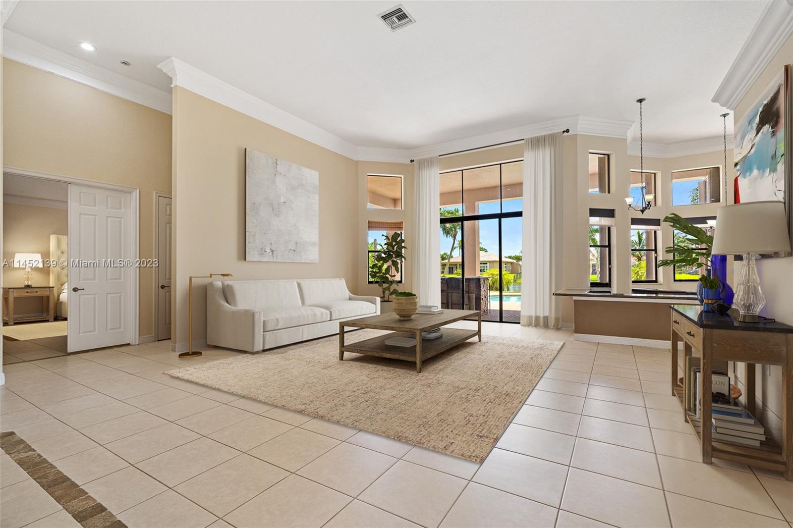 WELCOME TO RIVERSTONE IN DAVIE FLORIDA! THE WATERFRONT RESIDENCE-5 MODEL IS SITUATED ON A BUILDER'S ACRE. THE ONE-STORY MODEL OFFERS A SPLIT FLOOR-PLAN. ENCOMPASSES 4 BEDROOMS, 4 BATHROOMS INCLUDING A CABANA BATH PLUS OFFICE. THE OUTDOOR SPACE FEATURES A POOL, EXTENDED COVERED LANAI WITH A BUILT-IN BAR & GRILL . THE HOME HAS ACCORDION SHUTTERS THROUGHOT FOR HURRICAINE PROTECTION. 24-HOUR GUARD GATED COMMUNITY WITH TENNIS COURT, BASKETBALL COURT, PARK, ZONED FOR A+ RATED SCHOOLS, JUST MINUTES FROM THE AIRPORT & MAJOR HIGHWAYS. HOME IS WELL KEPT BUT TRADITIONAL. PRICE IS FIRM.
