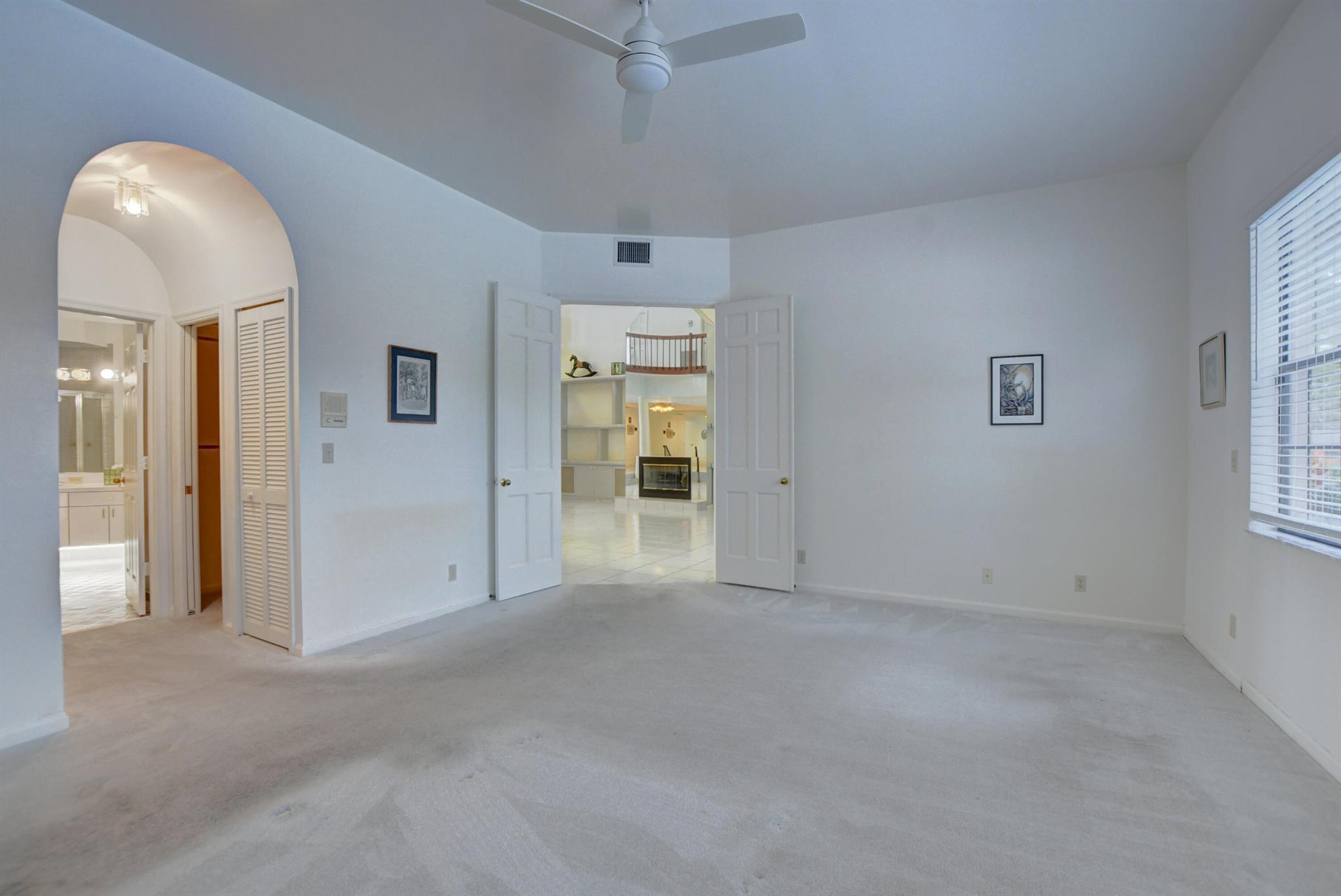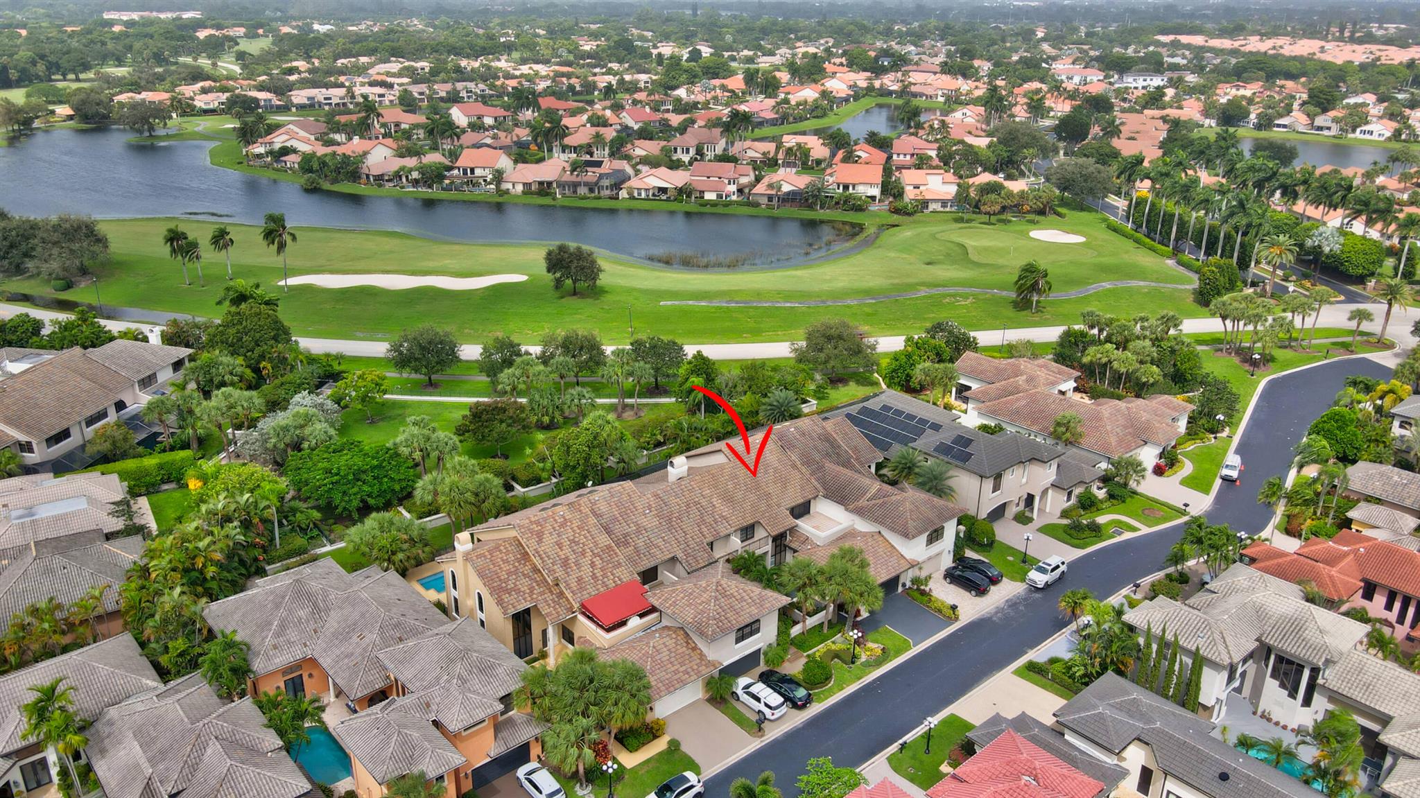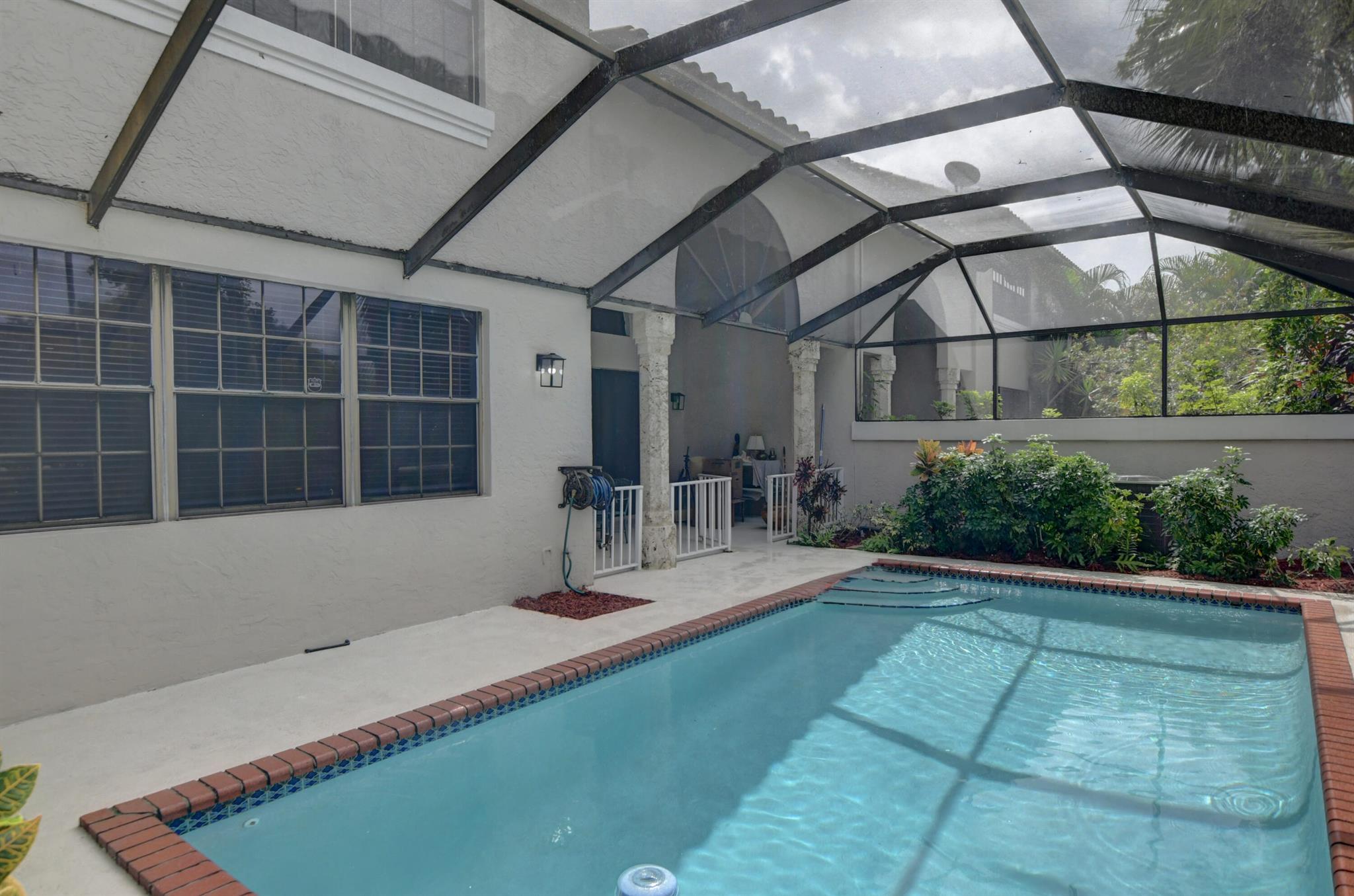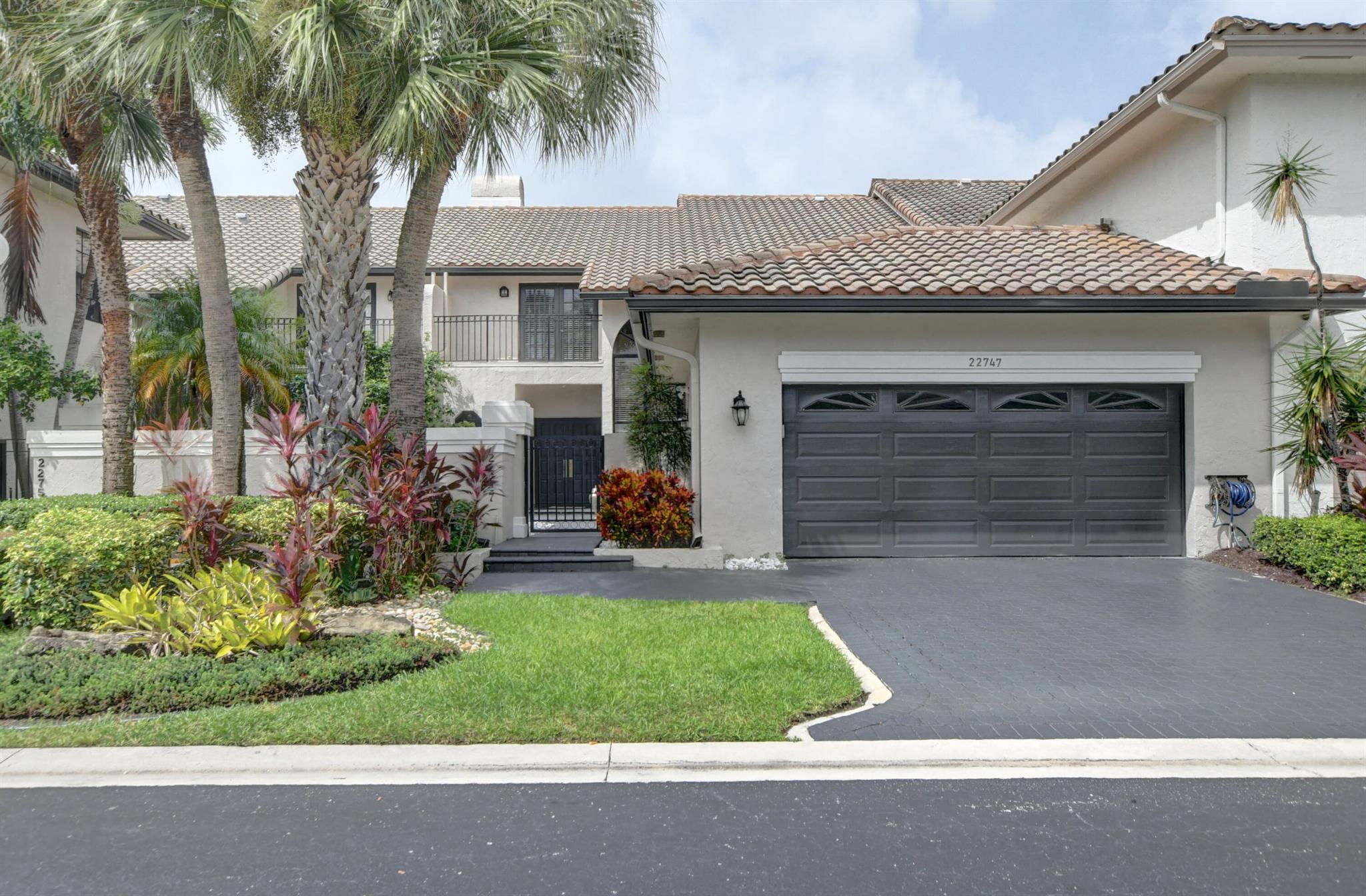 Rarely available townhouse in El Dorado at Boca Pointe. Step into this lovingly maintained home and immediately be wowed by the expansive 2 story living room. Screened in pool and patio area with garden views and shared green common space in the back. Floor plan features 2 car garage, spacious kitchen, downstairs master and 2 bedrooms upstairs with shared bath plus loft with large built in. Living room has built in wall unit and fireplace. Large outdoor private deck off upstairs bedroom. Extra storage closet upstairs. Other features include: brand new upstairs A/C, 2018 downstairs A/C, roof 2007, exterior house repainted 2021, garage door motor and keypad 2020, new skylights installed upstairs bathroom 2021, new garden lights, front door lights and surveillance camera.