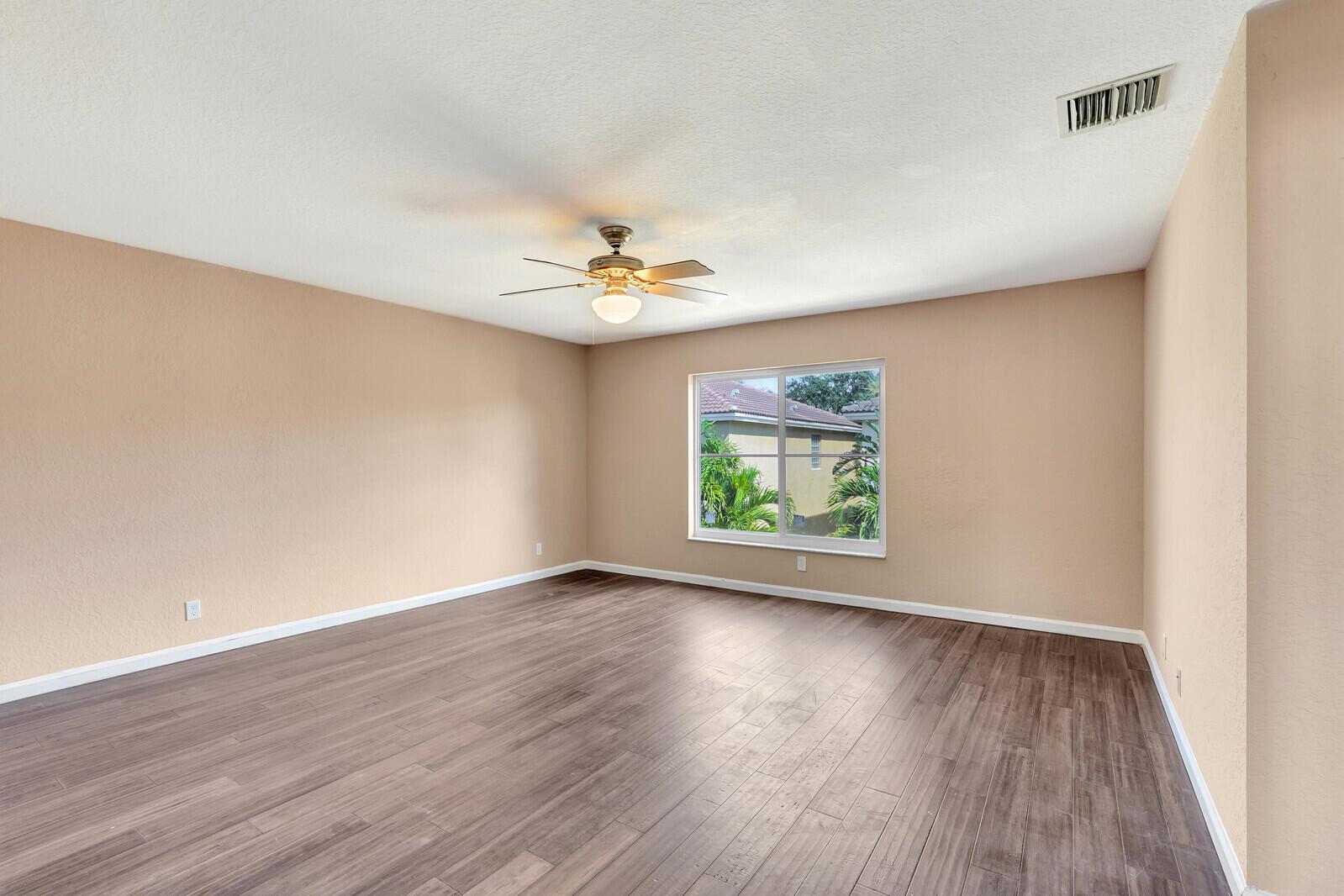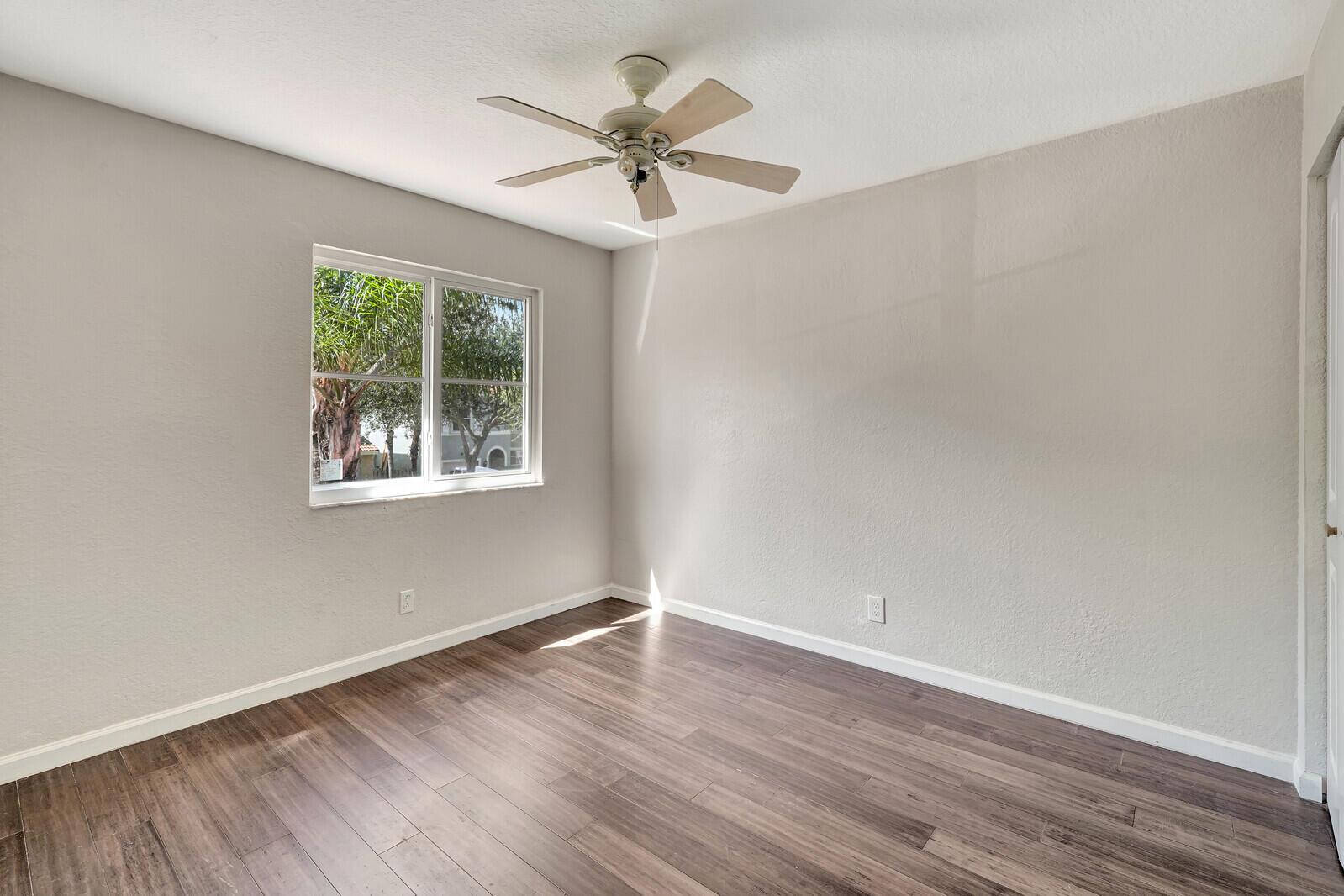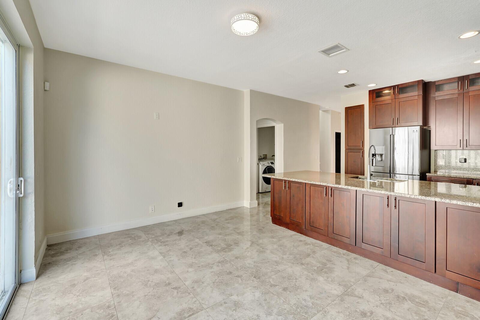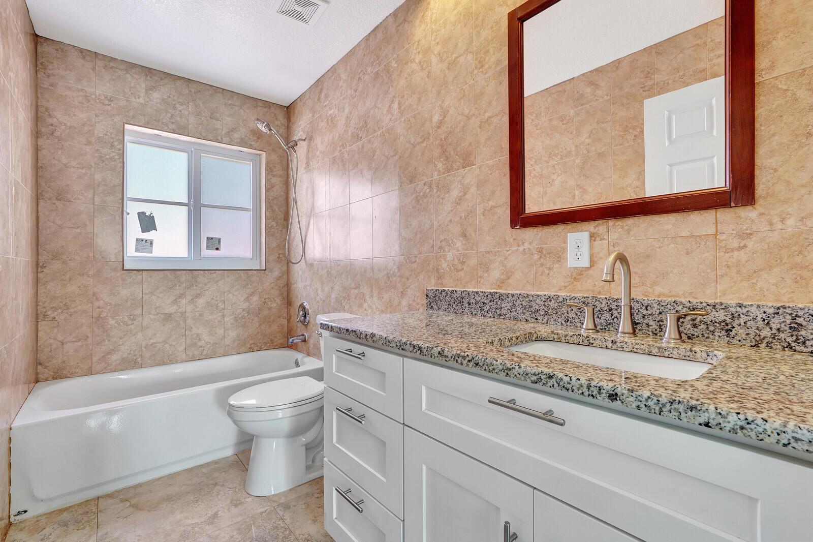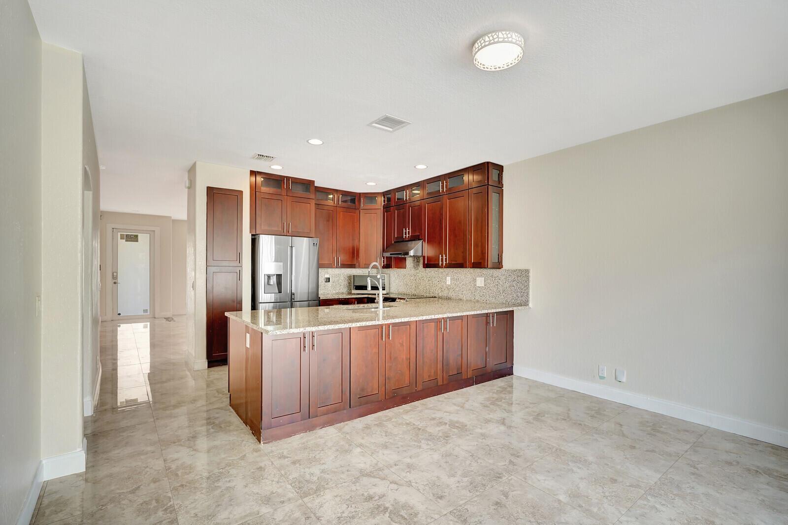A Hidden Gen in WPB, Situated on a quiet convenient sought after manned-gated community '' Lakes of Laguna'', this 4 bedroom+ 3 bath home is a MUST SEE. Tastefully remodeled with over $60k, the entire first floor is lined with oversized marble flooring that flows seamlessly into a kitchen with granite countertop. Offering endless storage, modern cabinetry, new stainless steel appliances. One bedroom and one full bath is conveniently located on the first floor. The wood stairs leads to spacious master bedroom and two separated small bedrooms. Newer A/C. Newer hurricane impacted windows & doors. All bathrooms are also newly remodeled. Low HOA, community amenities includes pool, tennis courts, basketball courts etc. Close to the FITTEAM ballpark, Gardens Mall, Downtown WPB and the airport.