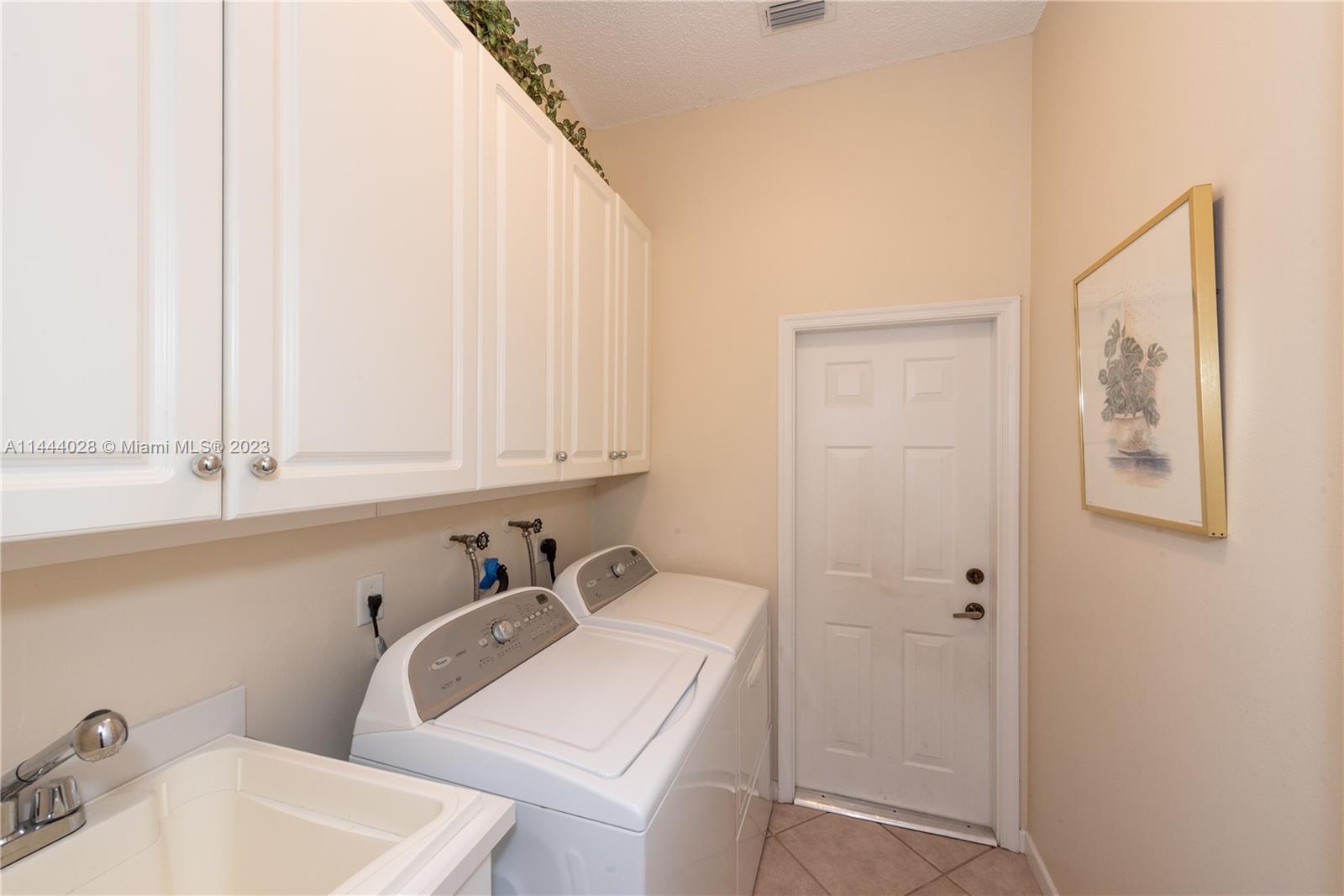 Savanna is one of Weston's highly desirable gated communities. This impeccable home is move-in ready, with a superb layout for entertaining. The living, kitchen, and family rooms are all integrated with bright, ample areas facing the beautifully landscaped backyard, which you can access through two different sliding doors. The backyard features a large overhang paved area with fan. The house has a split floor plan with 2 AC's, lots of light and a 4th bedroom that has been converted into an office. The kitchen has solid wood cabinets, granite counter tops, and stainless steel appliances. The laundry room is under AC with a utility sink. Accordion shutters. A+ Schools, some of the best in Broward County.No Association Approval required.