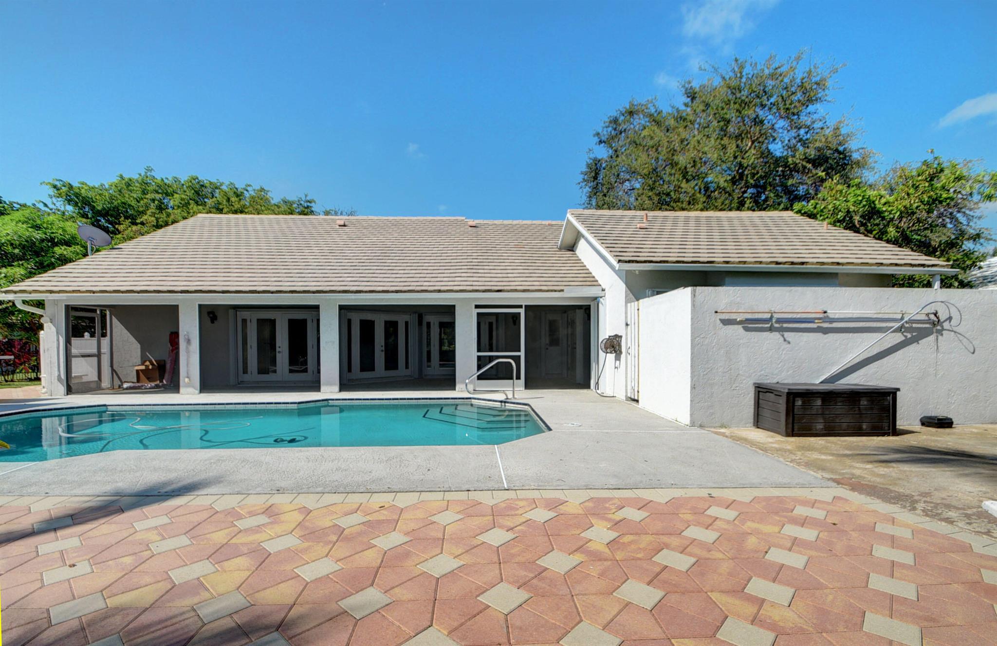 Unique home on lovely Embassy Drive, a quiet hidden enclave in the heart of West Palm Beach. The freshly painted interior boasts two large master suites, office/den or 3rd bedroom and a fully converted garage perfect for a home fitness room or a 4th bedroom. A 22KW generator was installed to keep you going in event of power failure. Walk out the back door where the sparkling blue salt water pool (with a new heater) invites you to jump in and look out at the water through a beautiful shaded landscape. The oversized 9x9 spa nestles under a pergola with more shade trees and another view of the lake. In the evening you can grill your favorites at the summer kitchen equipped with refrigerator and granite counter roomy enough to pull up high top chairs.Relax and enjoy the evening breeze.