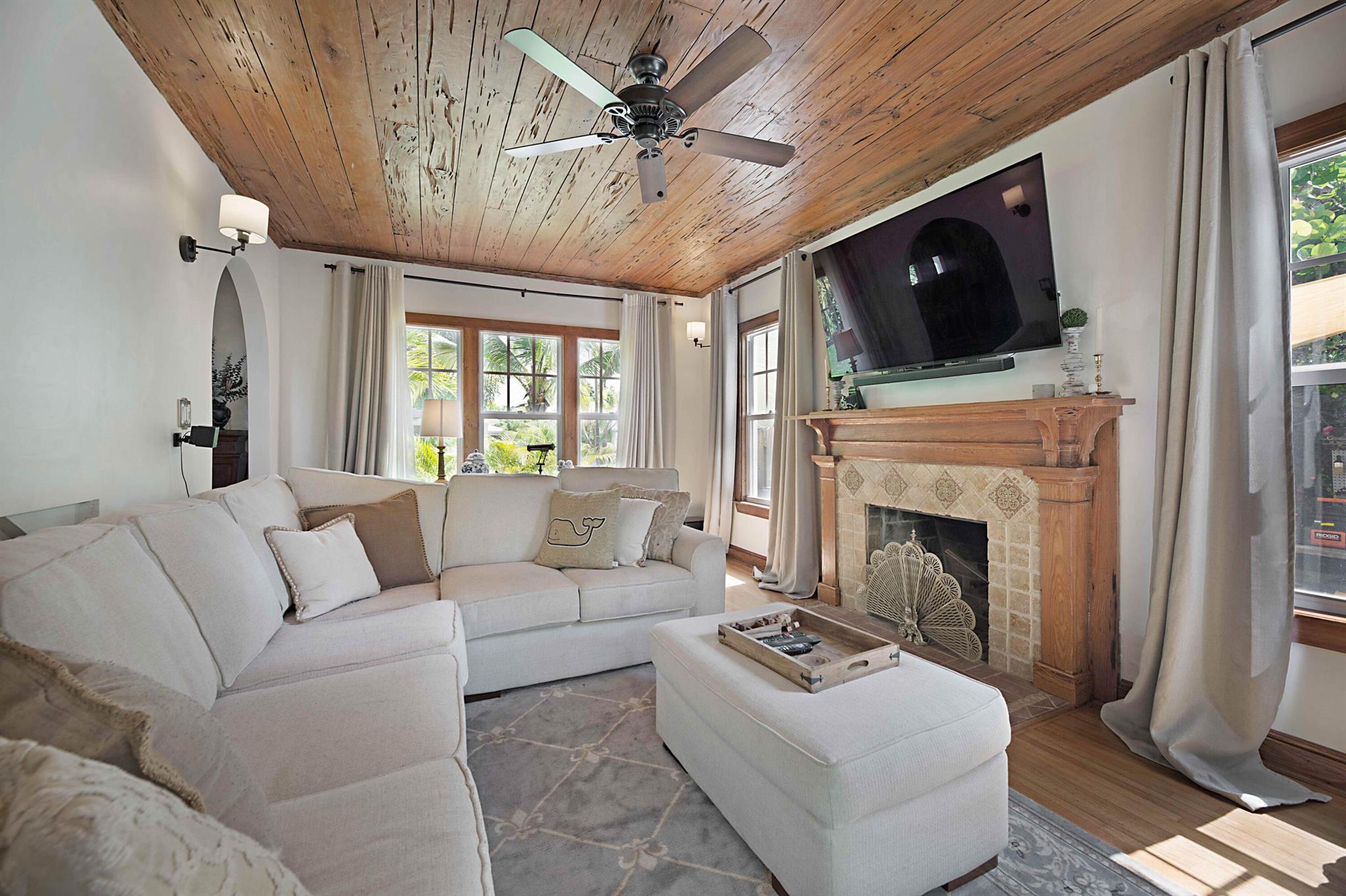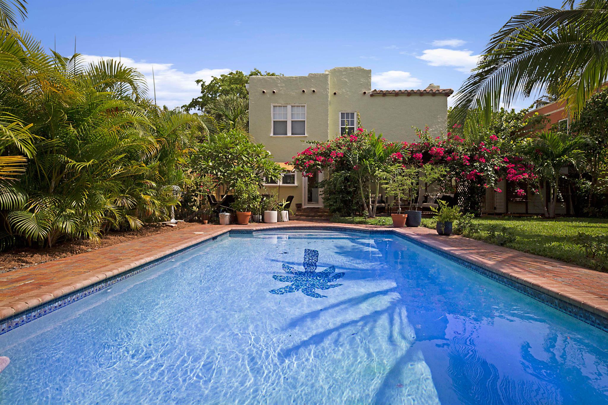 This beautiful three bedroom, two bath Mission Revival home is located in WPB'S much-coveted Old Historic Northwood neighborhood. Residing on a tree-lined block, the lovely two story 1926 Spanish home has modern upgrades while maintaining the charm and elegance of the era. The home was recently renovated, including a redesigned bright and open kitchen/dining area, new cabinets, appliances, and countertops. New AC, all new impact windows and doors, restored original fireplace, recent roofing, landscaping and paint. French doors from both the living room and kitchen lead to an expansive outdoor covered dining and entertaining area. The tropical landscaped yard serves as the backdrop for a large in-ground pool with southern exposure.